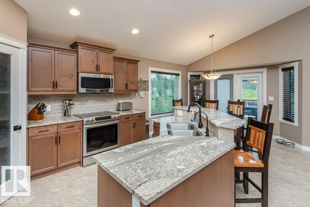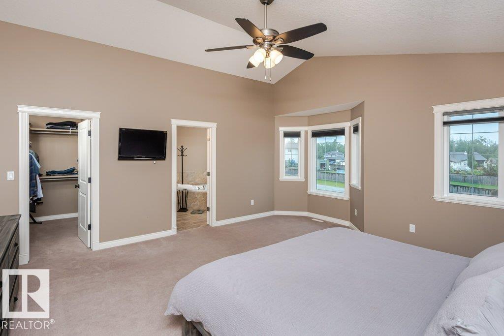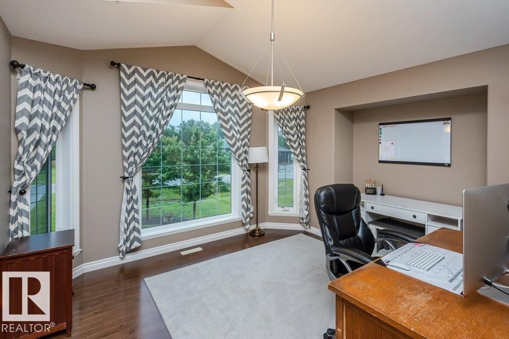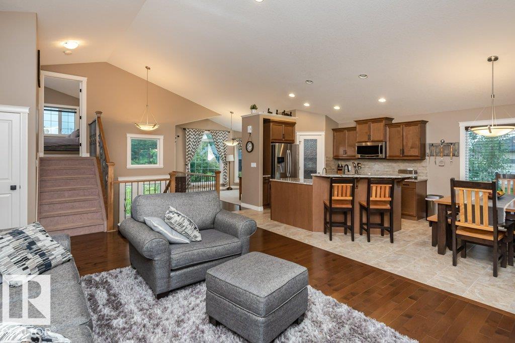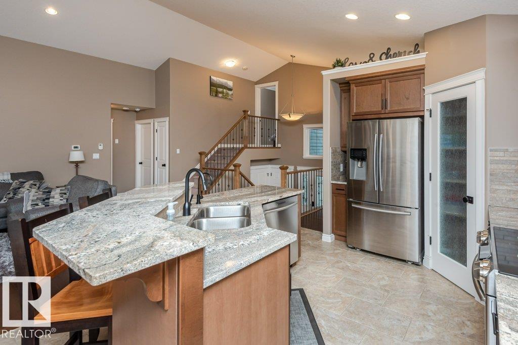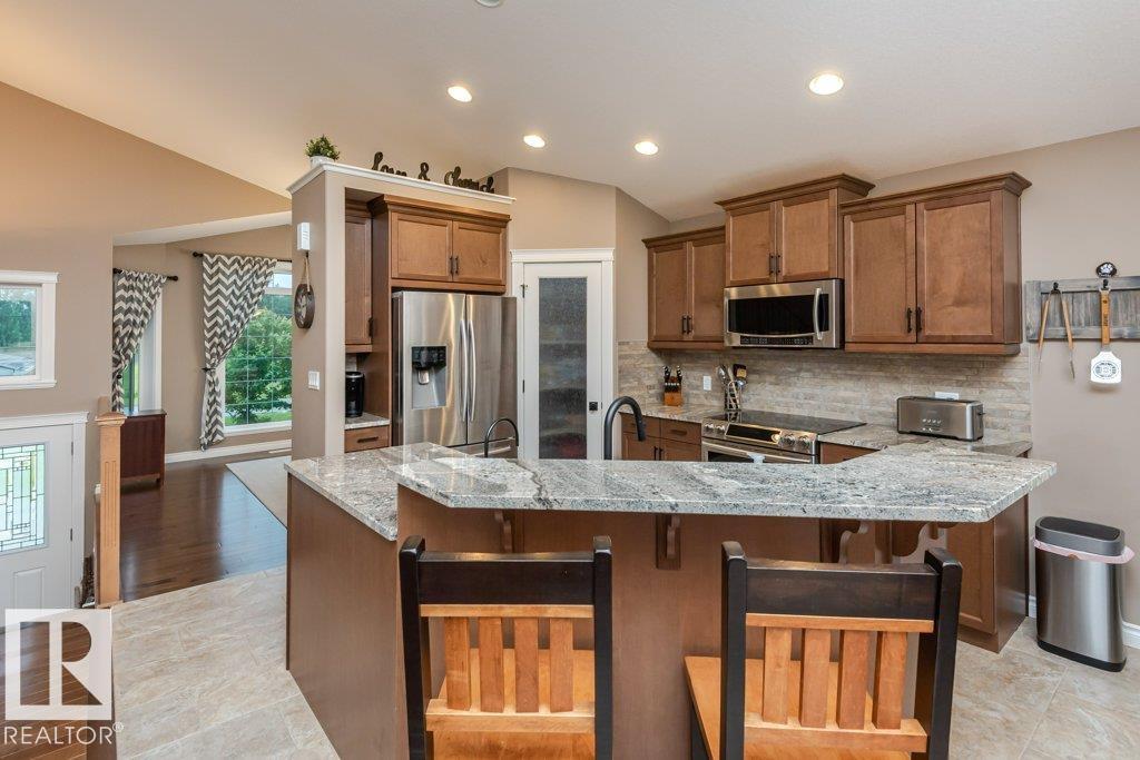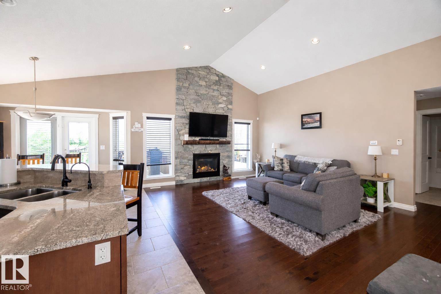 Beautiful bi-level home with a triple-car garage, perfectly situated on a spacious 0.63-acre lot in desirable Landing Trails—backing onto open space with no rear neighbors. Step inside to stunning vaulted ceilings and a bright, open-concept layout. The kitchen features granite countertops and seamlessly connects to the dining and living areas, complete with a cozy gas fireplace. Patio doors lead to a private deck overlooking the fully landscaped backyard—perfect for relaxing or entertaining. The main floor offers two bedrooms, a versatile office/den, and a 4-pc bathroom. Just a few steps up, you’ll find the spacious primary suite with a walk-in closet and a luxurious ensuite featuring a corner jetted tub and separate corner shower.The fully finished basement includes a large rec room, an additional bedroom, a 3-piece bathroom, and a well-equipped laundry room with extra counter space and cabinetry. Additional highlights include RV parking and a heated triple attached garage, with a drive-through third bay (id:63190)
