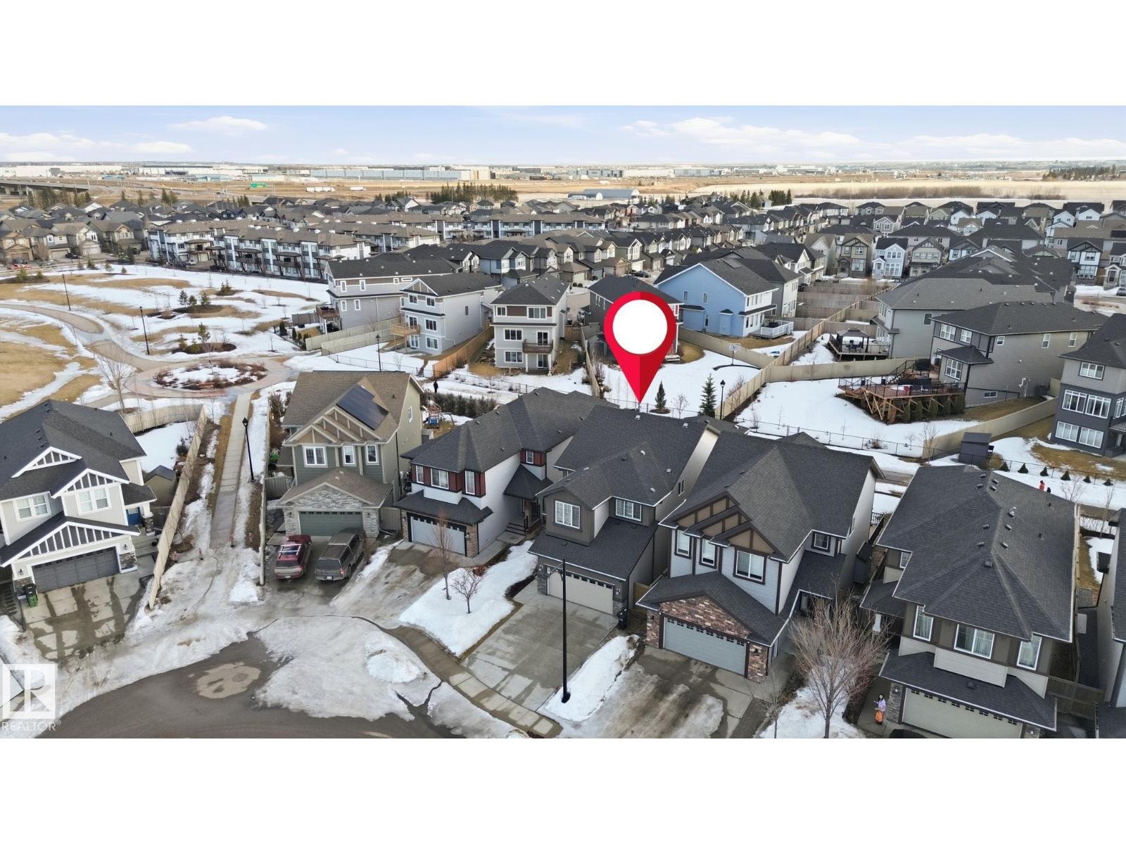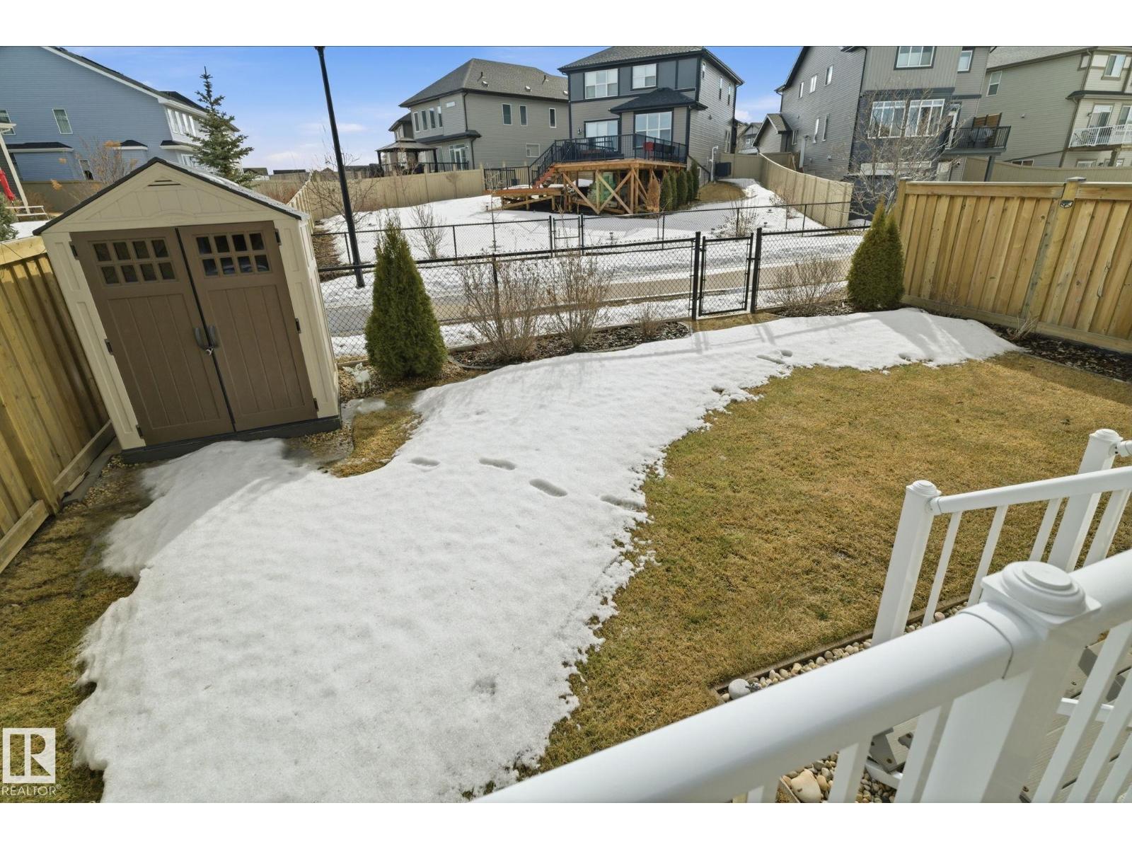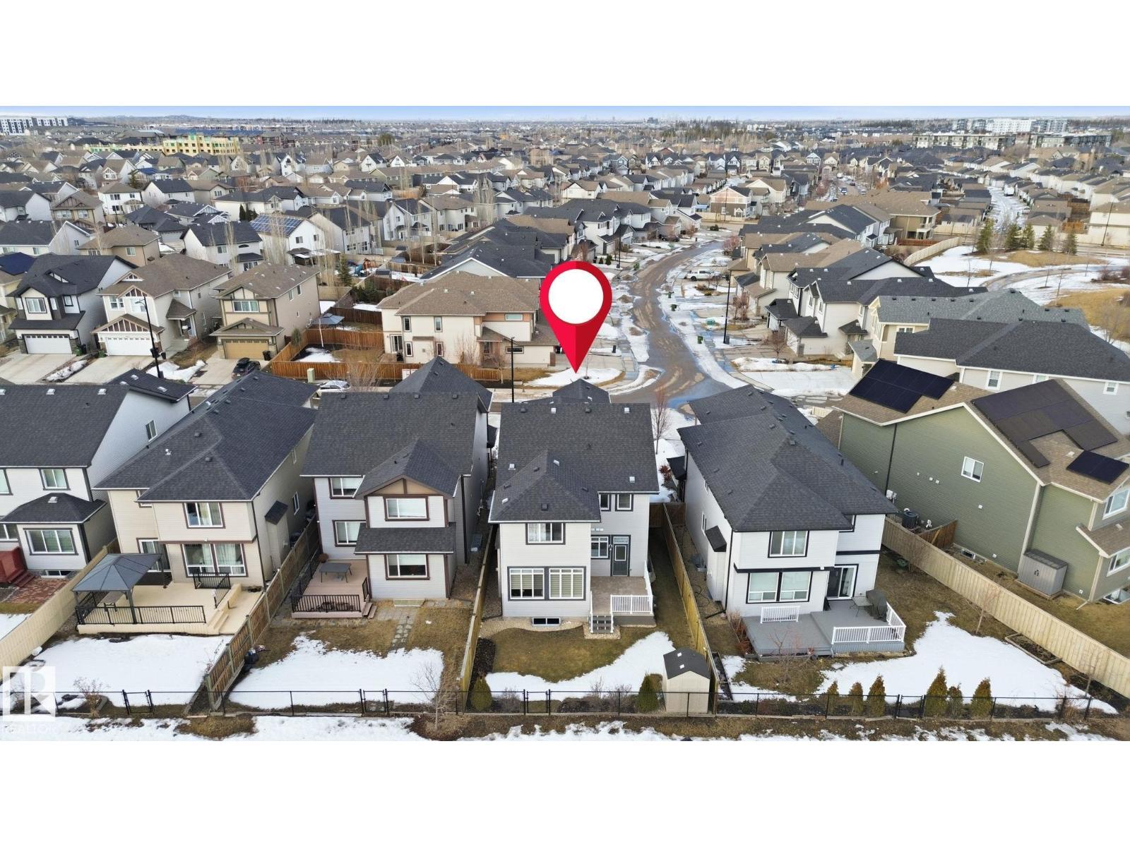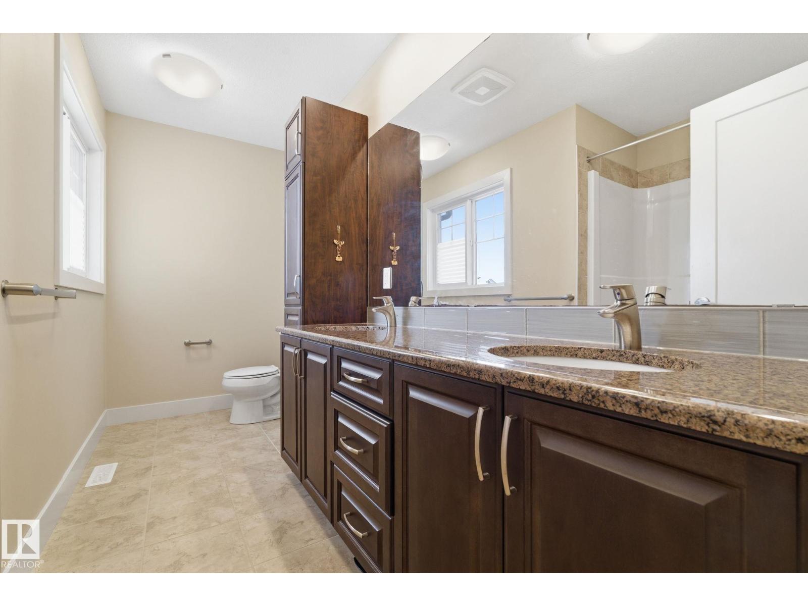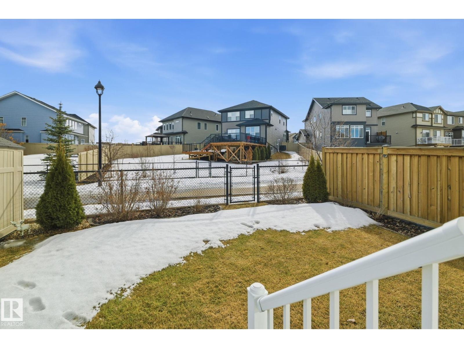 Welcome to this beautiful 2-storey home in Allard offering 2,389 sq ft of well-designed living space. The main floor features an open layout with a spacious kitchen complete with a large island, walk-in pantry, upgraded cabinetry, and granite countertops throughout. The living room includes a modern gas fireplace with a stylish stone surround, along with custom privacy blinds. A main floor bedroom and convenient half bath add flexibility. Upstairs offers a bonus room, two additional bedrooms, and a primary retreat with large windows and a spa-inspired ensuite featuring a corner soaker tub, glass shower, dual sinks, and a walk-in closet. Upper-level laundry with sink adds convenience. The south-facing backyard backs onto a walking path leading to a park & pond, and includes a deck, shed, and full landscaping. Additional highlights include a fully finished garage with epoxy flooring, gate in the backyard to the walking path, with easy access to Anthony Henday, airport, schools, shopping & amenities. (id:63190)