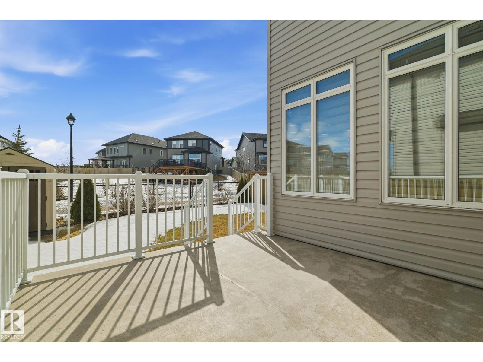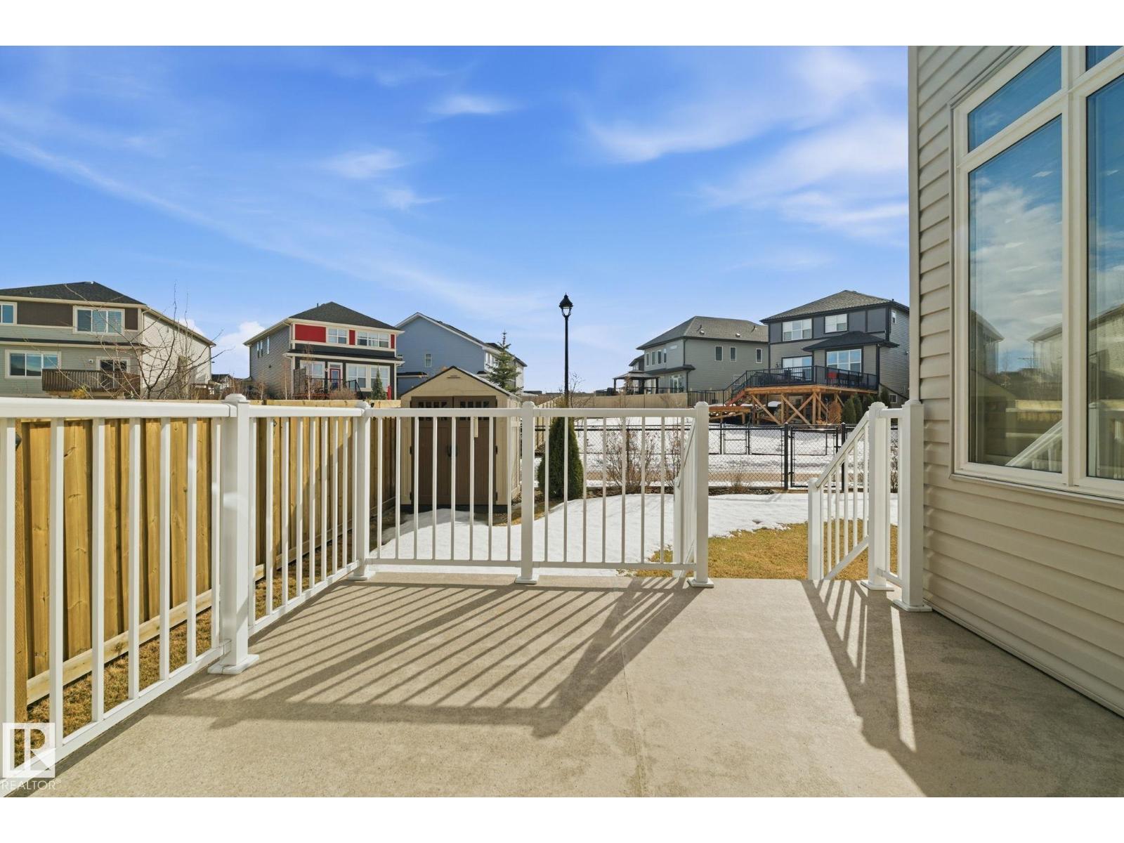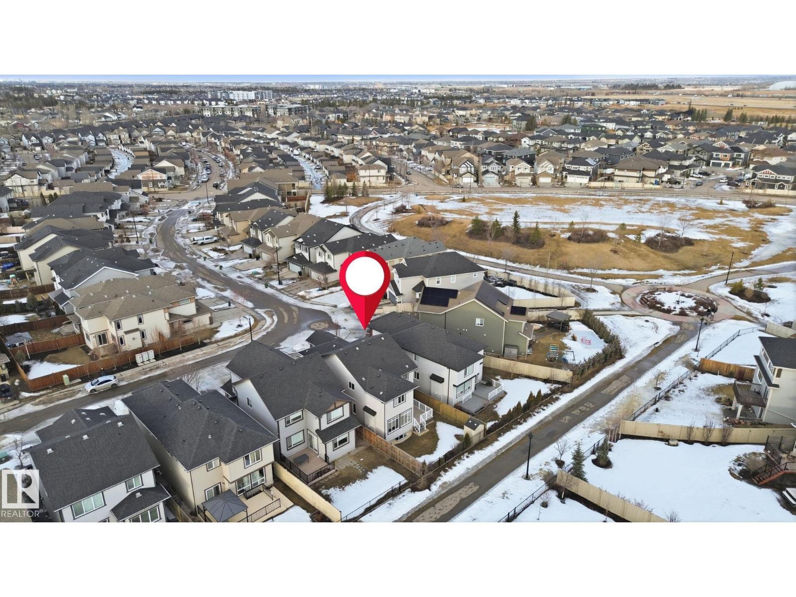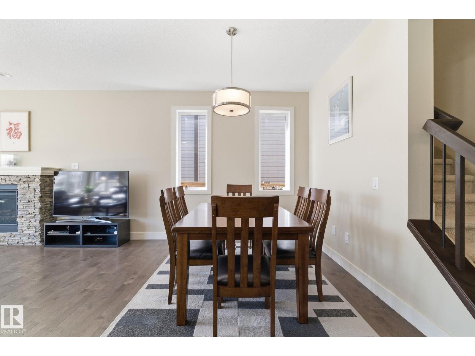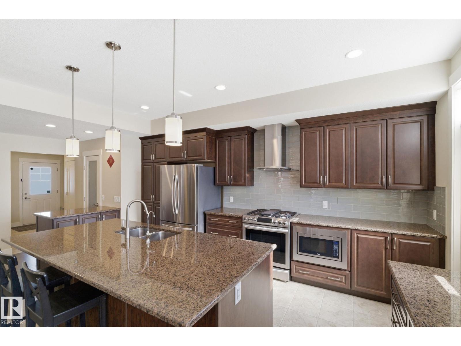Welcome to this beautiful 2-storey home in Allard offering 2,389 sq ft of well-designed living space. The main floor features an open layout with a spacious kitchen complete with a large island, walk-in pantry, upgraded cabinetry, and granite countertops throughout. The living room includes a modern gas fireplace with a stylish stone surround, along with custom privacy blinds. A main floor bedroom and convenient half bath add flexibility. Upstairs offers a bonus room, two additional bedrooms, and a primary retreat with large windows and a spa-inspired ensuite featuring a corner soaker tub, glass shower, dual sinks, and a walk-in closet. Upper-level laundry with sink adds convenience. The south-facing backyard backs onto a walking path leading to a park & pond, and includes a deck, shed, and full landscaping. Additional highlights include a fully finished garage with epoxy flooring, gate in the backyard to the walking path, with easy access to Anthony Henday, airport, schools, shopping & amenities. (id:63190)