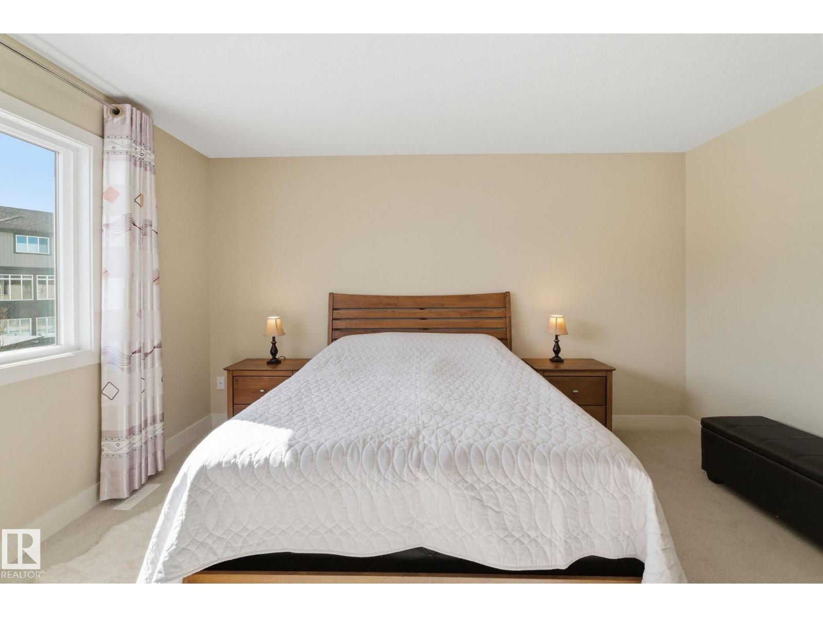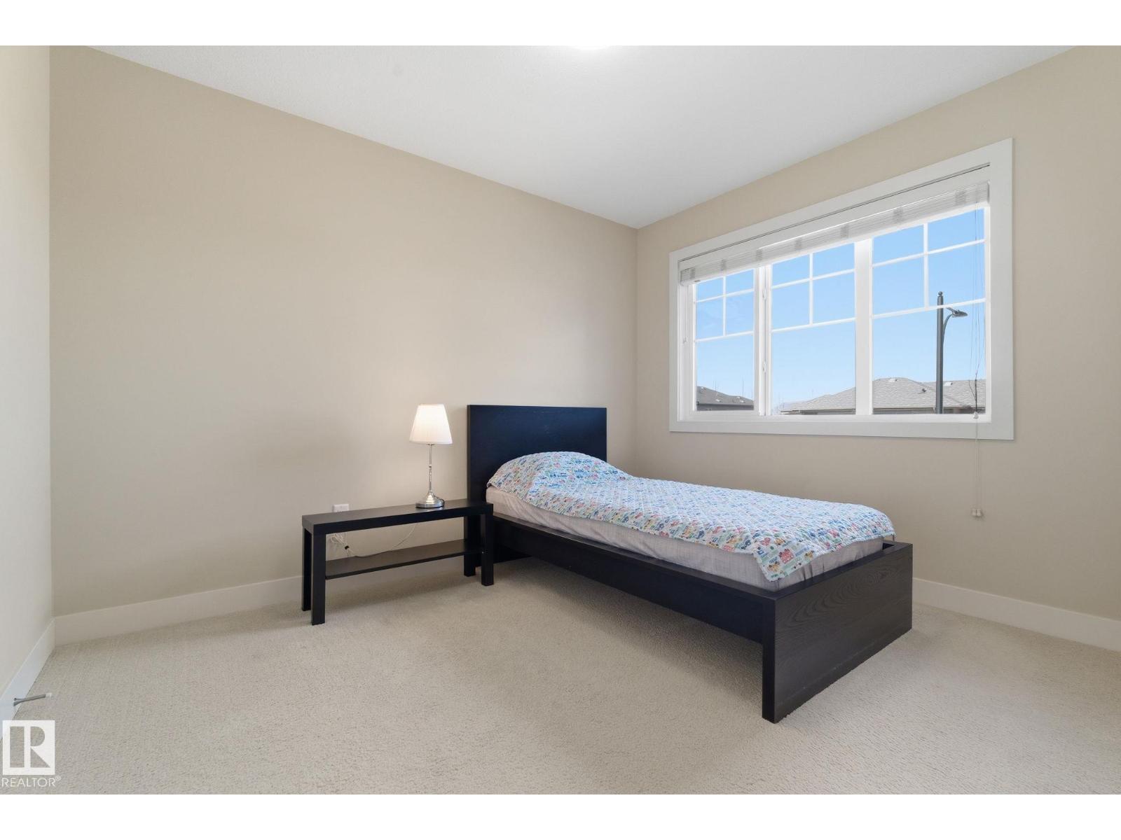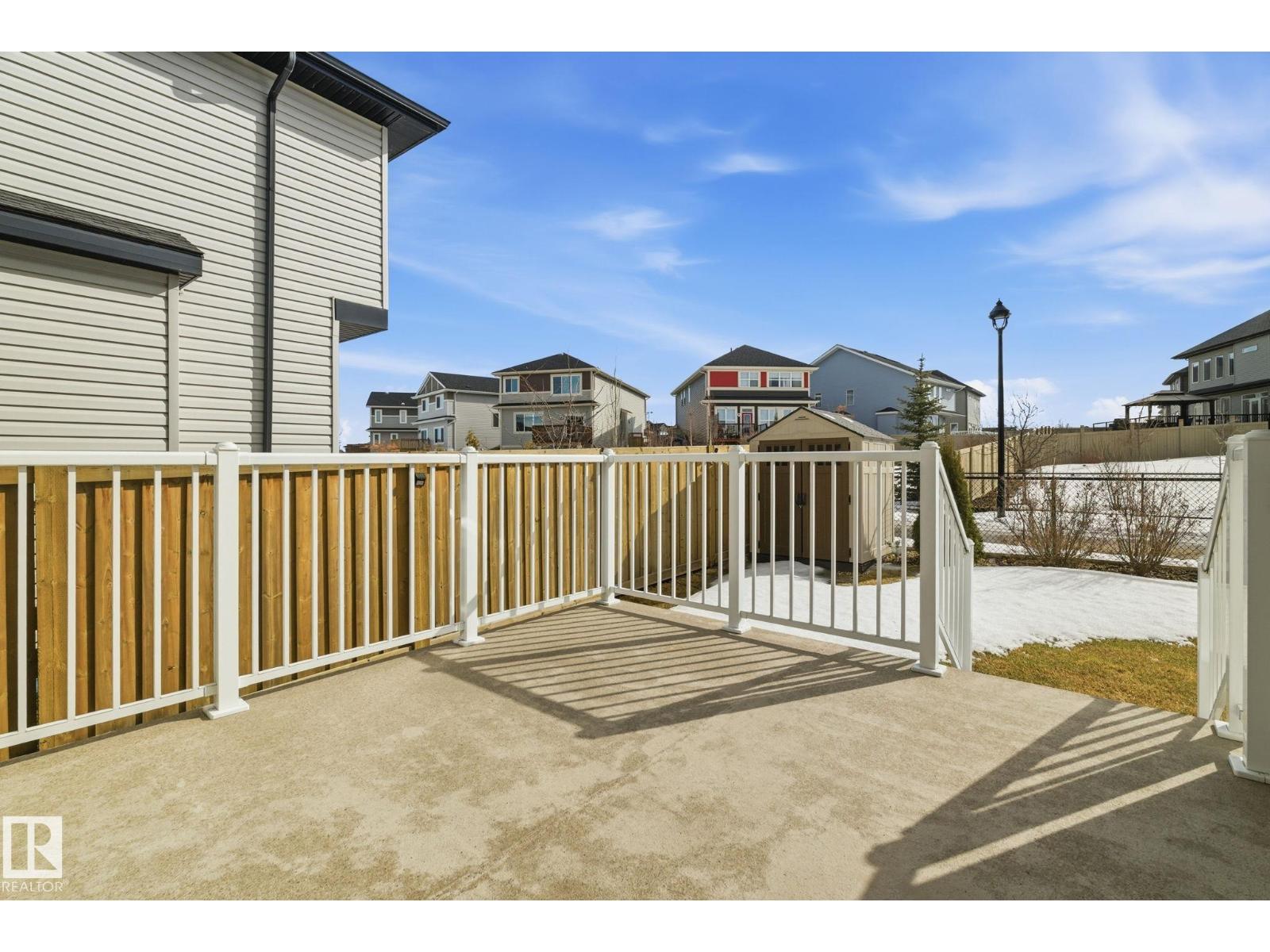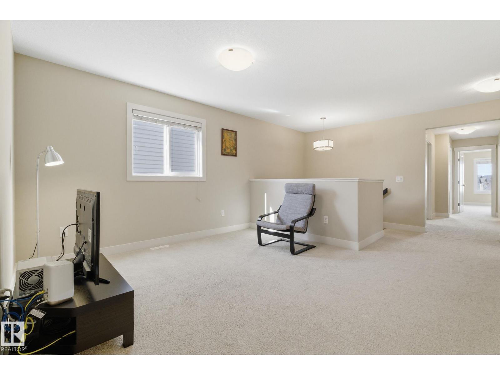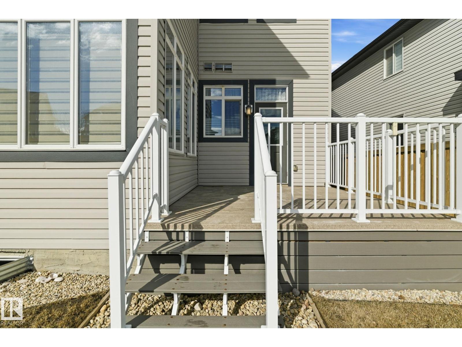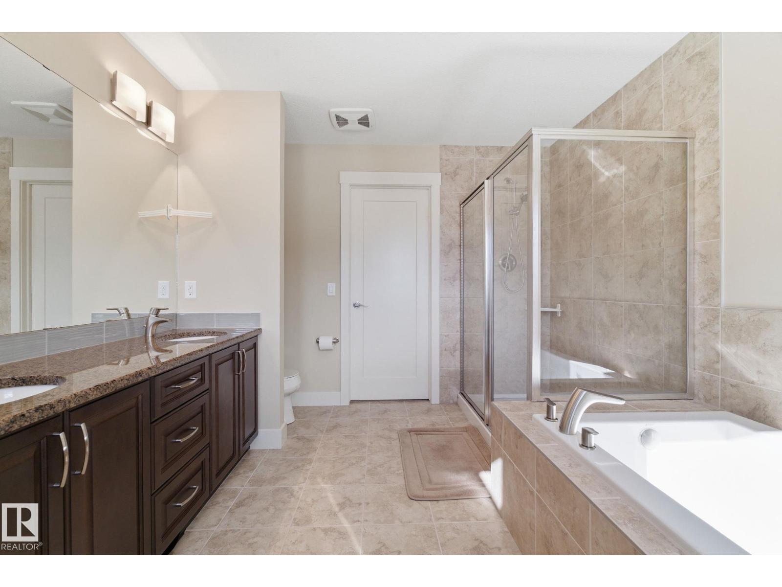 Welcome to this beautiful 2-storey home in Allard offering 2,389 sq ft of well-designed living space. The main floor features an open layout with a spacious kitchen complete with a large island, walk-in pantry, upgraded cabinetry, and granite countertops throughout. The living room includes a modern gas fireplace with a stylish stone surround, along with custom privacy blinds. A main floor bedroom and convenient half bath add flexibility. Upstairs offers a bonus room, two additional bedrooms, and a primary retreat with large windows and a spa-inspired ensuite featuring a corner soaker tub, glass shower, dual sinks, and a walk-in closet. Upper-level laundry with sink adds convenience. The south-facing backyard backs onto a walking path leading to a park & pond, and includes a deck, shed, and full landscaping. Additional highlights include a fully finished garage with epoxy flooring, gate in the backyard to the walking path, with easy access to Anthony Henday, airport, schools, shopping & amenities. (id:63190)