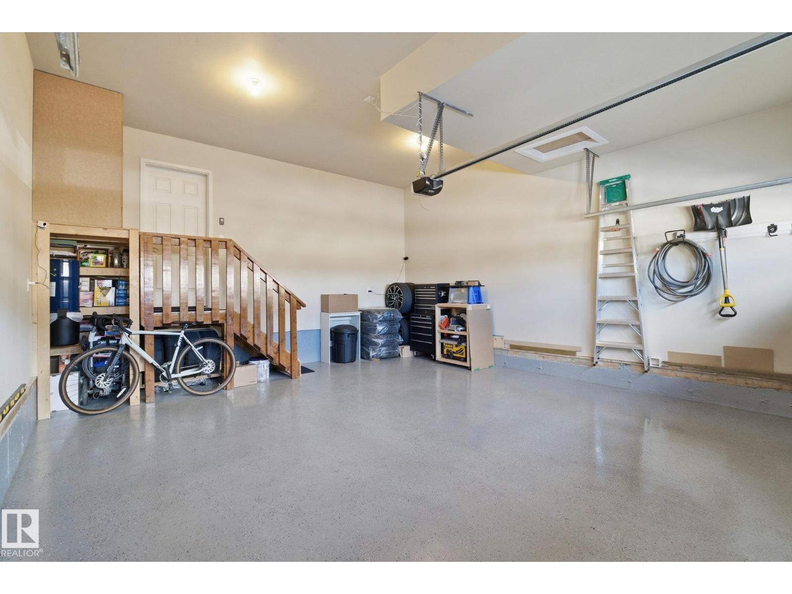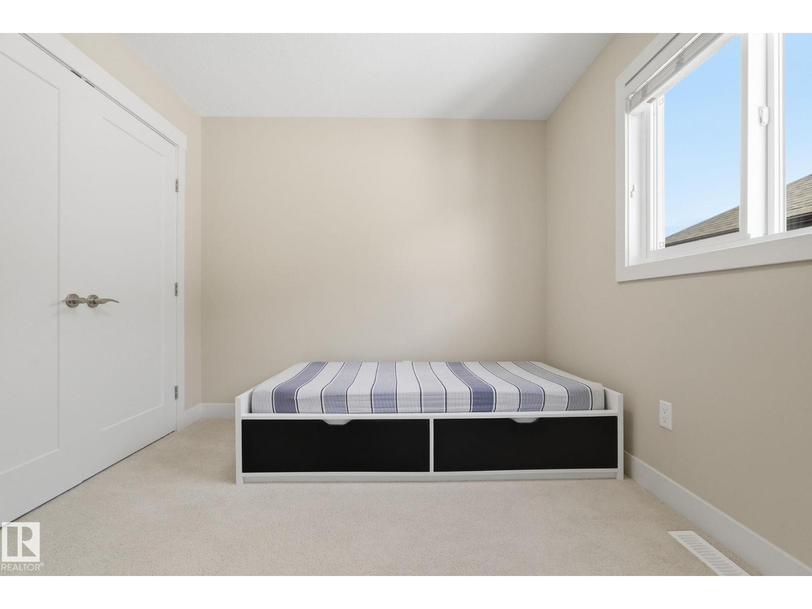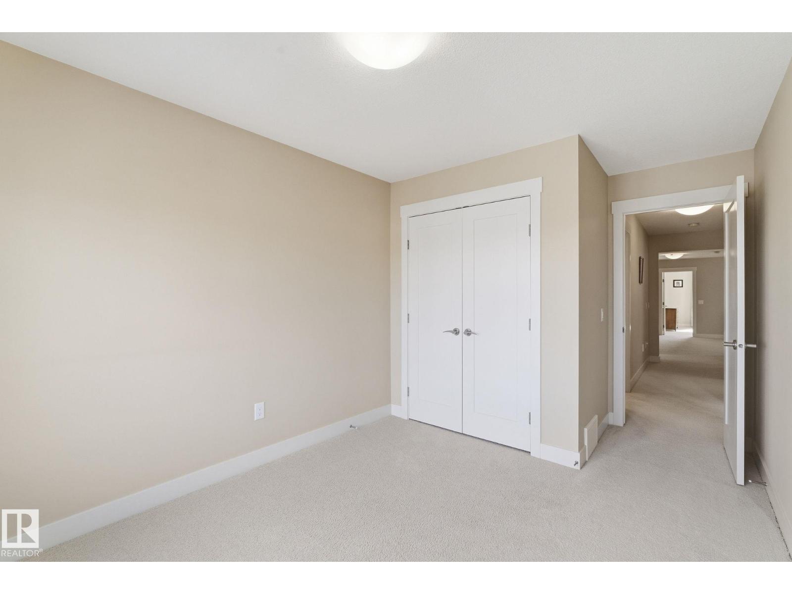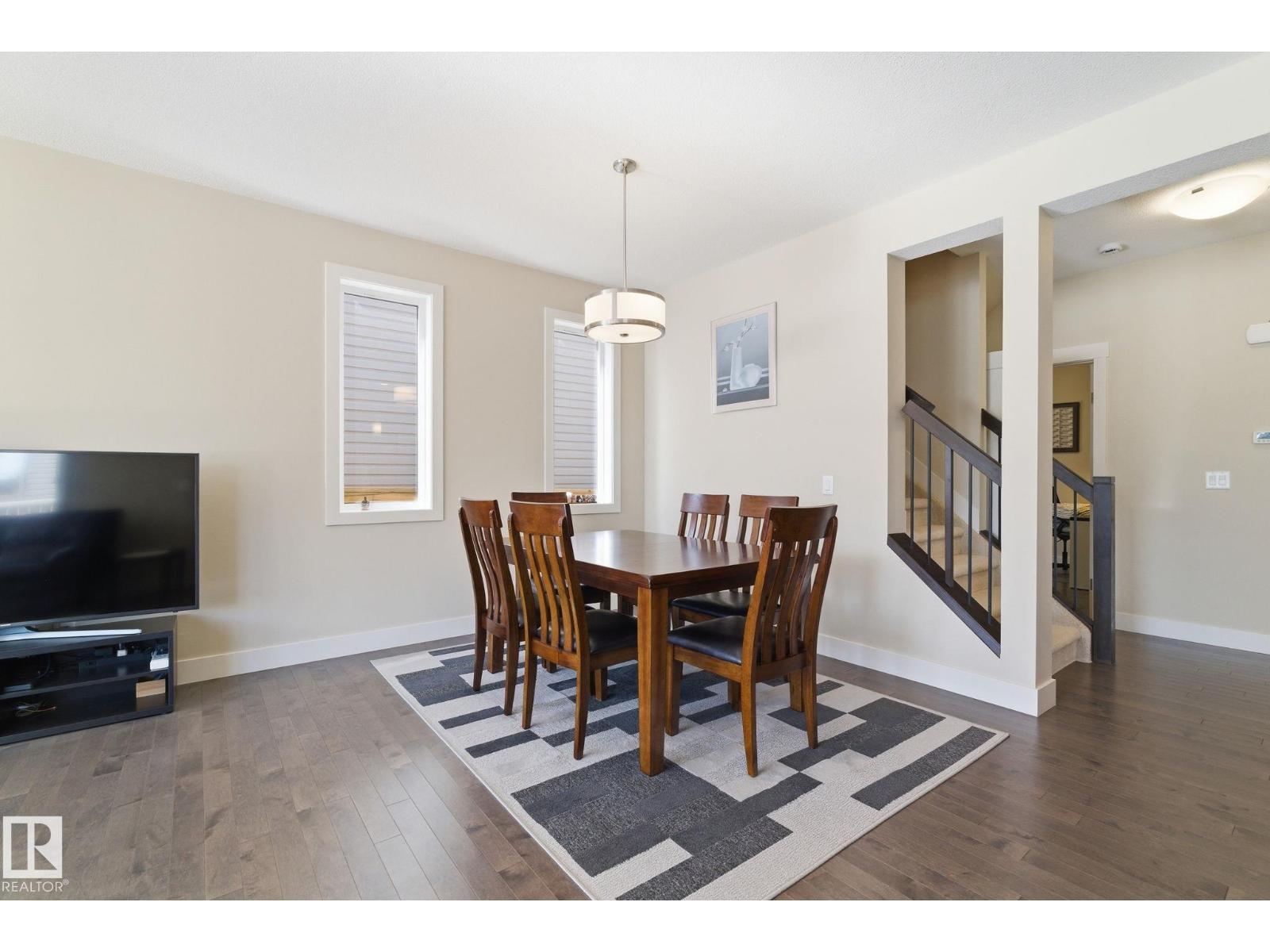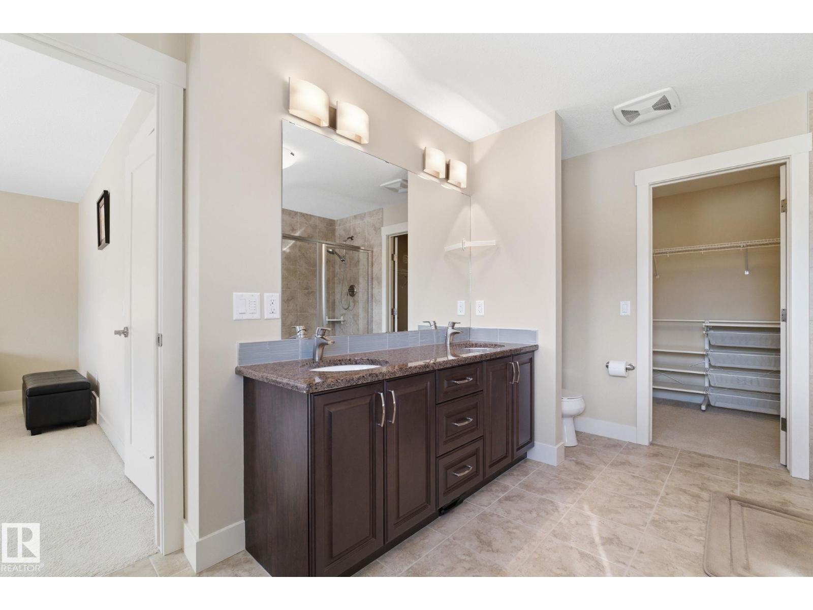 Welcome to this beautiful 2-storey home in Allard offering 2,389 sq ft of well-designed living space. The main floor features an open layout with a spacious kitchen complete with a large island, walk-in pantry, upgraded cabinetry, and granite countertops throughout. The living room includes a modern gas fireplace with a stylish stone surround, along with custom privacy blinds. A main floor bedroom and convenient half bath add flexibility. Upstairs offers a bonus room, two additional bedrooms, and a primary retreat with large windows and a spa-inspired ensuite featuring a corner soaker tub, glass shower, dual sinks, and a walk-in closet. Upper-level laundry with sink adds convenience. The south-facing backyard backs onto a walking path leading to a park & pond, and includes a deck, shed, and full landscaping. Additional highlights include a fully finished garage with epoxy flooring, gate in the backyard to the walking path, with easy access to Anthony Henday, airport, schools, shopping & amenities. (id:63190)