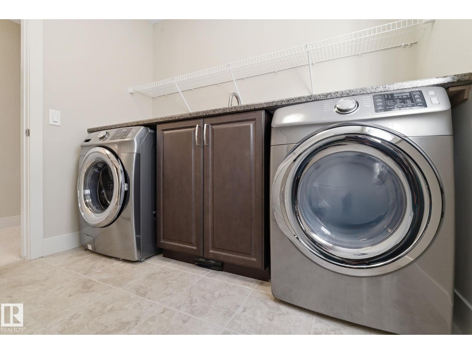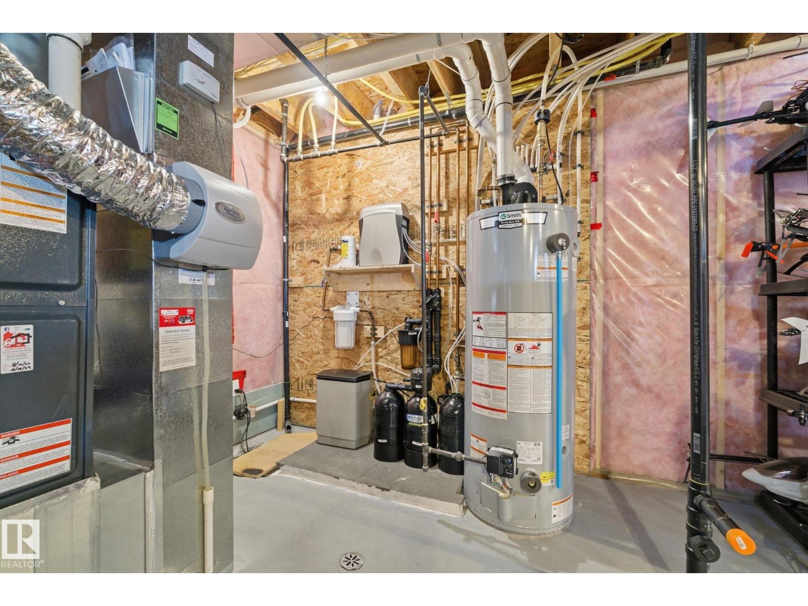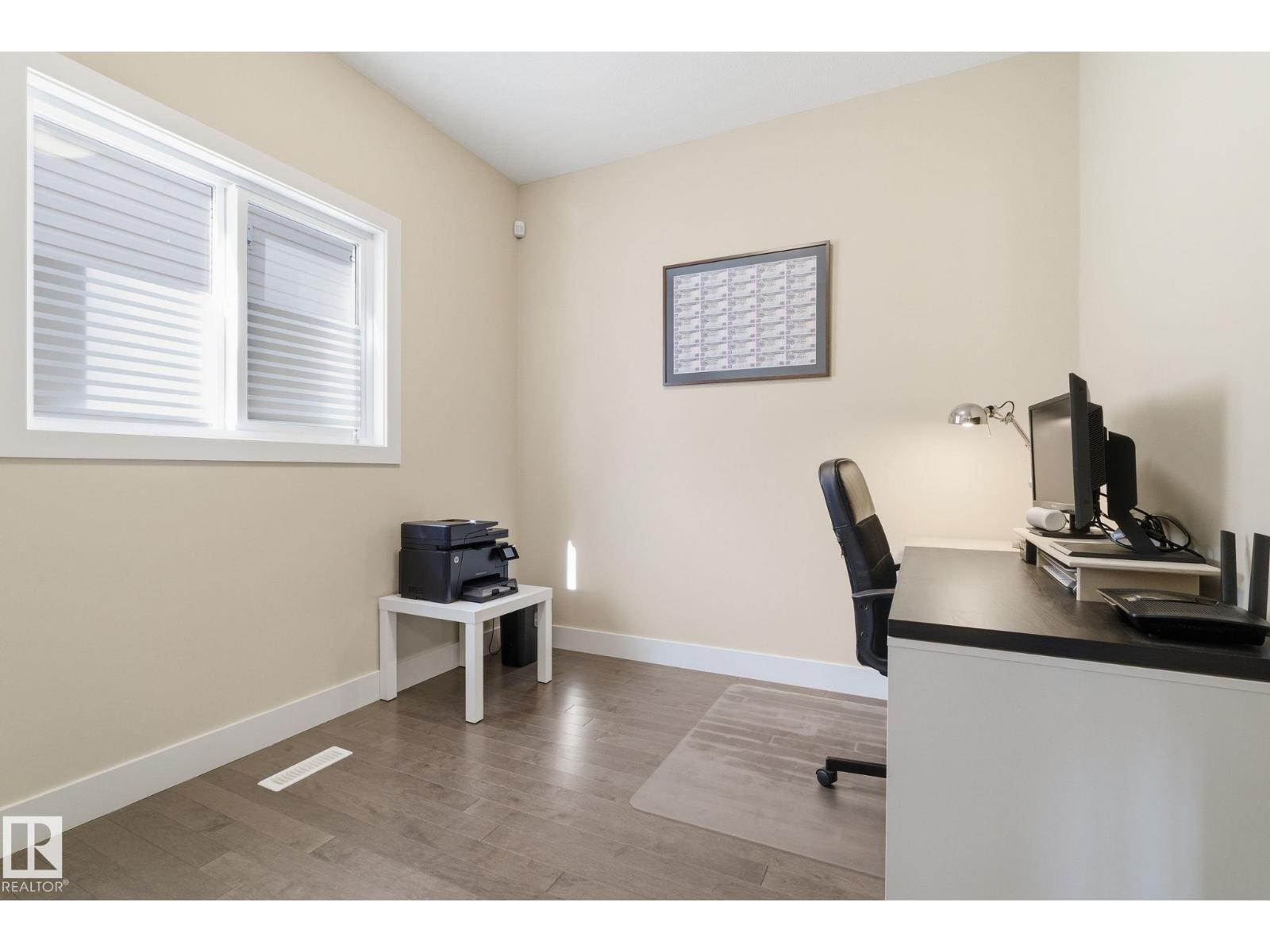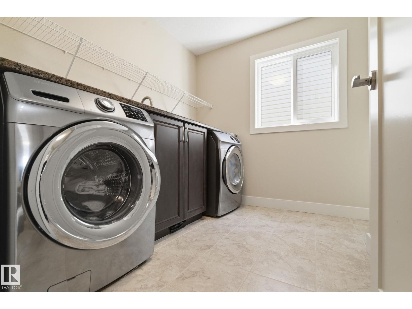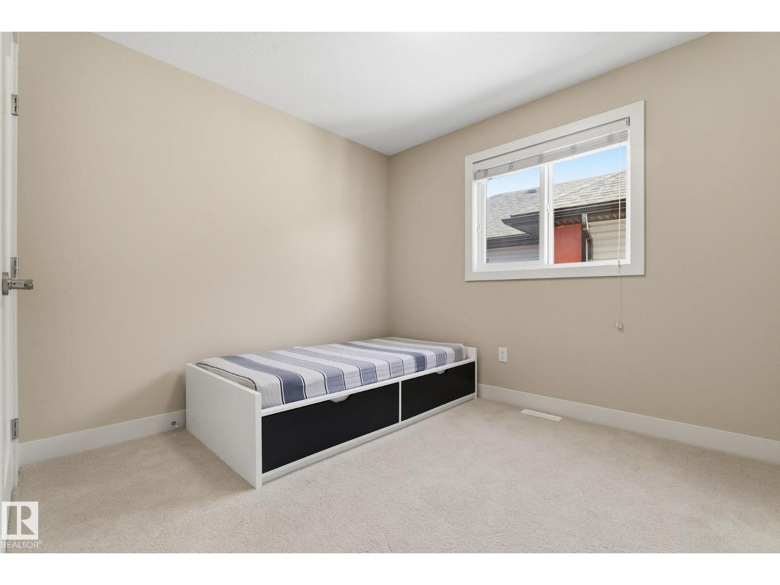 Welcome to this beautiful 2-storey home in Allard offering 2,389 sq ft of well-designed living space. The main floor features an open layout with a spacious kitchen complete with a large island, walk-in pantry, upgraded cabinetry, and granite countertops throughout. The living room includes a modern gas fireplace with a stylish stone surround, along with custom privacy blinds. A main floor bedroom and convenient half bath add flexibility. Upstairs offers a bonus room, two additional bedrooms, and a primary retreat with large windows and a spa-inspired ensuite featuring a corner soaker tub, glass shower, dual sinks, and a walk-in closet. Upper-level laundry with sink adds convenience. The south-facing backyard backs onto a walking path leading to a park & pond, and includes a deck, shed, and full landscaping. Additional highlights include a fully finished garage with epoxy flooring, gate in the backyard to the walking path, with easy access to Anthony Henday, airport, schools, shopping & amenities. (id:63190)