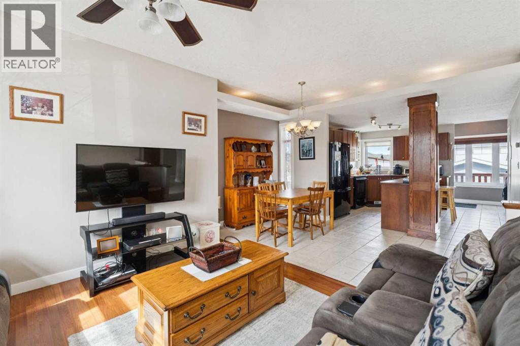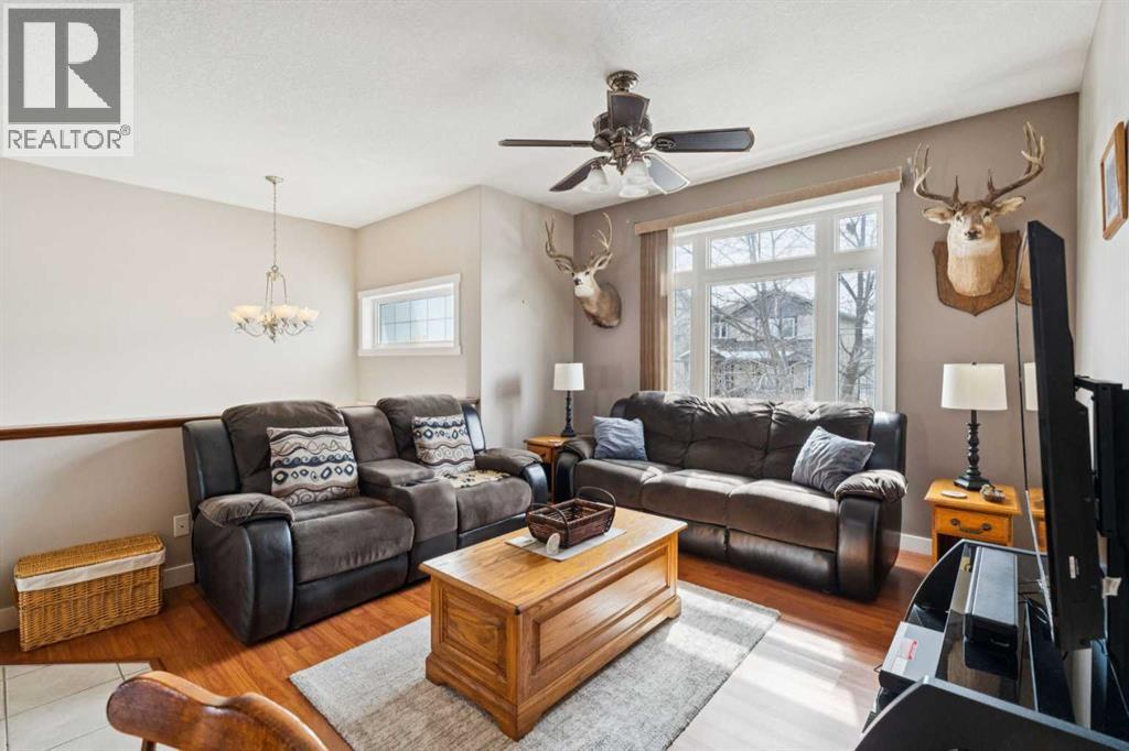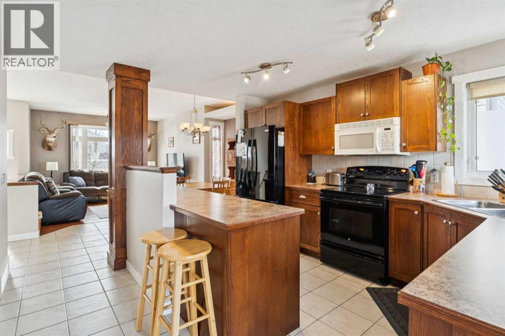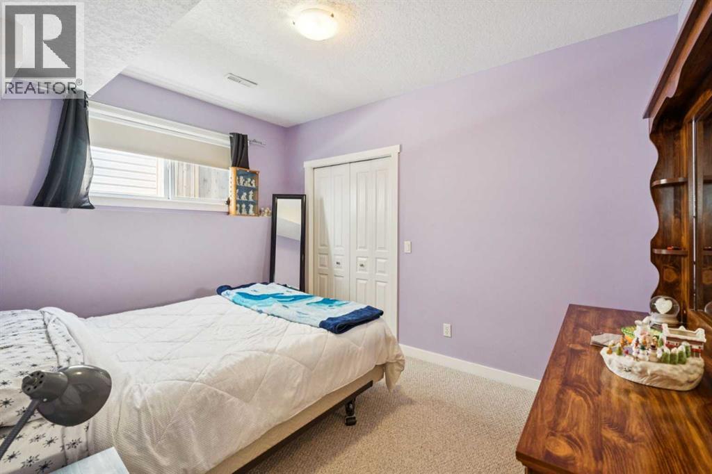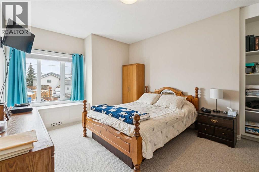 CHECK OUT OUR 24/7 VIRTUAL OPEN HOUSE. Tucked away on a quiet cul-de-sac, this spacious home offers the perfect blend of comfort, function, and lifestyle. Step inside to an inviting open-concept main floor, ideal for both everyday living and entertaining. With 4 generously sized bedrooms and 2 full bathrooms, there’s room for the whole family to spread out and enjoy. Storage will never be an issue here—every bedroom features an impressively large closet, including a walk-in in the primary suite and oversized closets in the additional bedrooms.The fully finished basement is a standout feature, boasting 10’ ceilings that create a bright, airy feel rarely found below grade. Cozy up in the recreation room beside the gas fireplace, or host unforgettable gatherings with the built-in bar area—perfect for game nights or relaxing evenings in. Outside, you’ll find an oversized, overheight double detached garage with plenty of room for vehicles, hobbies, and storage. There’s also dedicated RV or boat parking pad alongside the garage, making this home a dream for adventure lovers. Location is everything, and this one delivers. Enjoy the convenience of being within walking distance to schools, beautiful Nose Creek Park, and a nearby amenities hub featuring a 7-Eleven, pizza, dining options, and even a dance studio. Whether you’re entertaining, relaxing, or exploring the neighbourhood, this home checks all the boxes—with style to spare. Book your showing today! (id:63190)