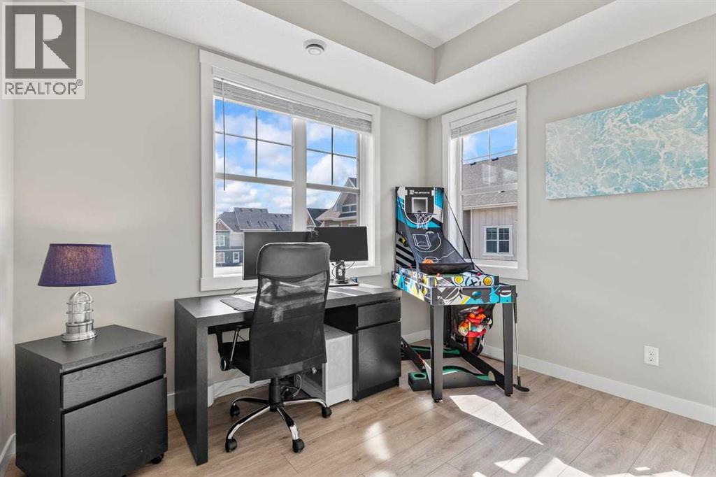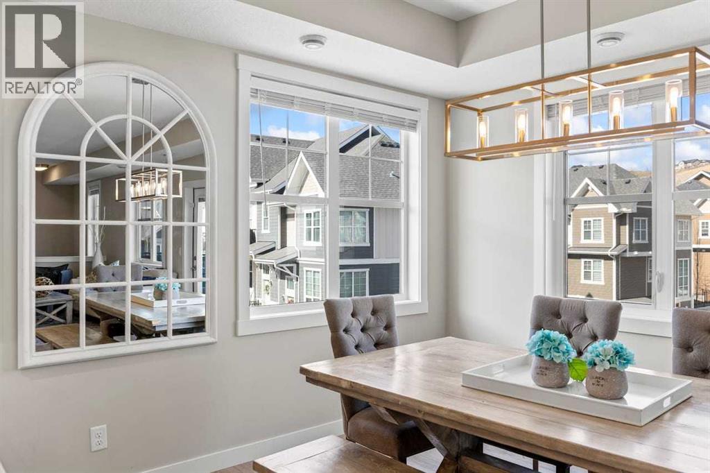 Tucked into the coveted natural enclave of Riverstone of Cranston, this rare corner end-unit offers the kind of lifestyle people move here for — Fish Creek Park, the Bow River, and miles of serene pathways literally at your doorstep. Sunlight pours through the triple-pane windows on three sides, filling every room with warmth and showcasing the home’s modern design. The main floor is an entertainer’s dream, featuring a bright living room with an electric fireplace, a spacious dining area, and a sleek, modern kitchen with quartz counters, breakfast bar seating, and clean contemporary finishes. Step outside to the oversized balcony, complete with gas and water hookups, creating a true outdoor living space overlooking the beauty of Riverstone.The main floor layout offers three full bedrooms, a rarity in this style of home, plus a true laundry room with a door, not a hallway closet. The primary suite offers its own full ensuite, while the additional bedrooms provide flexibility for family, guests, or a dedicated office. The fully developed basement adds valuable extra space, perfect for a gym, studio, or media area, and the double attached garage adds everyday convenience. Built in 2022 with Hardi board exterior, modern flooring (vinyl plank, tile, and carpet), and central air, this home blends comfort, efficiency, and style. With nature as your neighbour and a community designed for those who crave tranquility without sacrificing modern living, this Riverstone property is truly unique and hard to find. (id:63190)