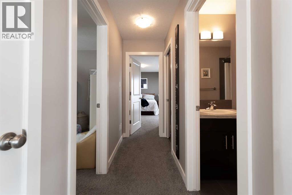 Welcome to 26 Riverglen Link W, a fully finished 2-storey home located in Riverstone West Lethbridge. Offering 1,697 sq ft above grade with a fully developed basement, this well-maintained home provides over 2,400 sq ft of total living space and features 4 bedrooms and 3.5 bathrooms, making it an ideal fit for families, professionals, or anyone seeking a move-in ready home with thoughtful design and flexibility.The main floor is designed for both everyday living and entertaining, with an open-concept layout that seamlessly connects the living room, dining area, and kitchen. The kitchen offers a central island, pantry, and ample cabinetry, while large windows fill the space with natural light. A versatile main floor room provides the option for a home office or additional bedroom, adding flexibility for changing needs.Upstairs, you’ll find three well-appointed bedrooms, including a spacious primary suite complete with a walk-in closet, private ensuite, and its own private deck — an ideal spot for morning coffee or winding down in the evening. The additional bedrooms each feature walk-in closets, along with a full bathroom and convenient upper-level laundry.The fully finished basement continues the same cabinetry, style, and colour palette found throughout the home, creating a cohesive, high-quality feel. This level is built for comfort and hosting, featuring a large family room with a gas fireplace on a thermostat, a wet bar, a dedicated theatre space with a retractable built-in screen and surround sound, an additional bedroom, and a full bathroom. It’s a space designed to be enjoyed year-round.Outside, the private, fenced and landscaped backyard offers a rear deck and ample space to relax or entertain, with room to add your own hot tub if desired. Back lane access adds extra convenience.Additional highlights include a double attached garage measuring 24’5” by 21’1”, central air conditioning, two gas fireplaces, and excellent storage throughout with multipl e closets and functional spaces. (id:63190)