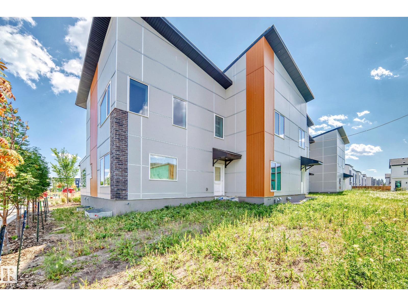Live sustainably without compromise in this NET-ZERO corner townhome in Edmonton’s visionary Blatchford community. Designed for exceptional efficiency, it features rooftop SOLAR, GEOTHERMAL heating, R-45 walls, R-80+ roof insulation, and high-performance triple-pane Superwindows. Built to produce as much energy as it consumes. The thoughtfully designed layout offers 3 bedrooms, 2.5 baths, and a bright open-concept main floor with quartz counters, custom cabinetry, and luxury vinyl plank flooring. Enjoy a private ROOFTOP PATIO and upper balcony with downtown views, plus a fully landscaped yard. Complete with a double detached garage with EV CHARGER and a self-contained 1-bedroom LANEWAY GARAGE SUITE for added income potential. Steps to parks, LRT, and amenities, this home is the ultimate blend of sustainability, style, and smart investing. (id:63190)