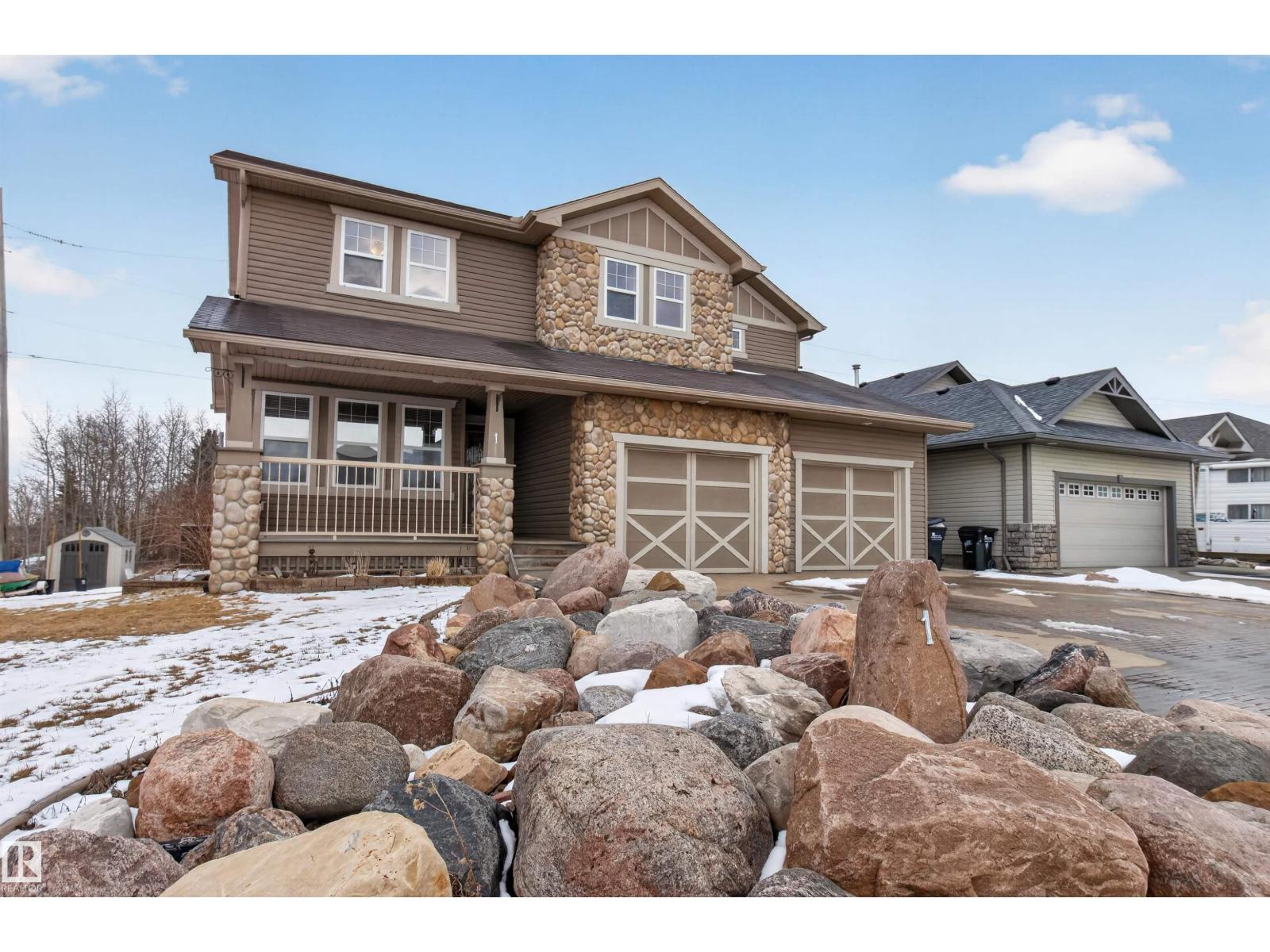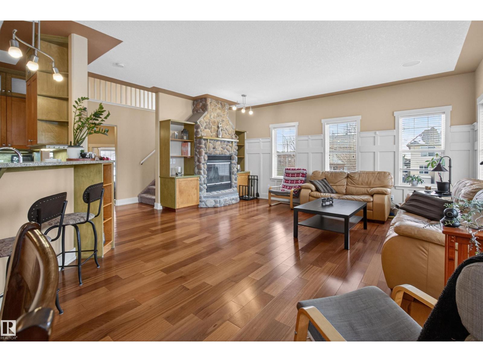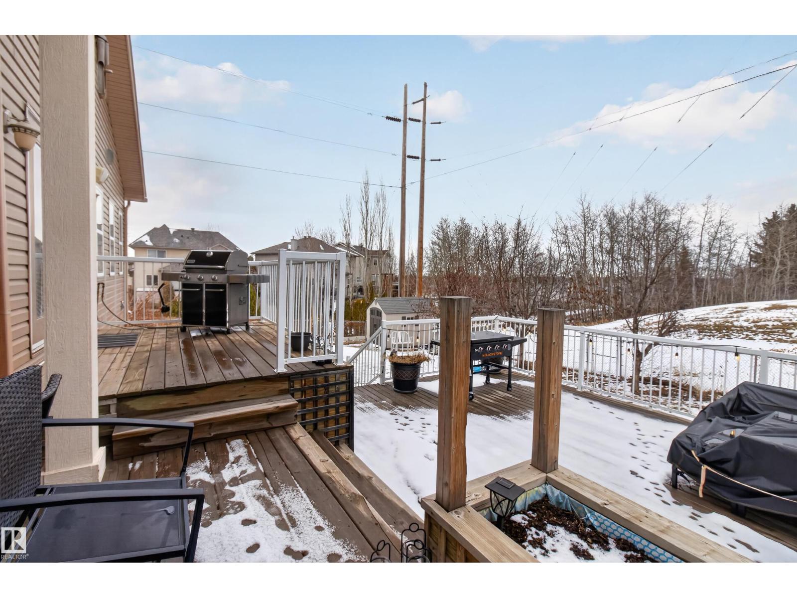 Looking for an amazing family home in Sherwood Park for under $700K? Come see this one today! Backing onto a walking trail is this GORGEOUS 2 storey on a HUGE LOT in Lakeland Ridge! Offering 2243 sq ft plus a FULLY FINISHED basement! 5 BEDROOMS PLUS DEN & 4 BATHROOMS. TRIPLE TANDEM & HEATED GARAGE! Open concept with a stylish kitchen including Granite countertops & a generous dining area. Off the dining area are garden doors to a 3 tiered deck. The spacious living room features a forced air wood-burning fireplace & hardwood floors. Main floor laundry, a 2 piece bathroom & a den as well. Upstairs are 3 large bedrooms, a 4 piece bathroom and a 5 piece ensuite the Primary Bedroom features a beautiful 5 piece ensuite, 2 walk-in closets and a balcony for your pleasure and enjoyment! The basement has epoxy flooring, IN-FLOOR HEATING, a large Rec Room, 2 bedrooms & a 3 piece bathroom. Fantastic backyard! Beautiful curb appeal with an attractive river rock exterior. The stamped concrete driveway fits 4 vehicles! (id:63190)