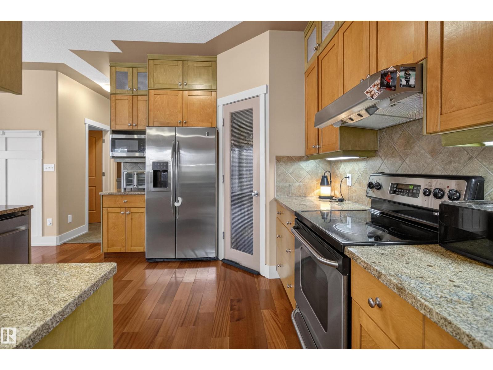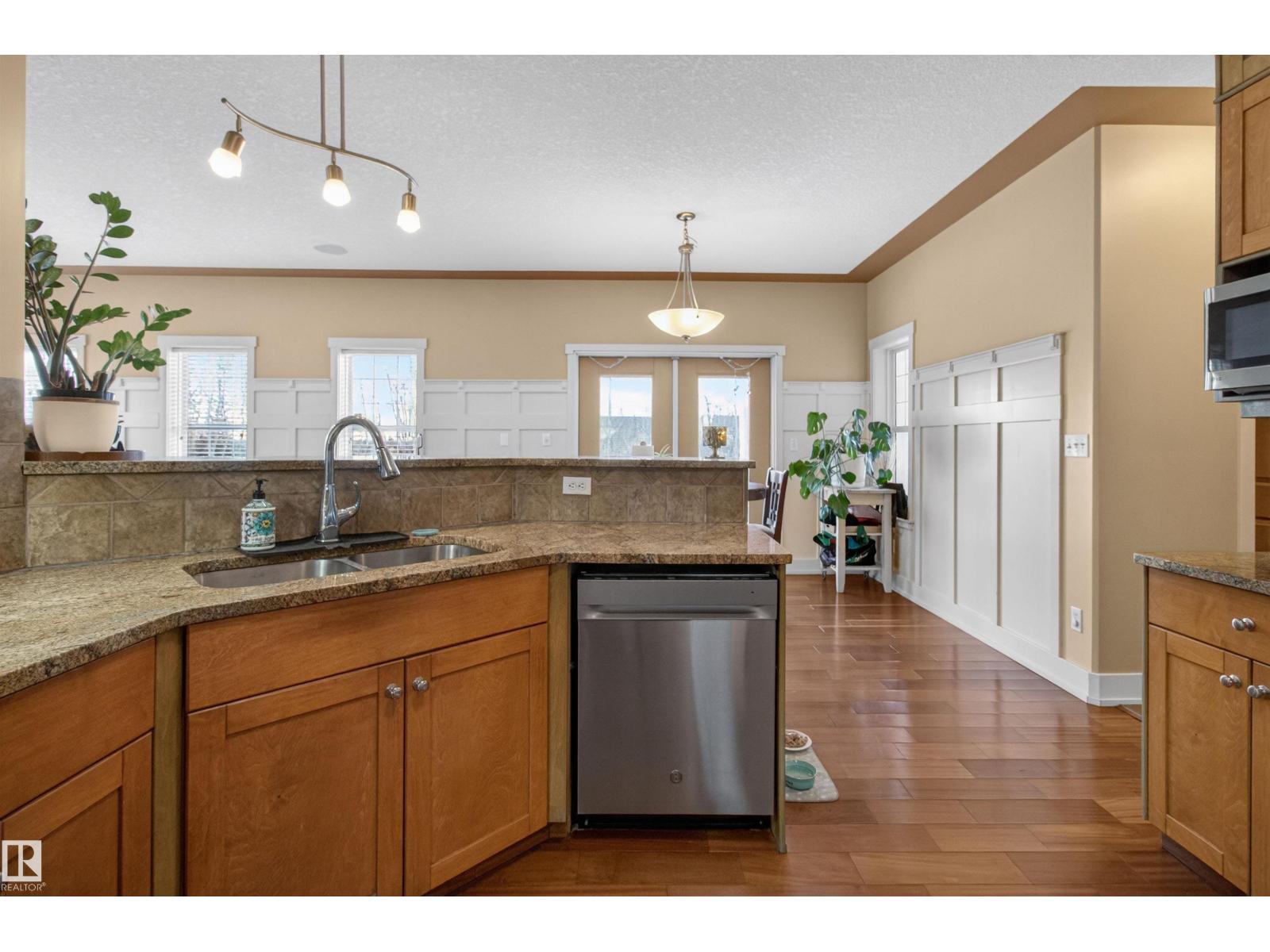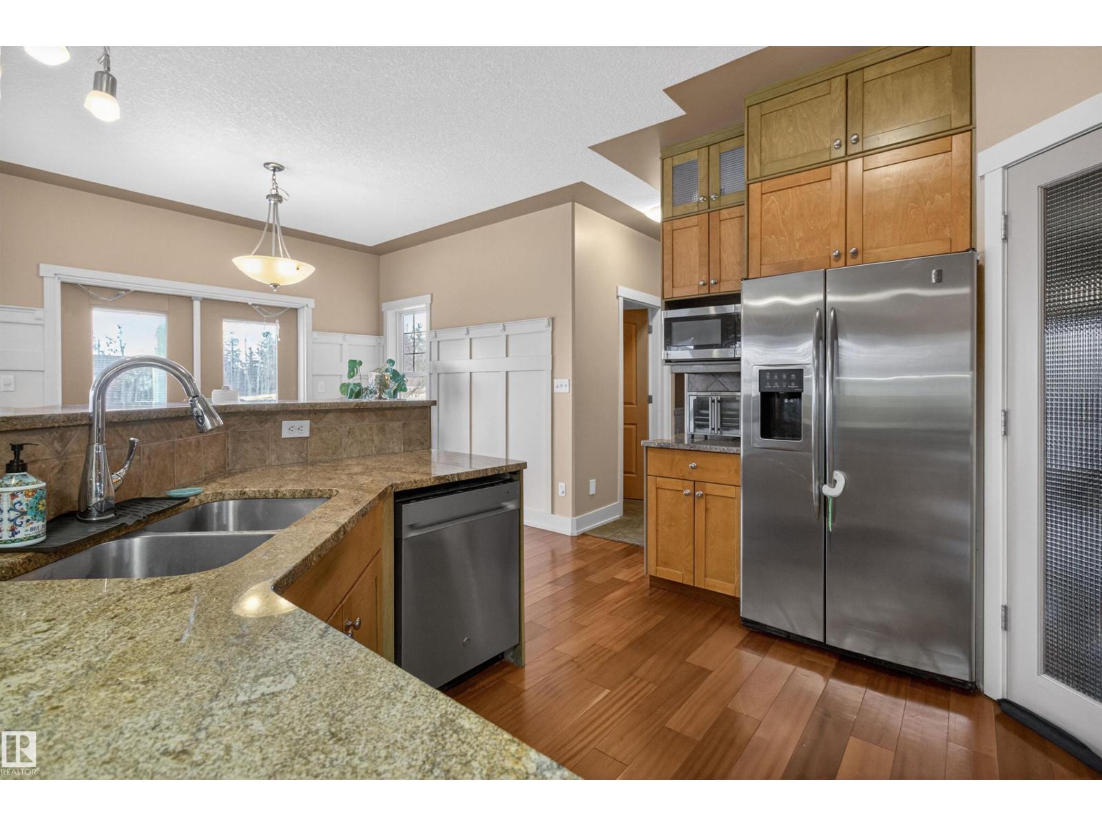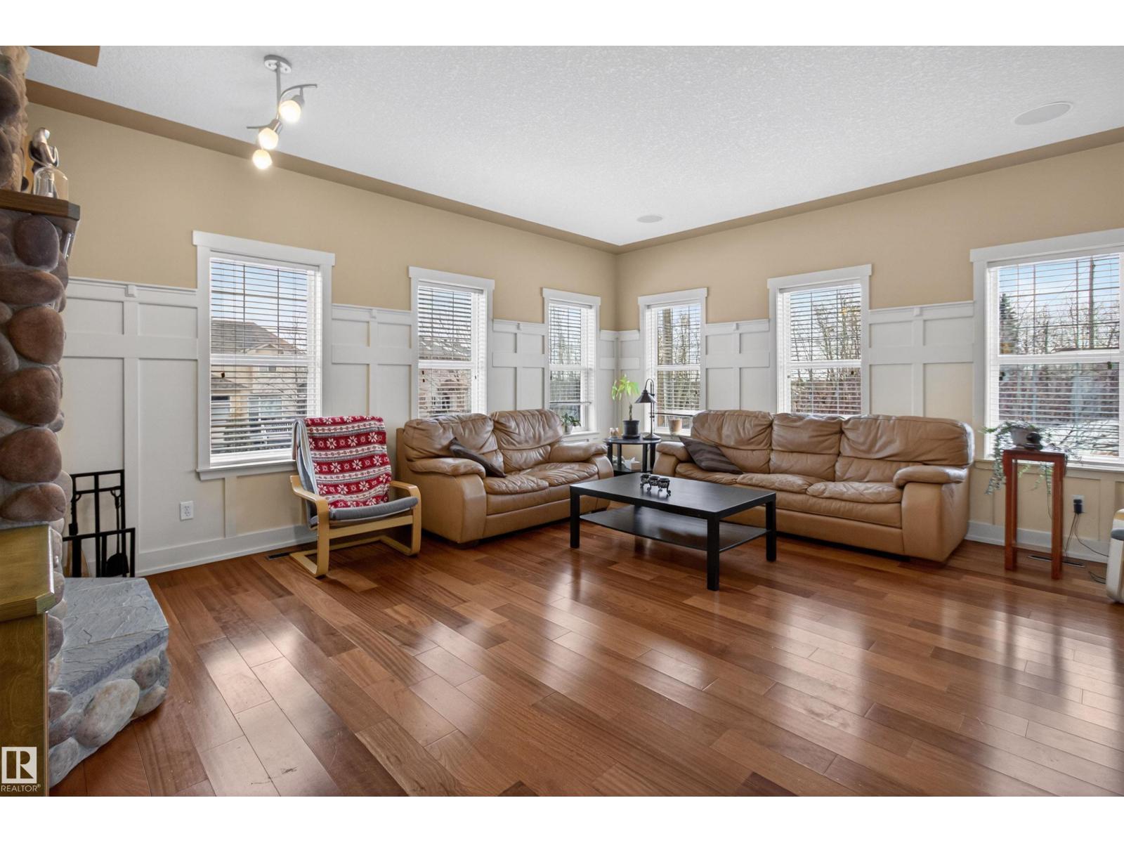 Looking for an amazing family home in Sherwood Park for under $700K? Come see this one today! Backing onto a walking trail is this GORGEOUS 2 storey on a HUGE LOT in Lakeland Ridge! Offering 2243 sq ft plus a FULLY FINISHED basement! 5 BEDROOMS PLUS DEN & 4 BATHROOMS. TRIPLE TANDEM & HEATED GARAGE! Open concept with a stylish kitchen including Granite countertops & a generous dining area. Off the dining area are garden doors to a 3 tiered deck. The spacious living room features a forced air wood-burning fireplace & hardwood floors. Main floor laundry, a 2 piece bathroom & a den as well. Upstairs are 3 large bedrooms, a 4 piece bathroom and a 5 piece ensuite the Primary Bedroom features a beautiful 5 piece ensuite, 2 walk-in closets and a balcony for your pleasure and enjoyment! The basement has epoxy flooring, IN-FLOOR HEATING, a large Rec Room, 2 bedrooms & a 3 piece bathroom. Fantastic backyard! Beautiful curb appeal with an attractive river rock exterior. The stamped concrete driveway fits 4 vehicles! (id:63190)