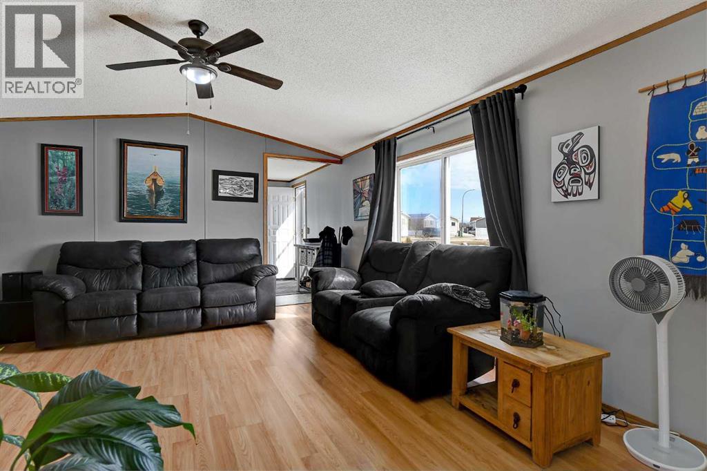Great home located in desirable Trumpeter Village, perfectly situated right beside a playground—ideal for families! This bright, freshly painted home offers 3 bedrooms and 2 bathrooms, with a spacious layout designed for comfortable living. The large kitchen has plenty of cupboard space and includes a pantry for extra storage. Recent updates include new shingles (2024), adding peace of mind for years to come. Step outside to enjoy the deck overlooking a big, fully fenced yard—perfect for kids and outdoor gatherings. A shed provides extra storage for all your needs. A fantastic opportunity in a great location! (id:63190)