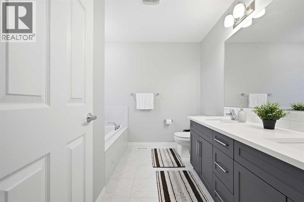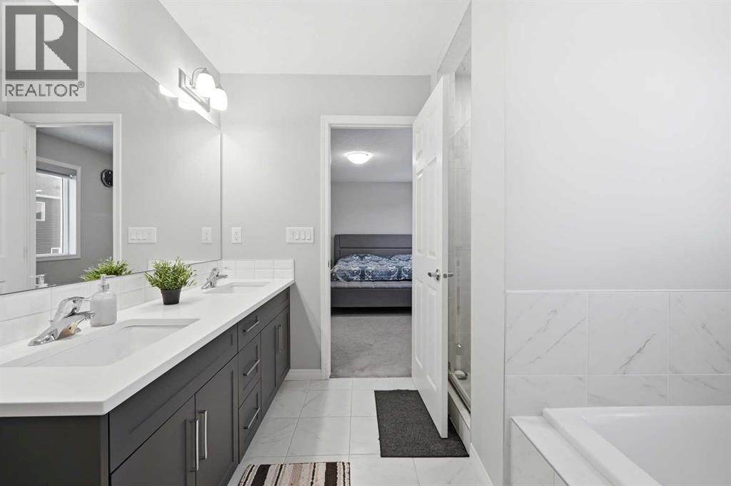 Perfectly situated on a quiet street, this beautifully built two-storey home boasts exceptional curb appeal and over 1,800 sq. ft. of thoughtfully designed living space. Step inside to a welcoming front entrance that opens to a warm and inviting main floor, highlighted by durable vinyl plank flooring throughout the kitchen, dining, and living areas.The spacious, modern kitchen is ideal for both everyday living and entertaining, featuring stainless steel appliances, custom crisp white countertops, ample grey cabinetry, and a large center island with a sit-up breakfast bar—perfect for gatherings with family and friends.Upstairs, you’ll find three generously sized bedrooms, a Bonus room and a well-appointed 4-piece main bathroom. The primary retreat offers a stunning ensuite complete with his-and-her sinks, a relaxing soaker tub, and a separate stand-up shower, creating a true spa-like experience.The unfinished basement provides a blank canvas, ready for your creative vision—whether you’re dreaming of a home gym or additional living space. This exceptional home truly checks all the boxes and won’t last long. Call today to book your private viewing! (id:63190)