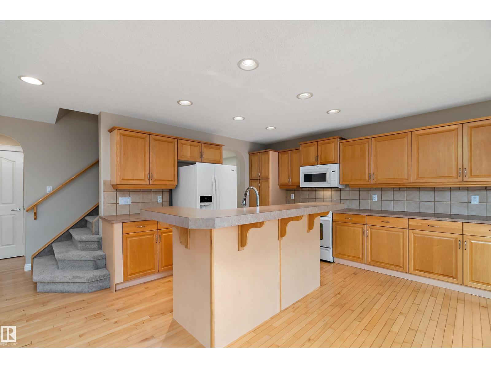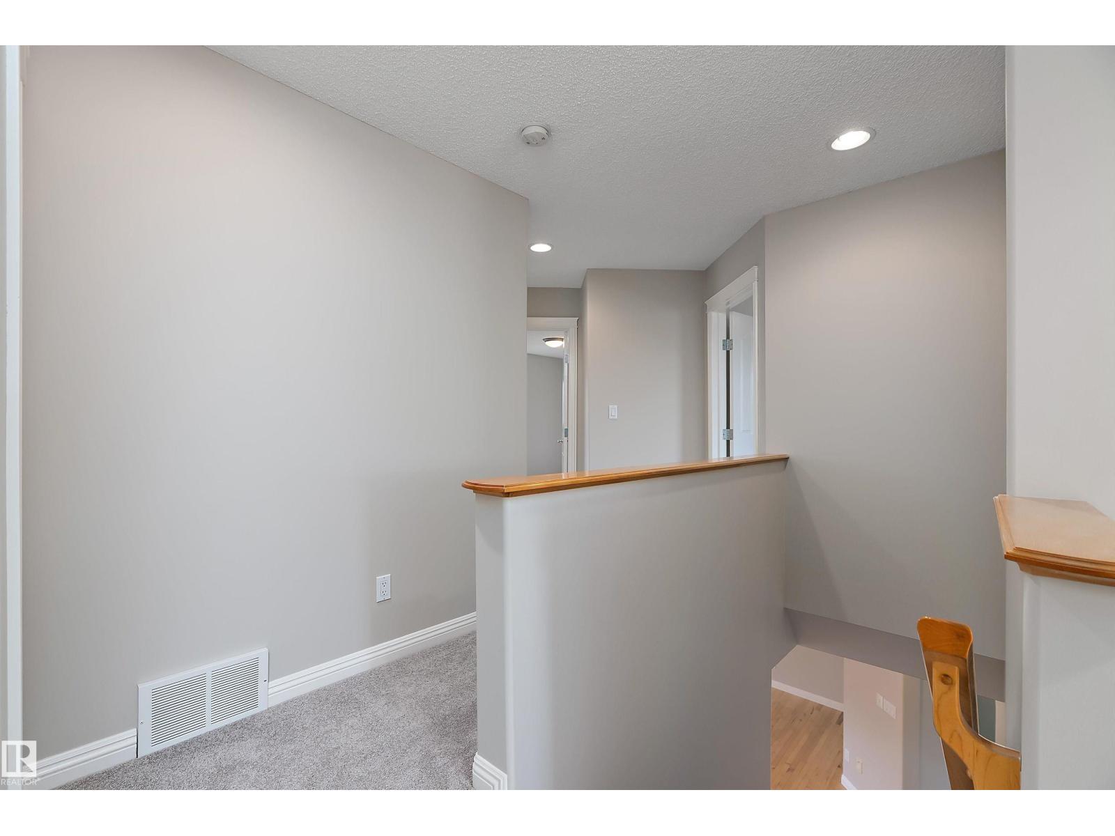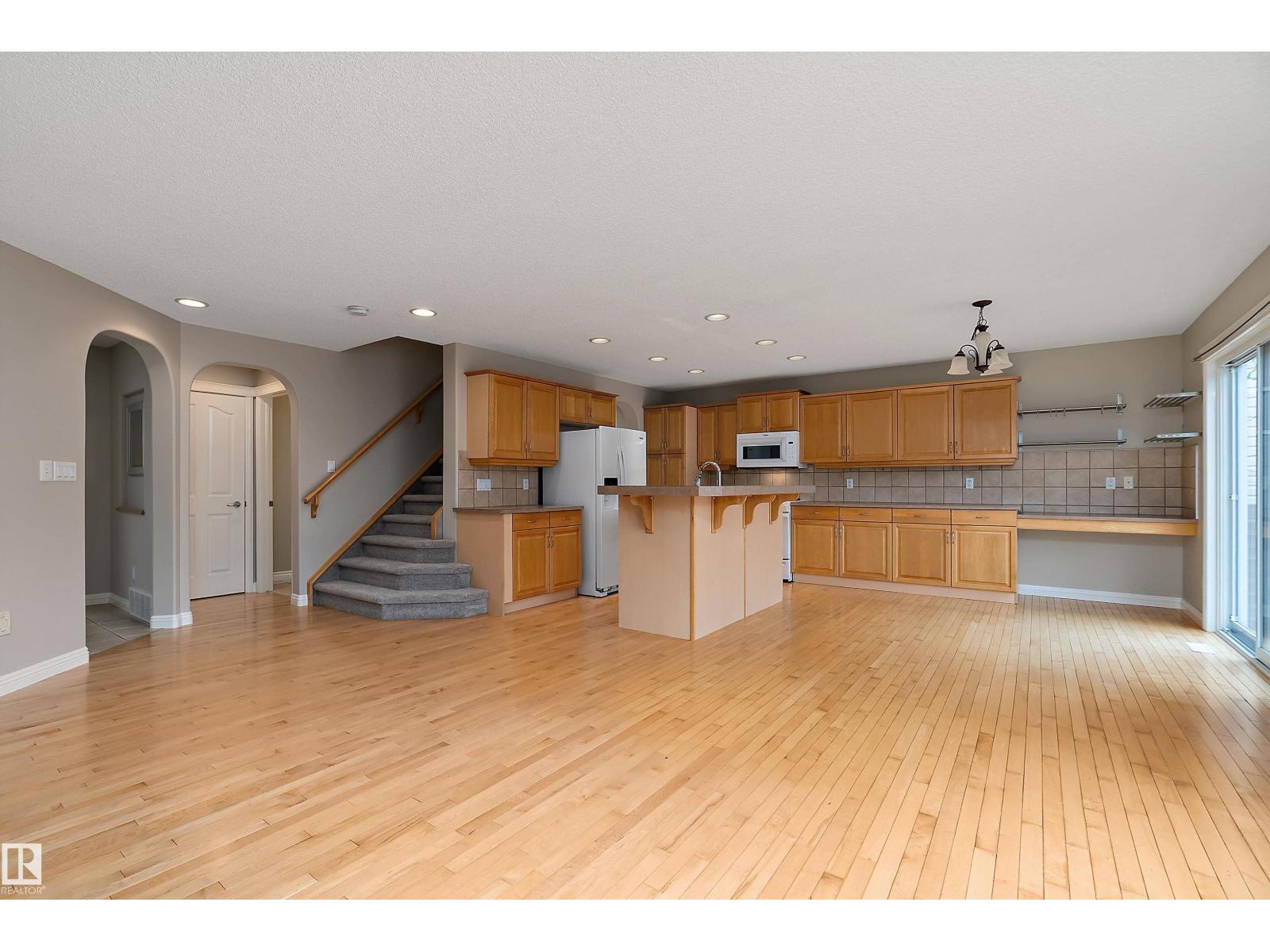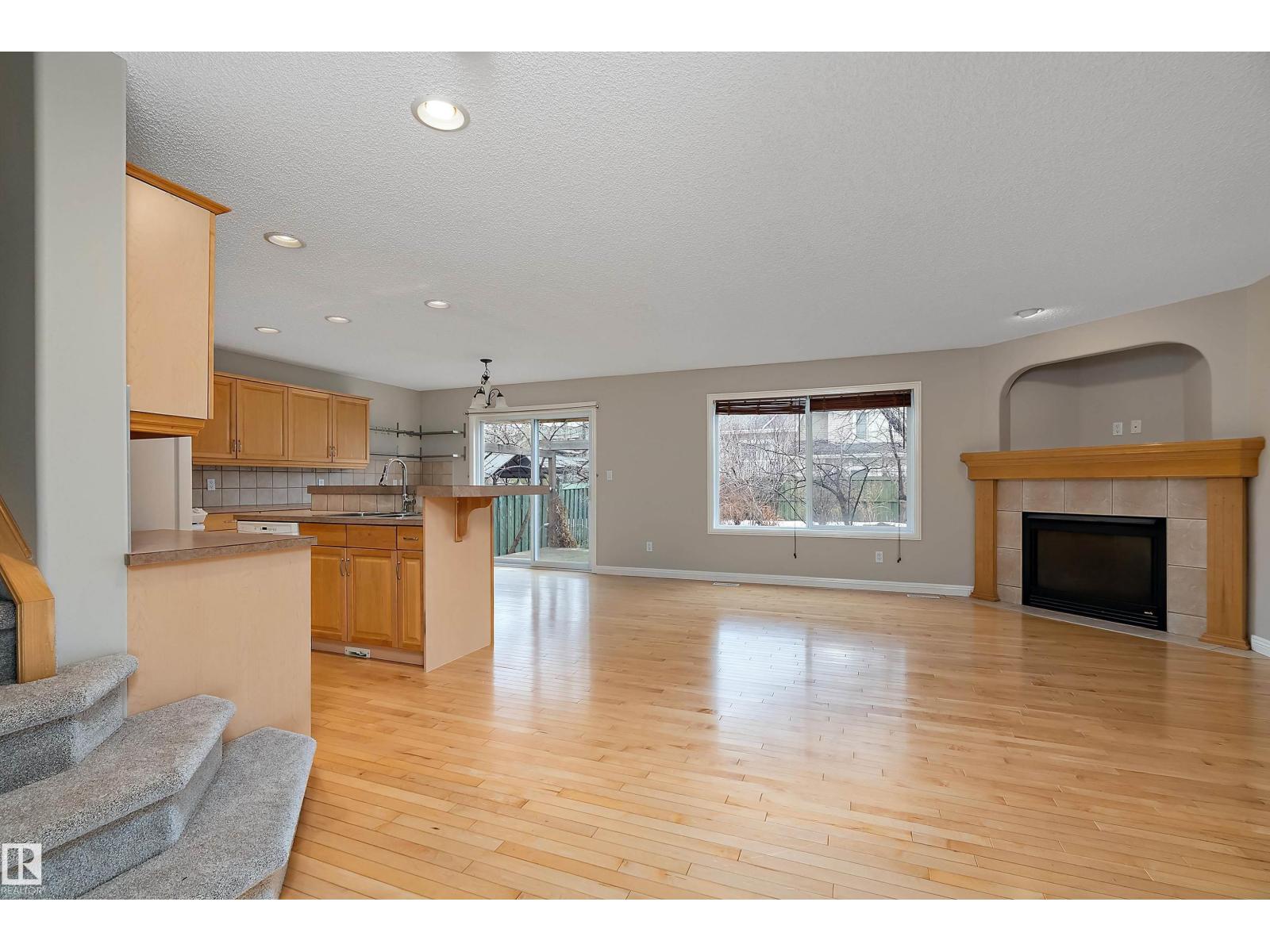 Welcome to Haddow one of Southwest Edmonton’s most sought-after communities. Just steps from Haddow Park, walking trails, & the community centre, this location’s hard to beat. This beautifully maintained two-storey with 1,800+ sq ft of upgraded, functional living space and has been freshly painted. From the moment you walk in, you’ll notice the warm maple hardwood, abundance of natural light, & a layout that just makes sense. The kitchen is a standout, featuring rich maple cabinetry, crown moulding, a large island with breakfast bar, & plenty of prep space. It flows seamlessly into the great room—perfect for everyday living or entertaining. Upstairs offers new carpet with premium underlay, a versatile bonus room, & a spacious primary with ensuite including soaker tub and separate shower. Two additional bedrooms & a full bath complete the level. Enjoy the private south-facing backyard with mature trees, gardens, & fruit. Central A/C included. Minutes to Windermere, trails, and Henday access. Move-in ready! (id:63190)