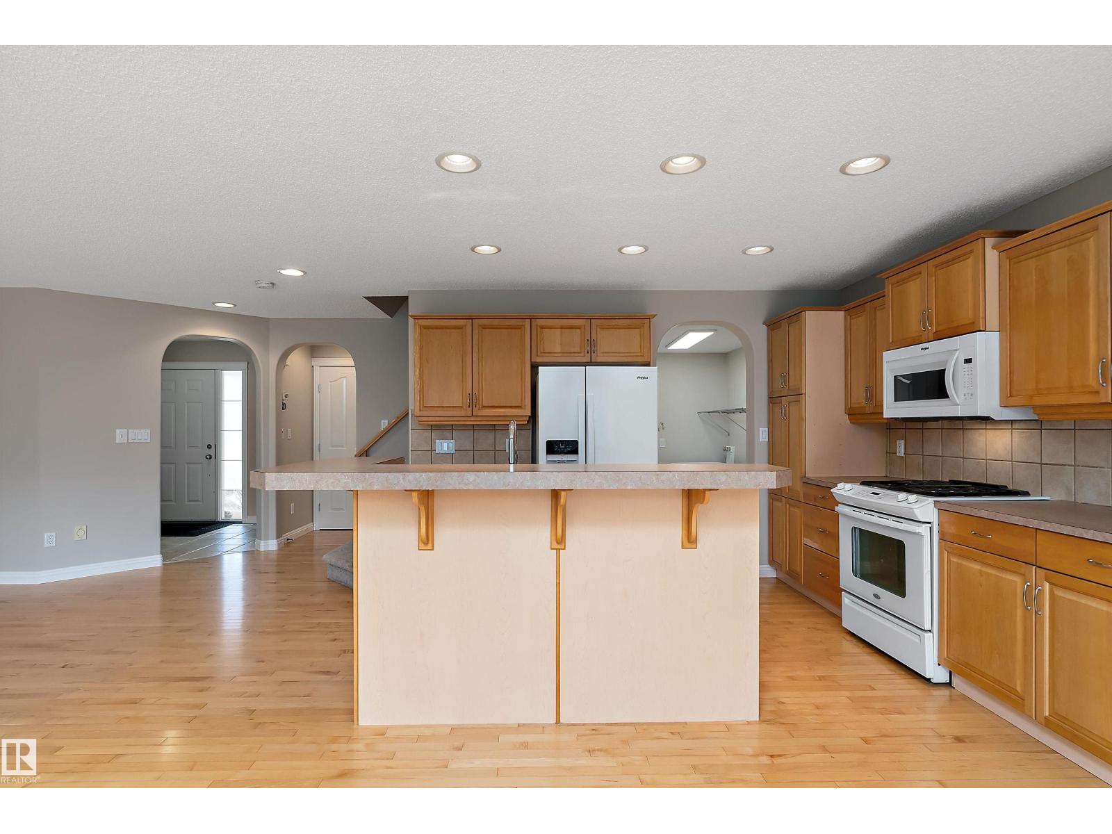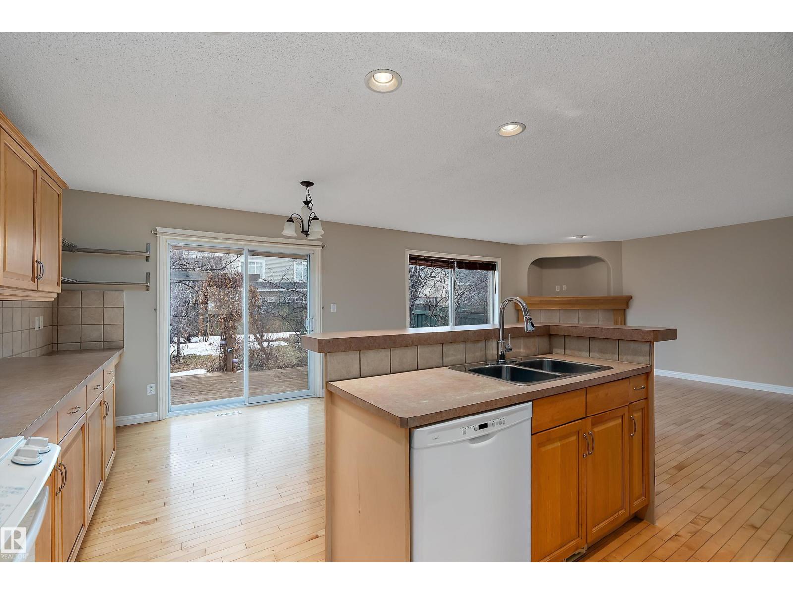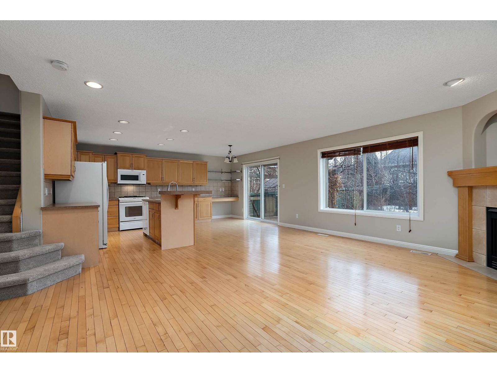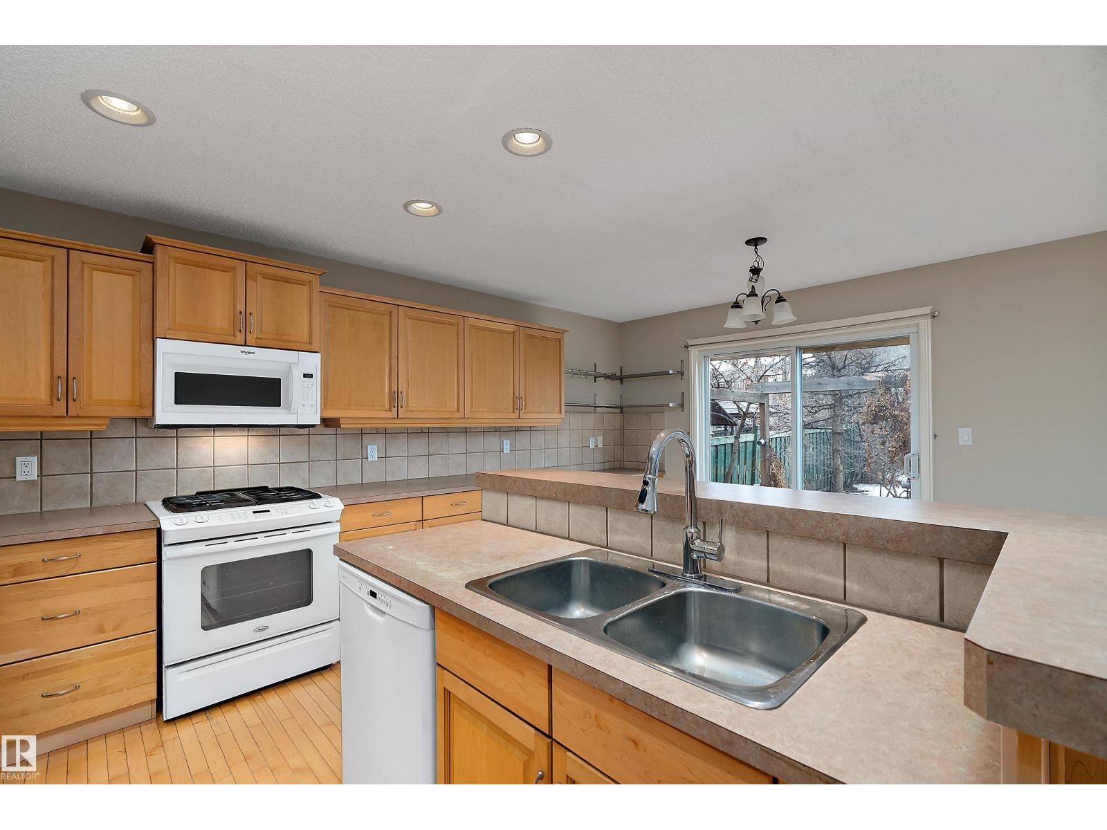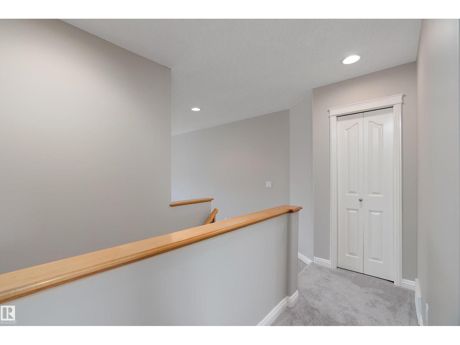 Welcome to Haddow one of Southwest Edmonton’s most sought-after communities. Just steps from Haddow Park, walking trails, & the community centre, this location’s hard to beat. This beautifully maintained two-storey with 1,800+ sq ft of upgraded, functional living space and has been freshly painted. From the moment you walk in, you’ll notice the warm maple hardwood, abundance of natural light, & a layout that just makes sense. The kitchen is a standout, featuring rich maple cabinetry, crown moulding, a large island with breakfast bar, & plenty of prep space. It flows seamlessly into the great room—perfect for everyday living or entertaining. Upstairs offers new carpet with premium underlay, a versatile bonus room, & a spacious primary with ensuite including soaker tub and separate shower. Two additional bedrooms & a full bath complete the level. Enjoy the private south-facing backyard with mature trees, gardens, & fruit. Central A/C included. Minutes to Windermere, trails, and Henday access. Move-in ready! (id:63190)