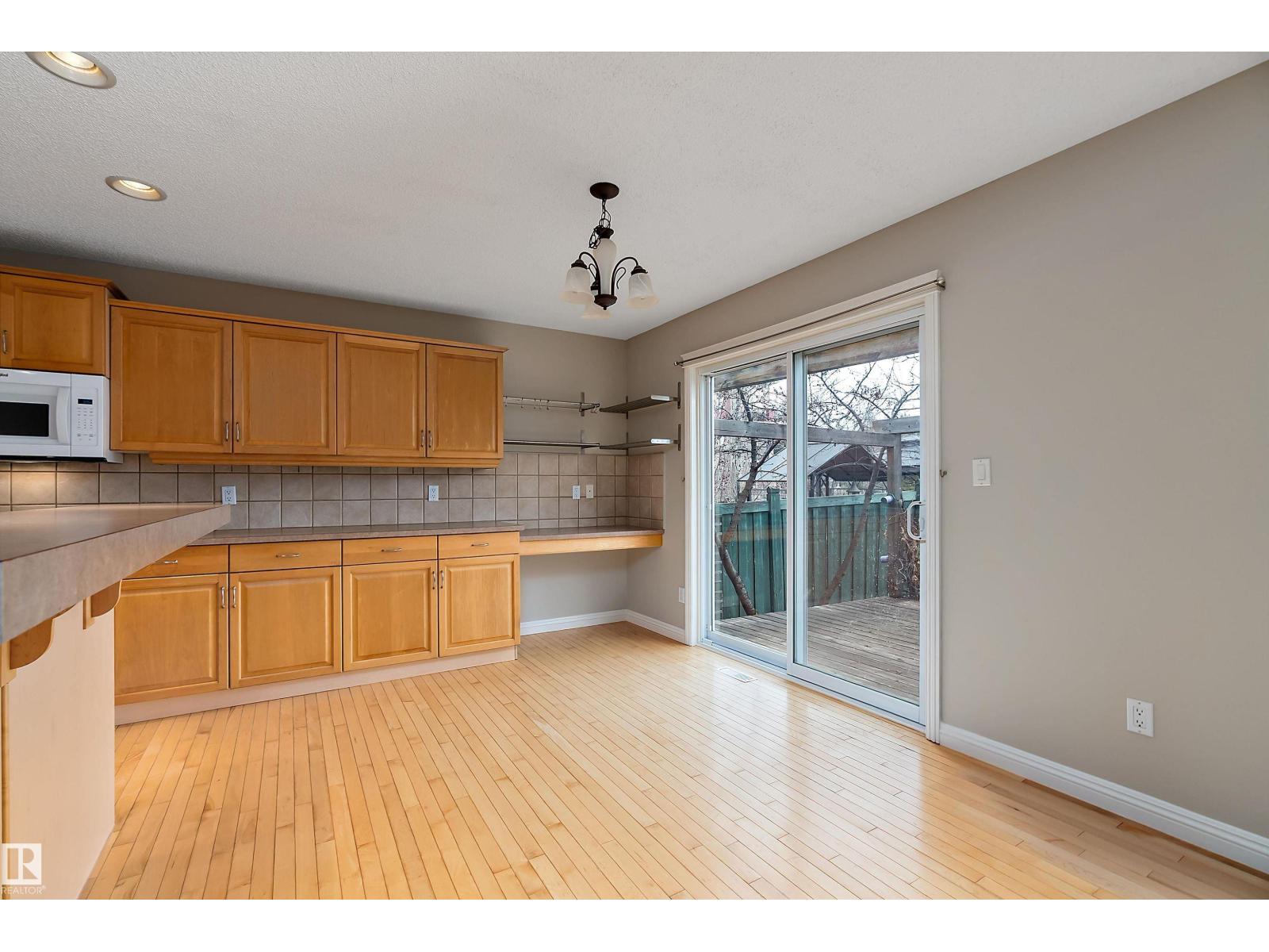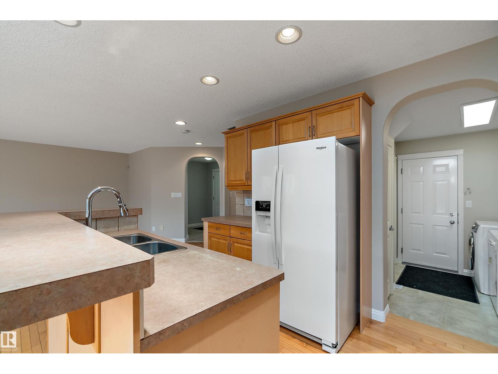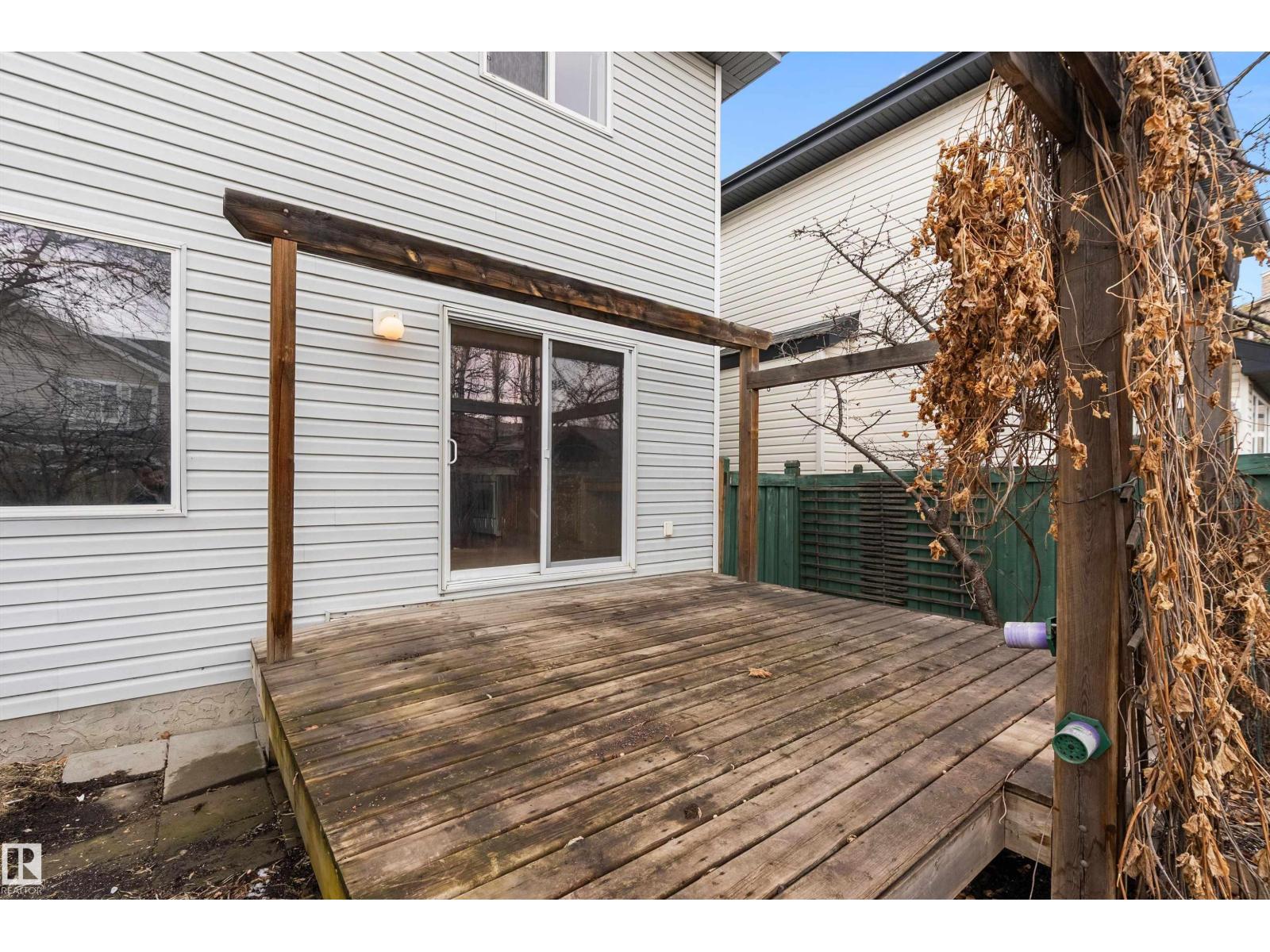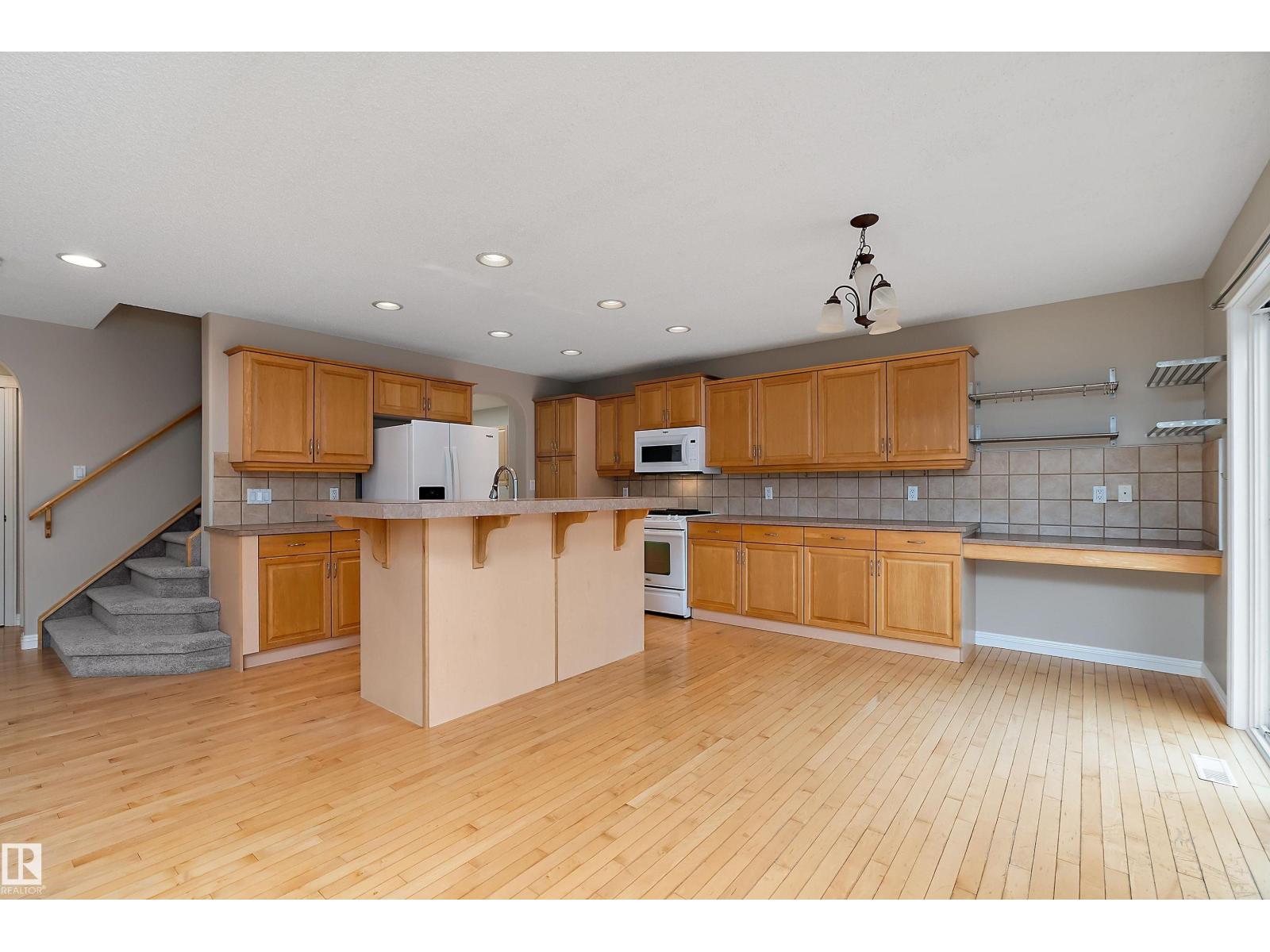 Welcome to Haddow one of Southwest Edmonton’s most sought-after communities. Just steps from Haddow Park, walking trails, & the community centre, this location’s hard to beat. This beautifully maintained two-storey with 1,800+ sq ft of upgraded, functional living space and has been freshly painted. From the moment you walk in, you’ll notice the warm maple hardwood, abundance of natural light, & a layout that just makes sense. The kitchen is a standout, featuring rich maple cabinetry, crown moulding, a large island with breakfast bar, & plenty of prep space. It flows seamlessly into the great room—perfect for everyday living or entertaining. Upstairs offers new carpet with premium underlay, a versatile bonus room, & a spacious primary with ensuite including soaker tub and separate shower. Two additional bedrooms & a full bath complete the level. Enjoy the private south-facing backyard with mature trees, gardens, & fruit. Central A/C included. Minutes to Windermere, trails, and Henday access. Move-in ready! (id:63190)