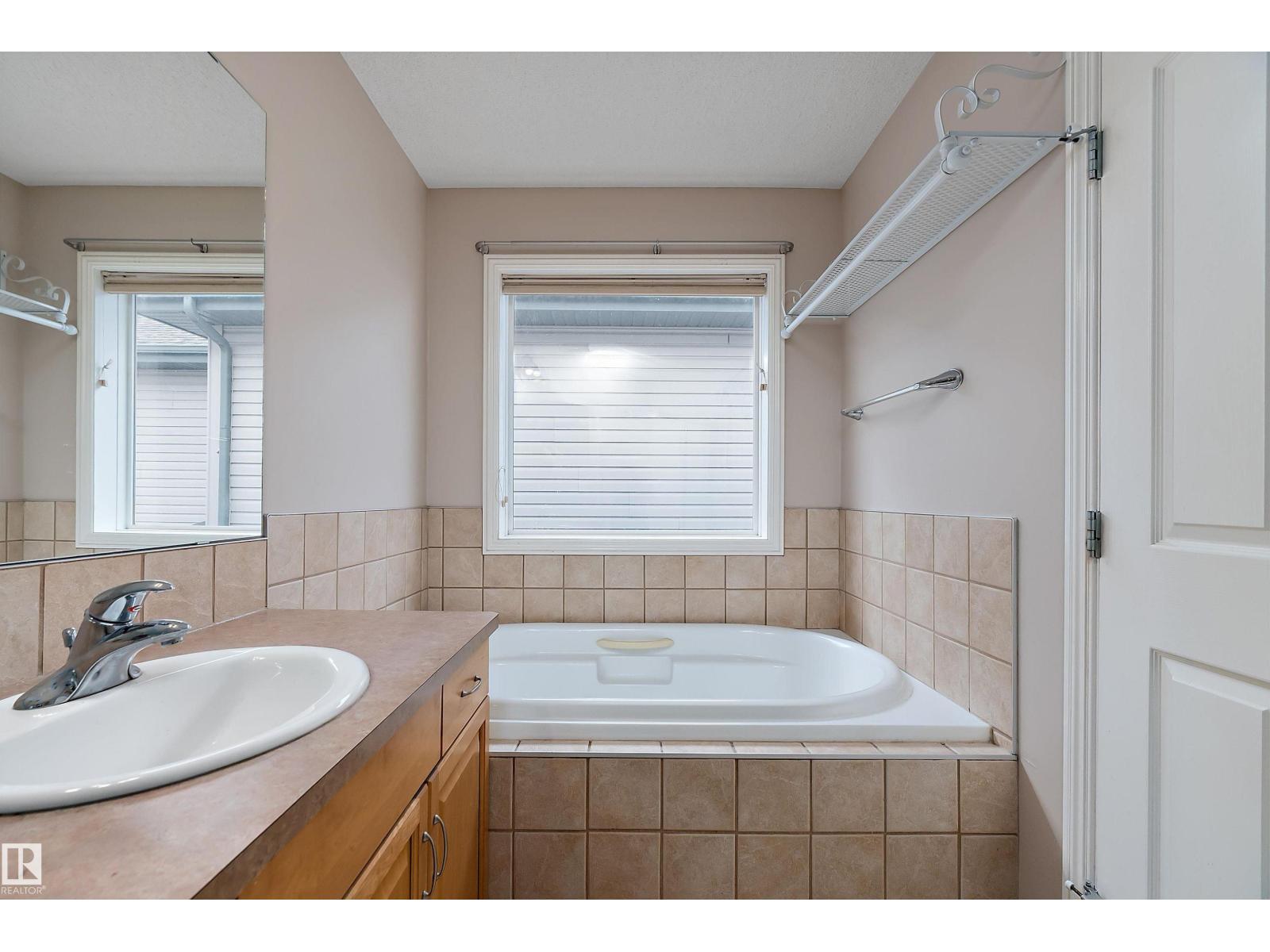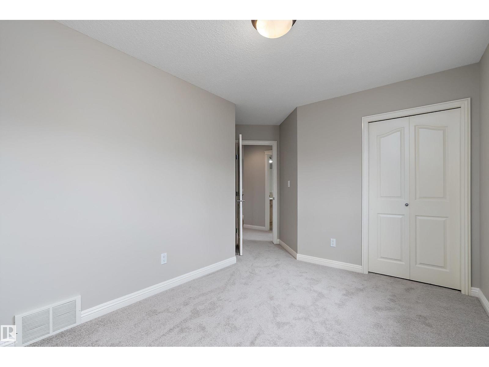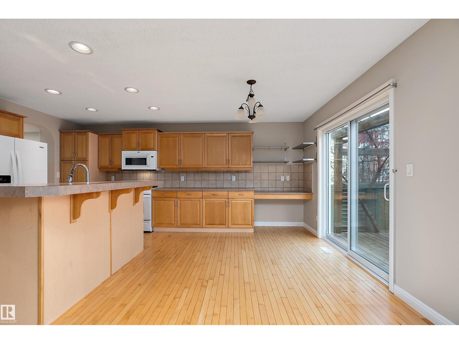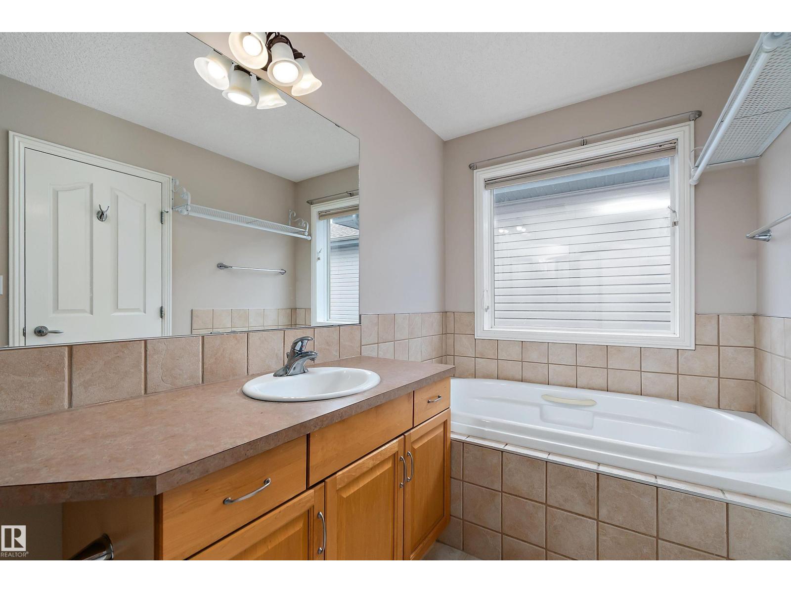 Welcome to Haddow one of Southwest Edmonton’s most sought-after communities. Just steps from Haddow Park, walking trails, & the community centre, this location’s hard to beat. This beautifully maintained two-storey with 1,800+ sq ft of upgraded, functional living space and has been freshly painted. From the moment you walk in, you’ll notice the warm maple hardwood, abundance of natural light, & a layout that just makes sense. The kitchen is a standout, featuring rich maple cabinetry, crown moulding, a large island with breakfast bar, & plenty of prep space. It flows seamlessly into the great room—perfect for everyday living or entertaining. Upstairs offers new carpet with premium underlay, a versatile bonus room, & a spacious primary with ensuite including soaker tub and separate shower. Two additional bedrooms & a full bath complete the level. Enjoy the private south-facing backyard with mature trees, gardens, & fruit. Central A/C included. Minutes to Windermere, trails, and Henday access. Move-in ready! (id:63190)