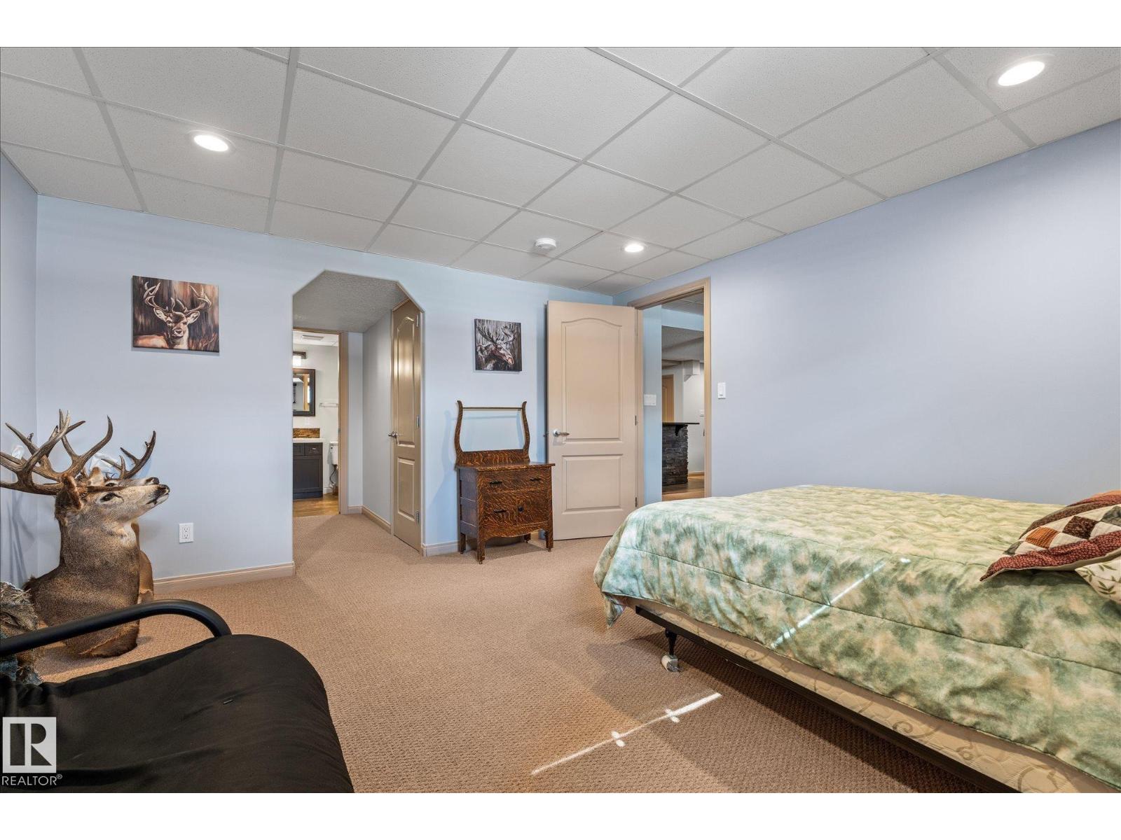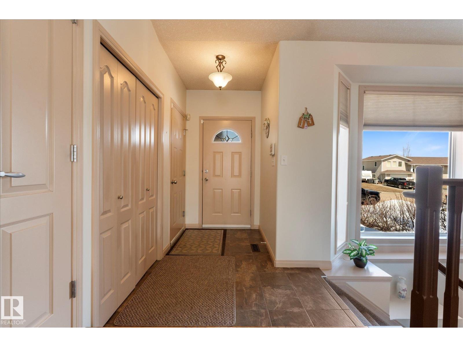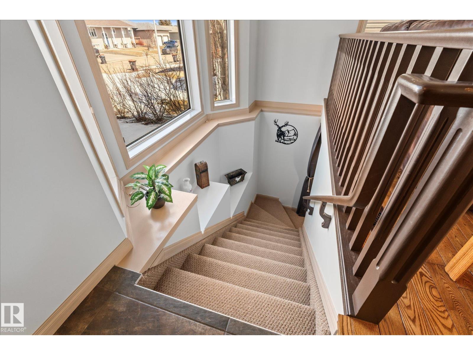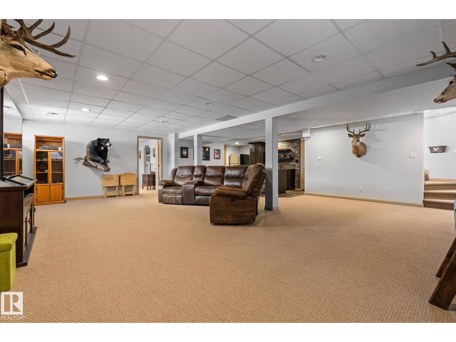 Welcome to this well-maintained bungalow in the Town of Thorsby, offering a great layout and plenty of space for the whole family. As you enter, you’re welcomed by a bright and spacious living room with vaulted ceilings, hardwood flooring, and a cozy gas fireplace. The kitchen includes plenty of cabinetry, white appliances, and a pantry, with the dining area providing patio door access to your fully private composite deck. Down the hall, you’ll find main floor laundry and a full 4 pce bathroom, followed by 3 bedrooms, including a large primary with ample closet space and a 3 pce ensuite. The fully finished basement offers a huge rec room with its own wet bar, a 4th bedroom, a 3 pce bathroom with stand up shower, and tons of storage space. Outside, enjoy the nicely sized yard complete with a fire pit area and storage shed. Additional highlights include a heated double attached garage with direct access from the main entry, extra parking for vehicles or RV, and a newer roof completed in 2019. (id:63190)