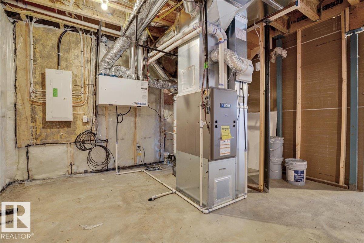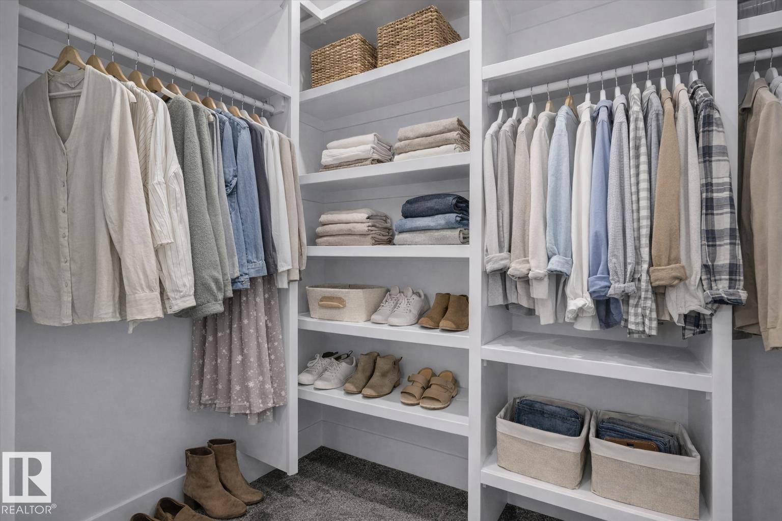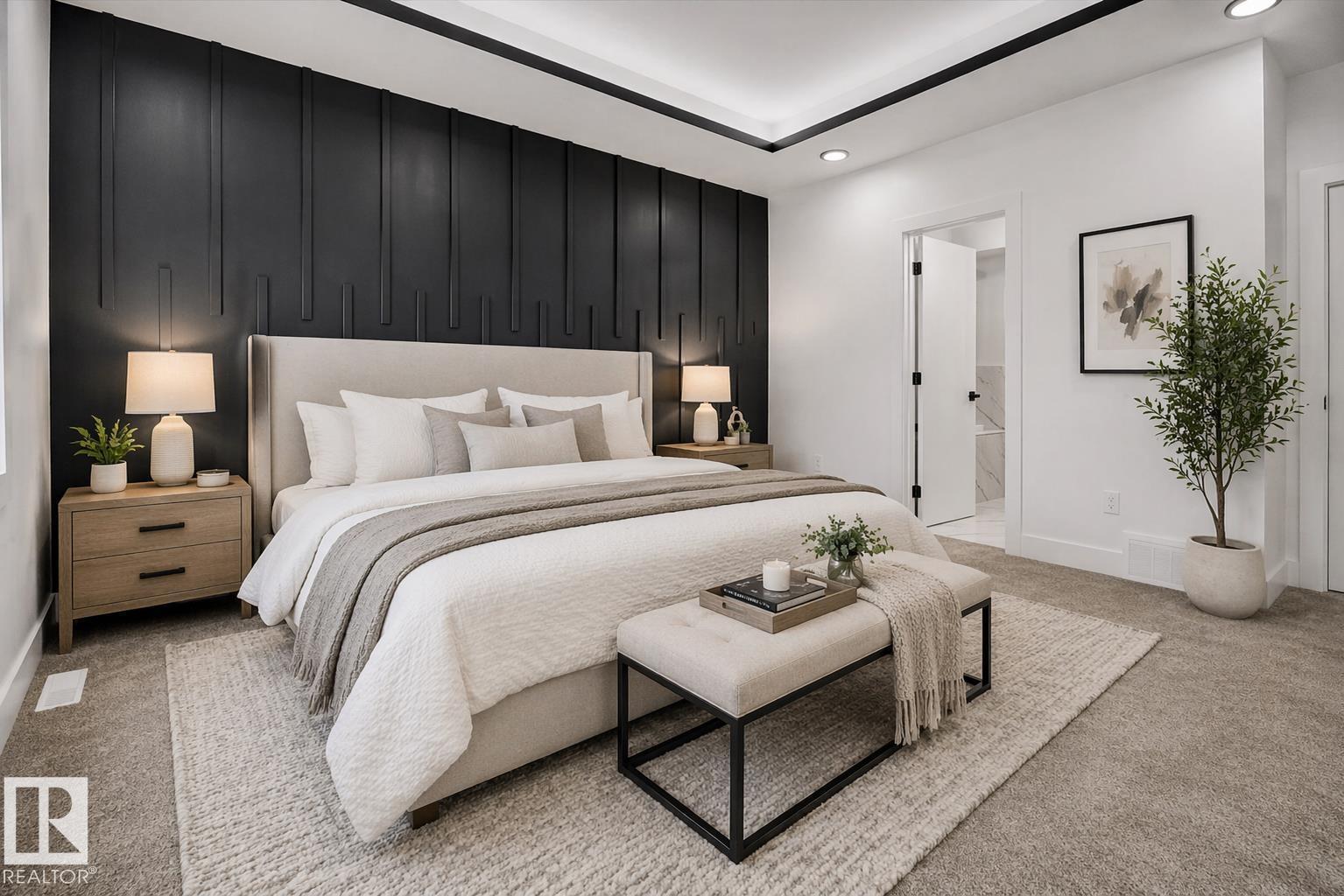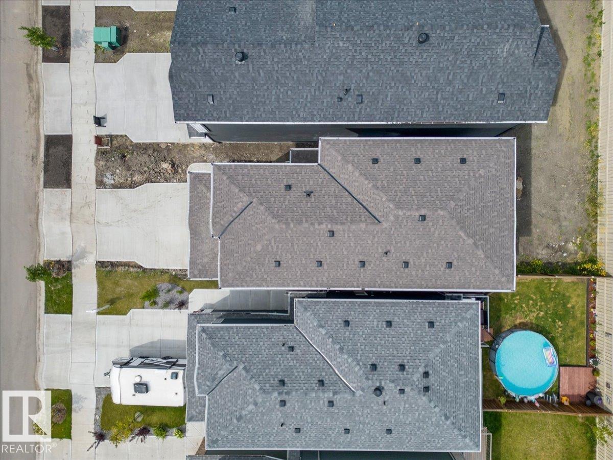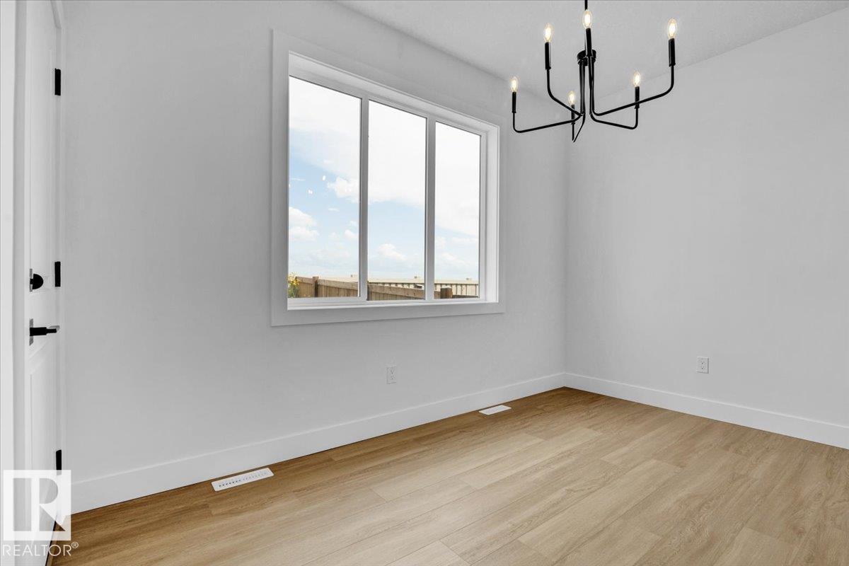 Discover this beautifully crafted home in Erin Ridge, St. Albert, offering over 2,100 sq ft of refined living across two levels and backing onto a future school site, ideal for families and long-term value. A walk-through pantry leads to a chef’s kitchen with ceiling-height two-tone cabinetry, quartz countertops with matching backsplash, gas cooktop, built-in microwave, and wall oven. The open-to-below living room features a dramatic statement wall with a sleek electric fireplace framed by full-height black tile and elegant spindle railings. The main floor includes a versatile den or fourth bedroom and a full bath. Upstairs offers a bonus room, two spacious bedrooms, a laundry room, and a stunning primary suite with space for a California king and a spa-inspired ensuite with soaker tub, shower, and dual sinks. MDF shelving enhances all closets, while a deck extends outdoor living. A side entrance provides legal-suite potential. Close to shopping, theatre, parks, and future school amenities. Welcome home.! (id:63190)