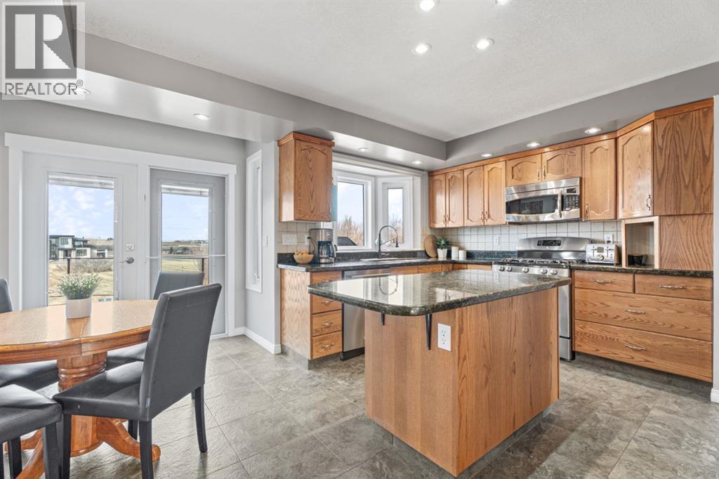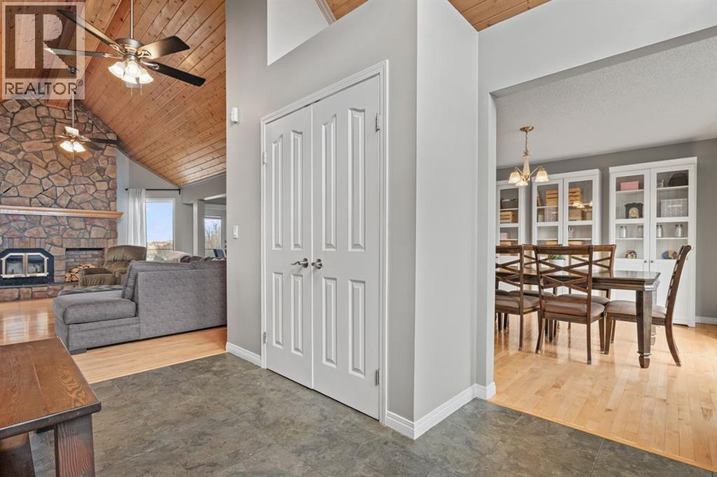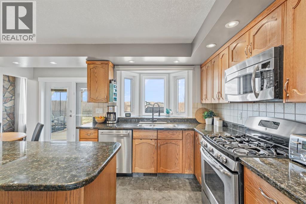 Set on 4.15 acres of private, tree filled land just minutes from Okotoks and Calgary, this fully finished walkout bungalow offers over 3,600 sq.ft. of developed living space and an exceptional blend of comfort, function, and lifestyle. The main floor welcomes you with a bright, vaulted entry and spacious living area anchored by a beautifully updated fireplace. Newer hardwood flows throughout, leading into a kitchen with lots of granite counter space, updated appliances including gas stove, and further through you find a dedicated dining space. Step outside to the expansive west-facing deck and beautiful gazebo, complete with gas hookup, perfect for taking in uninterrupted mountain views. The primary suite features deck access and the ensuite, while two additional bedrooms and a refreshed full bath complete the main level. The fully renovated basement adds incredible versatility, offering a large family room, a fully loaded bedroom wing with ensuite and oversized walk in closet. Also found is an office, additional full bath, nice separate entrance from garage into a large boot room/laundry room and a stylish country kitchen with a beautiful island and lovely pantry. Currently being used by the grandparents but a great space for a variety of uses. Walk out to the patio with a salt water hot tub, creating a seamless indoor-outdoor retreat. Extensive upgrades include newer furnace (2024),air conditioning (2024), hot water tank (5 years), electrical panel (2020), updated plumbing, upgraded cistern pump & controls (2023), entire basement (2020), and more—providing peace of mind and move-in-ready convenience. Car enthusiasts and hobbyists will appreciate the oversized triple attached heated garage which additionally includes a large storage room, a vented cold room and a large boot room with access to the back yard. Then there is the impressive 60’x40’ heated shop featuring concrete floors, a pit, mezzanine storage, separate office, workshop area and an additional stor age room. The property is beautifully landscaped with mature trees and fruit trees/bushes (Saskatoon berry & choke cherry), fire pit area with outdoor prep area (no sink), a greenhouse and large fenced garden, plus a paved circular driveway (resealed 2022) and plenty of room to enjoy the outdoors. A rare opportunity to own a turnkey acreage with space, privacy, and updates throughout in an unbeatable location. Call your favourite realtor for a showing today!! (id:63190)
