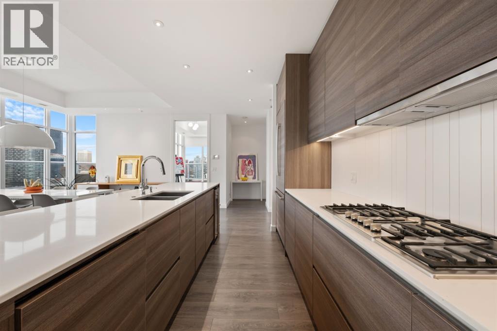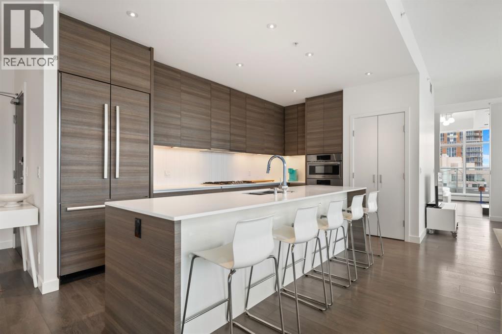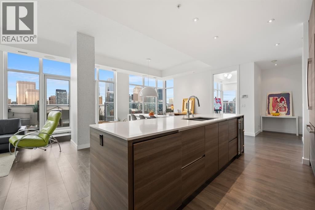The Penthouse @ Smith: Your statement piece in the Beltline steps from dozens of shops + restaurants. Wake up to the skyline. Wind down to the mountains. Nearly 1,600 of interior square footage along with an additional 800 outside on the beautiful terrace. Floor-to-ceiling glass, 10-foot ceilings and light pouring in from every angle. The living and dining areas don’t just sit there - they pull you in, frame the view and make every night feel like an occasion. The kitchen is where function meets presence - sleek, expansive and seamlessly integrated. Wrapped in quartz, complete with a gas range, extensive storage and island seating for five, it’s built for both everyday ease and unforgettable gatherings. This is the kind of space where guests settle in and no one feels in a rush to leave. With three bedrooms, three exposures and two primary retreats, the layout offers a rare level of flexibility without compromise. Whether it’s hosting, creating a dedicated workspace, or simply having the freedom to spread out, this home adapts to your lifestyle rather than asking you to adjust to it. Take pride in knowing that $125,000 has been invested into the property over the last few years. Let's step out to the wraparound terrace. 180 degrees of “how is this even real?” Morning coffee. Sunset wine. Long weekend BBQs. Fire table conversations that make you forget about your iPhone. When the day winds down, your primary suite becomes the escape: Spa-inspired ensuite. Custom dressing room. Automated blackout blinds. Close the world off: Reset + repeat. Experience the exclusivity of a private garage to tuck away your vehicles along with a huge storage room for seasonal items. Step outside and the best of the city is already at your doorstep. No commute. No compromises. Just immediate access to everything that makes inner-city living so desirable - while having a home that feels like paradise above it all. At a certain point, it’s no longer about having more space - it’s about havi ng the right space. Better views. Better design. A better way to live. The Penthouse at Smith represents that shift - the move you’ve been building toward. And when you experience it, one thing becomes clear: this is what “worth it” looks like. (id:63190)