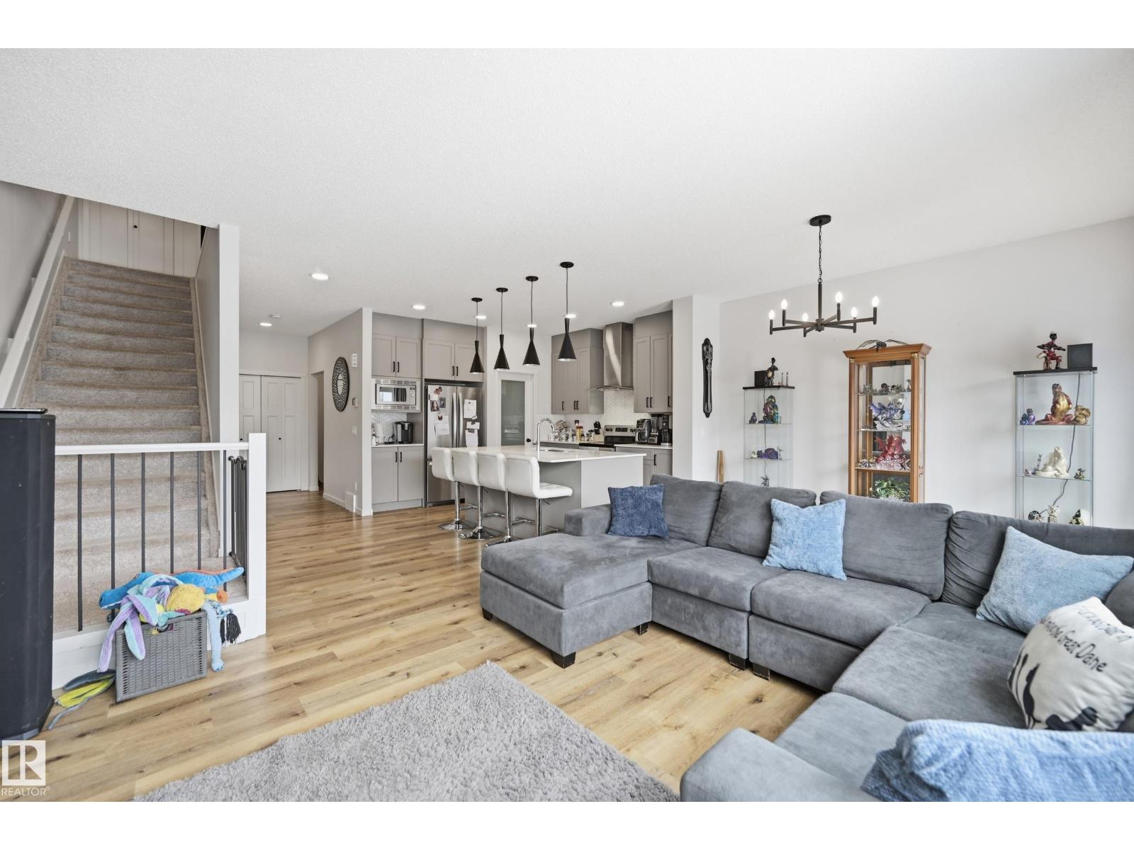 STUNNING OPEN-CONCEPT HOME WITH A MASSIVE KITCHEN ISLAND AND BONUS ROOM UPSTAIRS! Located in Secord, one of West Edmonton’s prime communities, this home offers the perfect blend of comfort and convenience. The main floor features a seamless open-concept layout connecting the kitchen, dining, and living areas, ideal for entertaining and everyday living. The kitchen showcases stainless steel appliances, a walk-in pantry, and a huge island perfect for gathering. Upstairs, enjoy the ease of upper-floor laundry, spacious secondary bedrooms, and a generous primary retreat. A central bonus room adds valuable extra living space. The unfinished basement is ready for your personal touch. Surrounded by schools, parks, and walking trails, this home is ideal for young families. With shopping, groceries, major roadways, and a new recreation centre, library, and school all just minutes or walking distance away, convenience truly meets lifestyle here. Don’t miss out! (id:63190)