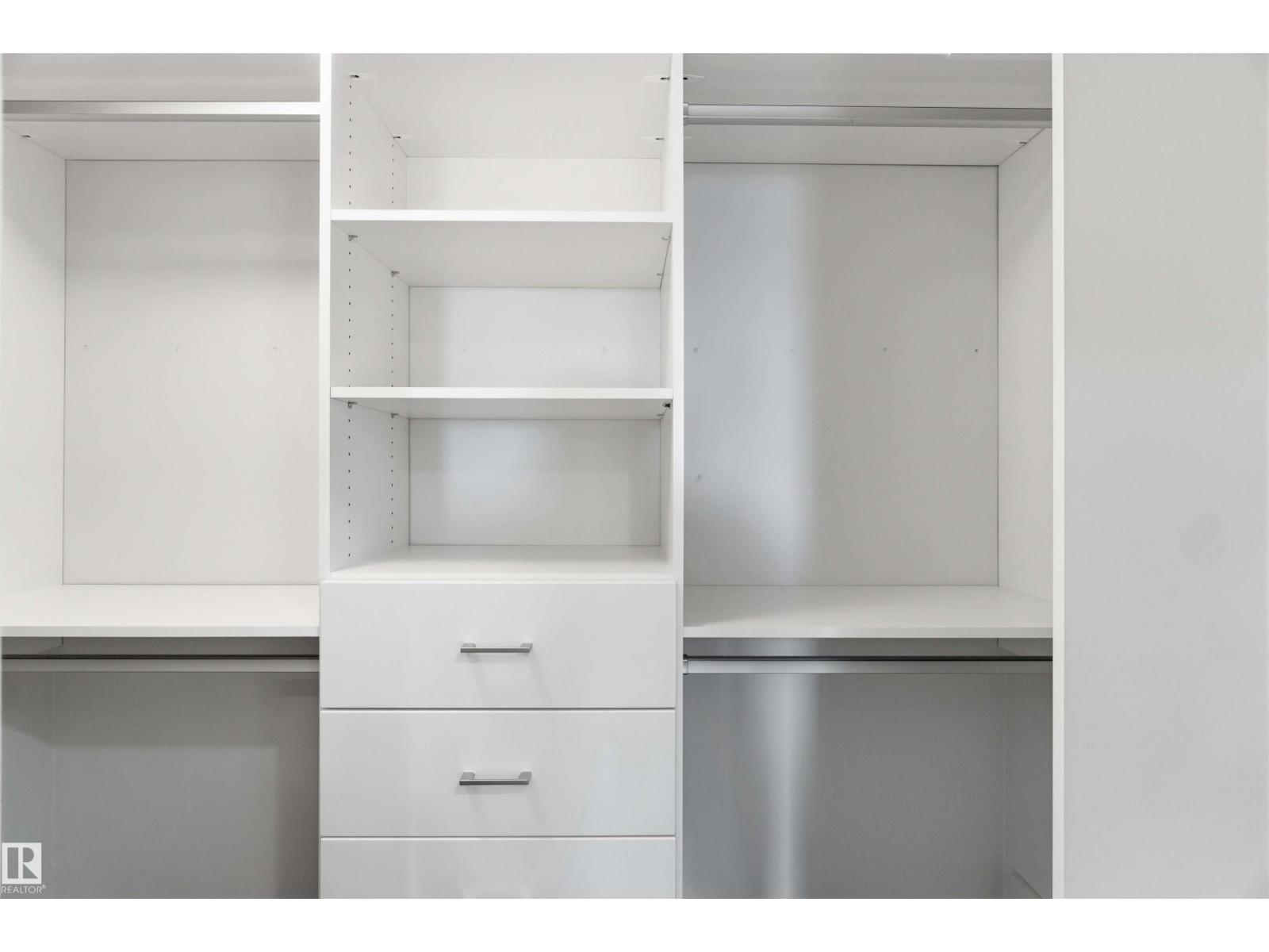 2021Sarasota-built 3-storey townhome just steps from Jensen Lakes Beach in St. Albert. Enjoy lake living in this 3-bedroom, 3.5-bath home w/ single attached garage and functional layout. The ground level offers a versatile bedroom or office with Murphy bed & built-in shelving, a 4-piece bath with heated floors, and direct garage access. The main floor features a bright open-concept living space w/ east-to-west exposure and access to a private deck. The modern kitchen includes quartz countertops w/ seating, SS appliances, neutral contemporary cabinetry, and flows seamlessly into the dining area. A 2-piece powder room completes this level. Upstairs are two primary bedrooms, each with private ensuites. The larger primary includes a walk-in California Closet, w/ laundry conveniently located on this level. Walking distance to shopping, cinema, dining, schools, and scenic trails, with access to Jensen Lakes Beach. Built by Sarasota Homes, offering low-maintenance living in a premier St. Albert lake community. (id:63190)