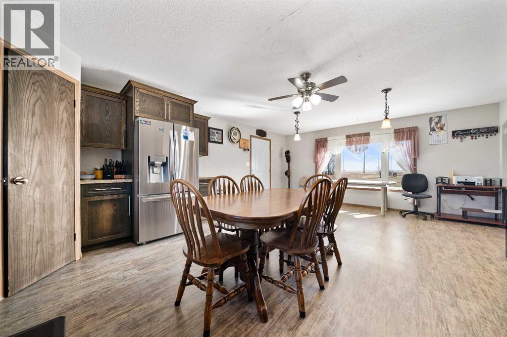 Escape to the peace and potential of country living with this exceptional 35-acre acreage! Ideally located just minutes from Bow Island and Burdett, you’ll appreciate the convenience of town amenities while enjoying the privacy of rural living—with very little gravel travel required. A natural shallow coulee winds through the property, adding character to the landscape while providing excellent grazing opportunities. With ample open space and scenic prairie views, this acreage is well-suited for livestock, hobby farming, or those simply craving room to roam. The property is serviced by a well, offering a reliable water source for your needs. The bungalow-style residence offers an impressive 1,889 sq ft of living space, featuring 6 bedrooms and 3 bathrooms—ideal for large families or those needing extra room for guests or a home office. The spacious kitchen and dining area provide plenty of room for gatherings, while the bright living room is highlighted by large windows that flood the space with natural light, creating the perfect setting for family time. Main floor laundry adds to the home’s everyday convenience, along with a single attached garage. The basement is partially finished, offering a great opportunity to complete the space to your own style and needs. An addition completed in 2015 enhances the home’s functionality, and you’ll have peace of mind knowing the roof, furnace, and hot water tank were all updated in 2015. The property also includes a 40' x 60' shop with a concrete floor, perfect for equipment storage, projects, or operating a home-based business. With its combination of usable land, thoughtful updates, and a fantastic location, this acreage offers incredible value and potential. Call your REALTOR® to view today! (id:63190)