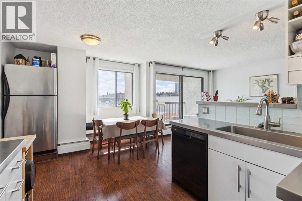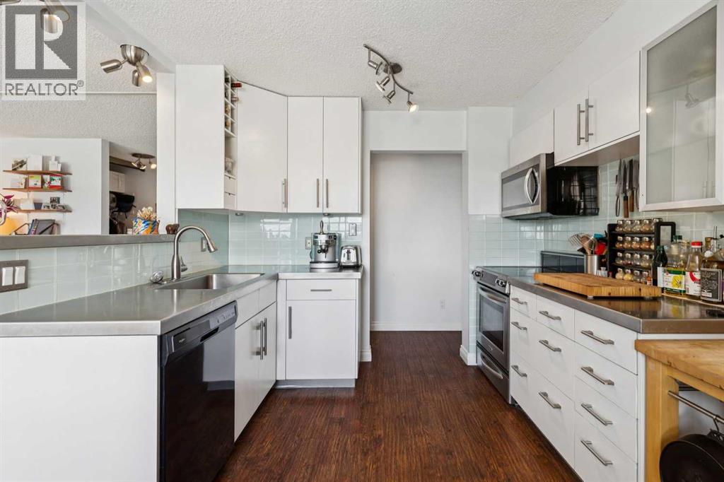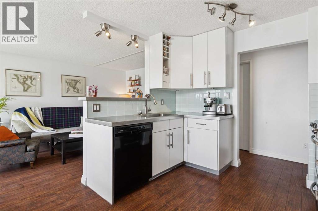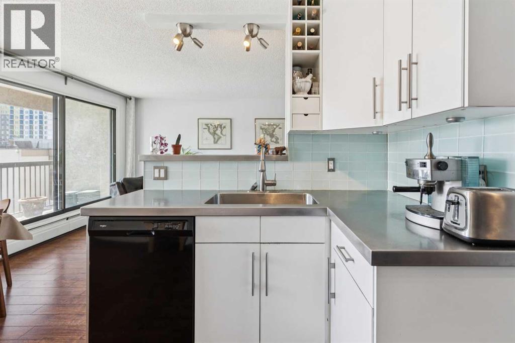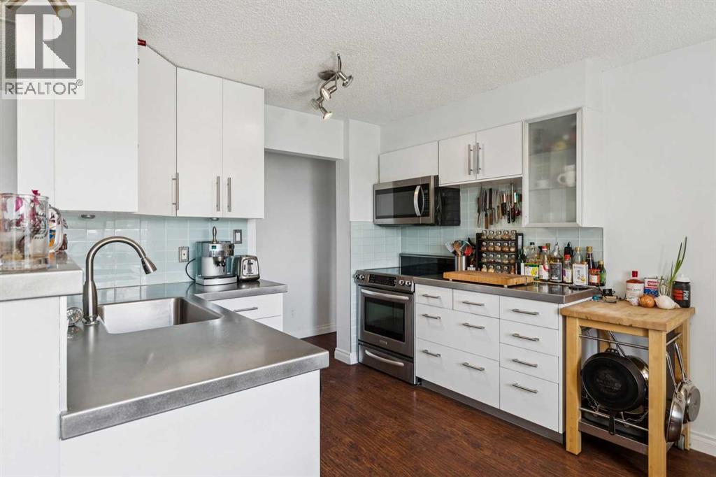Perfectly positioned just steps from vibrant 17th Ave and a short walk to downtown, this bright & spacious 800+ sq ft TOP FLOOR end unit offers the ideal blend of sq ft, layout,, & inner-city lifestyle. Thoughtfully designed, the open concept floor plan features updated flooring throughout the main living areas & generously sized bedrooms. The kitchen has been opened up & flows seamlessly into the dining space & living area & is equipped with ample cabinetry, tile backsplash, metal counter-tops with integrated sink, & SS appliances. Both bedrooms are spacious, & enjoy large closets & beautiful views. The well-appointed 4pc bathroom includes built-in shelving & storage for added functionality. Additional highlights include in-suite laundry (Euro-style combo unit), dedicated storage, a secure parking stall, & a separate storage locker. This well maintained concrete building enjoys an unbeatable location & puts you right in the heart of the best of inner city YYC, with trendy restaurants, cafes, boutique shopping, & nightlife along 17th Ave all just a half block away. Whether you're a young professional, investor, or someone seeking an energetic urban lifestyle, this is a great opportunity. (id:63190)