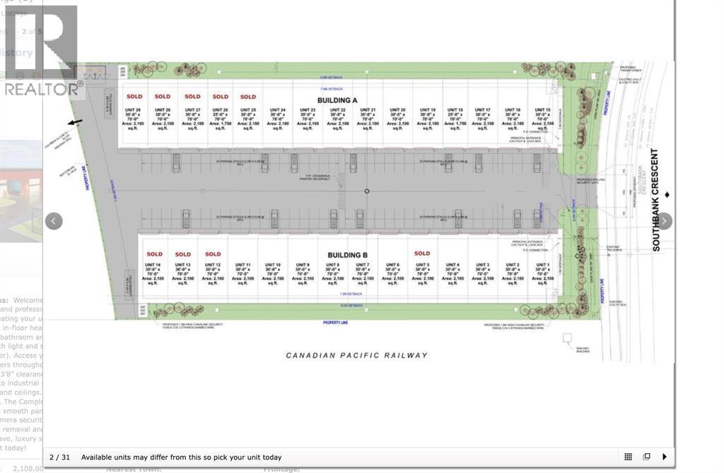 Welcome to THE GROTTO, Okotoks’ most exciting new storage and business complex, designed for enthusiasts, entrepreneurs, and professionals who demand more than just space. Whether you’re storing your prized vehicles, running a contained business, or creating your ultimate personal retreat, The Grotto delivers unmatched quality, comfort, and convenience.Standard Features: Each unit offers in-floor heat powered by a tankless combi boiler for endless hot water, a 100-amp panel (upgradeable), and plumbing rough-ins for a bathroom and shop sink. Enjoy oversized insulated overhead doors (18’ wide x 14’ tall) with motorized openers and privacy windows for both light and security. Inside, find modern LED lighting, a variable-speed ceiling fan, floor drain, and metered utilities (gas, water, and power). Access your bay through a 3’ insulated walk-in door featuring WiFi, Bluetooth, and keypad entry. Safety is top priority with fire sprinklers throughout.Mezzanine-Expand your space with mezzanines up to 840 sq. ft., offering 10 ft ceilings, large opening windows, and 13’8” clearance underneath, perfect for RVs or lift systems. Ideal for a golf simulator, office, or lounge area, it’s your space, elevated.Built to industrial standards with 6” reinforced concrete floors (rated for semi-truck weight), steel and IMP construction, and R40 insulated walls and ceilings. Each bay includes future-use wall vents (for HRV or A/C), large windows for natural light, and concrete aprons for easy access.The Complex offers a brand-new gated development features 29 premium bays ranging from 1,750 to 2,100 sq. ft., all with 24 ft white smooth panel ceilings and 24/7 secured access via remote entry app and FOBs. The site includes a large paved, fenced courtyard, 6-camera security system, LED exterior lighting, and professionally landscaped low-maintenance grounds. High-speed internet available. Snow removal and landscaping included. With completion Summer 2026, this gives you time whether you ’re creating the ultimate man cave, luxury storage bay, or secure business shop, The Grotto is where passion meets performance.Limited availability, let's secure your unit today! (id:63190)