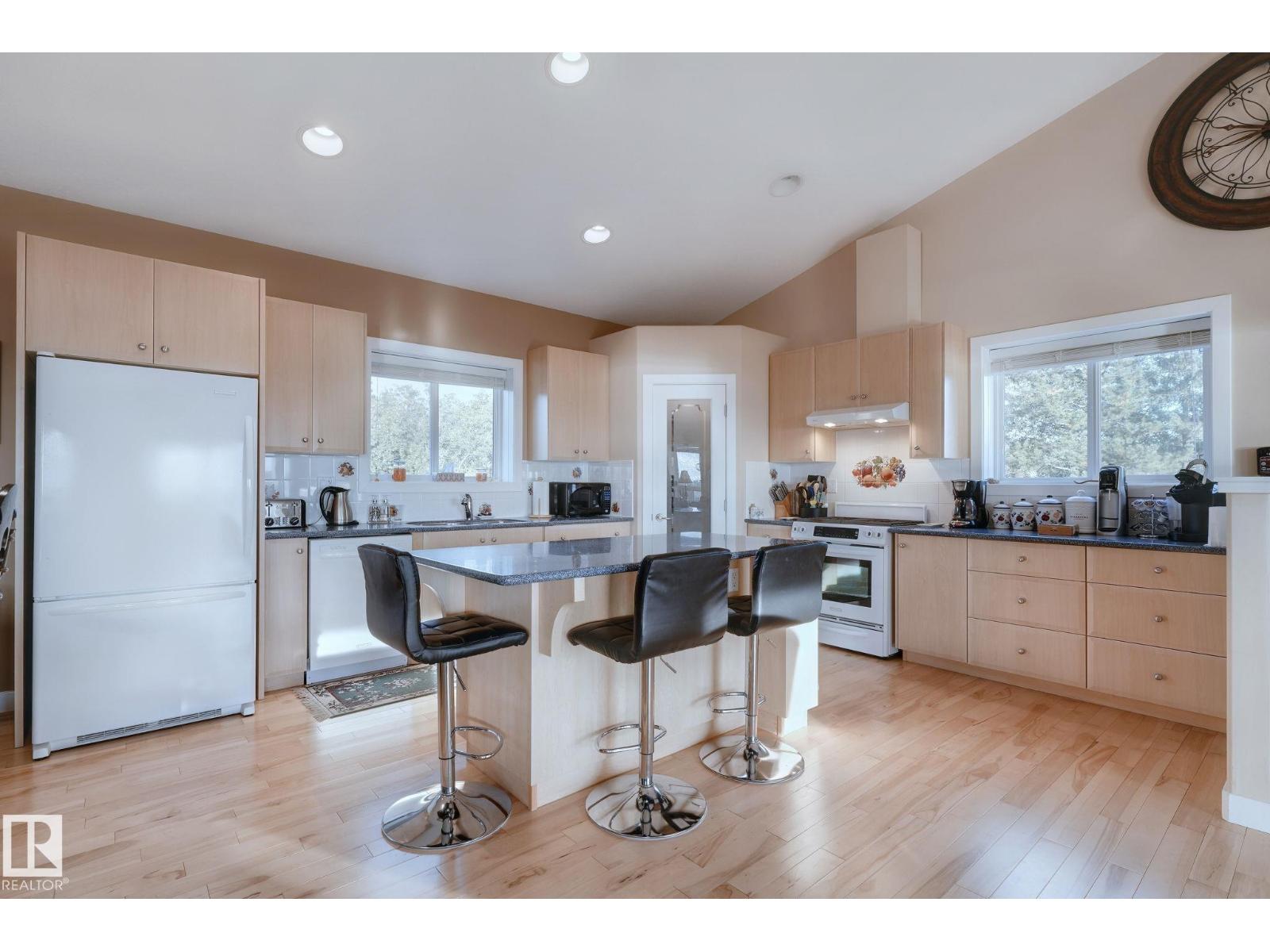 WAKE UP TO YEAR-ROUND LAKE VIEWS! This 1500 SqFt. SOLAR POWERED walkout bungalow is perched on top of a hill, steps from Mons Lake! Walk in, and you’re welcomed by vaulted ceilings, hardwood floors, and stunning lake views, paired with a bright open-concept living, dining, and kitchen area. Built for entertaining, the kitchen features granite countertops, a GAS STOVE, a corner pantry, and a large island. The main floor also features a spacious primary bedroom, 3pc. bath, laundry room, and deck with gas BBQ hook-up; enjoy your morning coffee with a view! Down the stairs, you’ll find a large family room, 3 additional bedrooms, and a 2nd full bath. Step outside to find the fully spray foam insulated triple-car garage with 10’ doors, 30 Amp service for your RV, and a gas line ready for future heat. This home is quality built with 10’ ICF walls in the basement and 8’ ICF on the main. You also won’t have to worry about your power bill; the 42/18kw solar panels eliminate your bills with potential for a return! (id:63190)