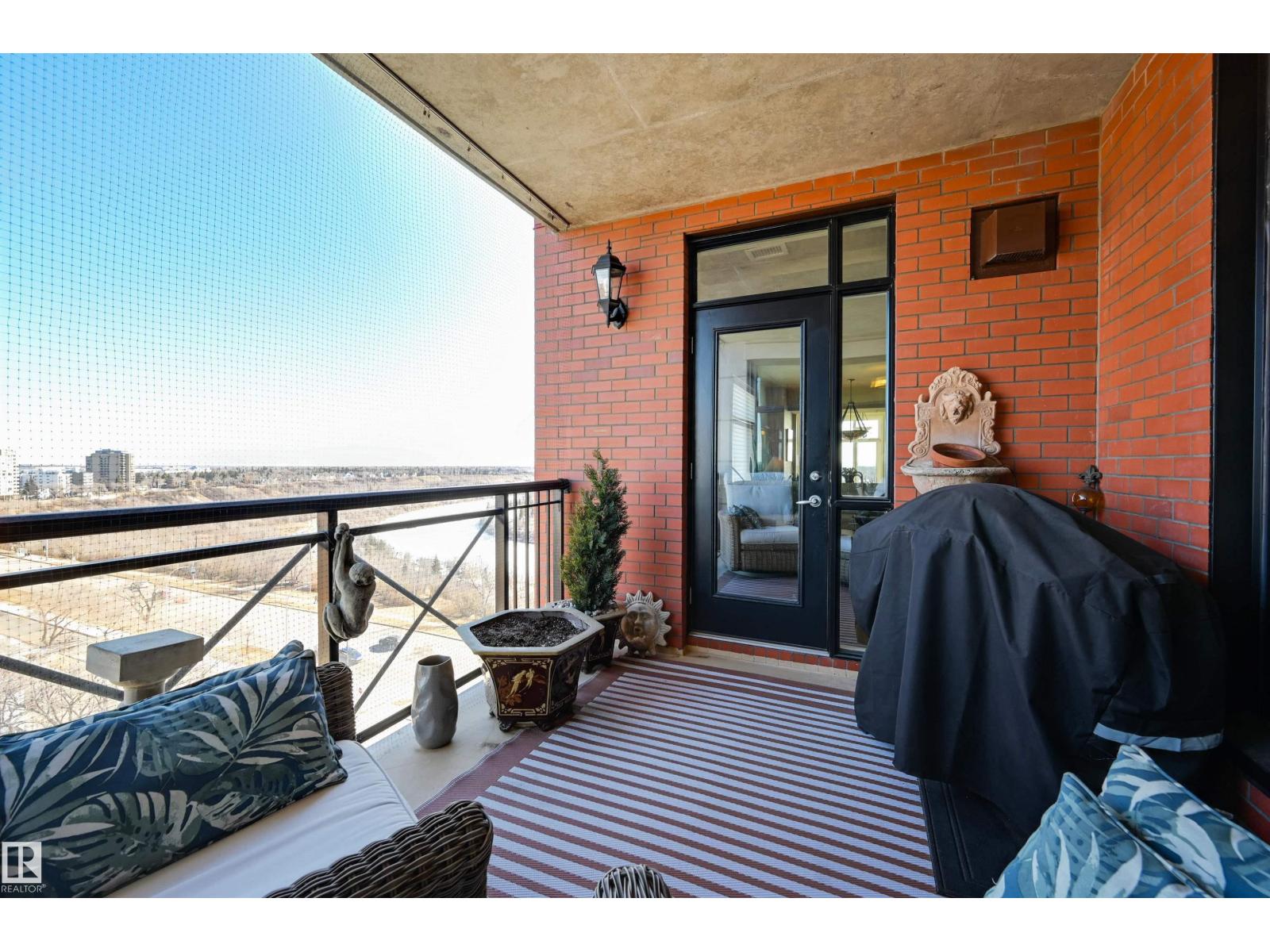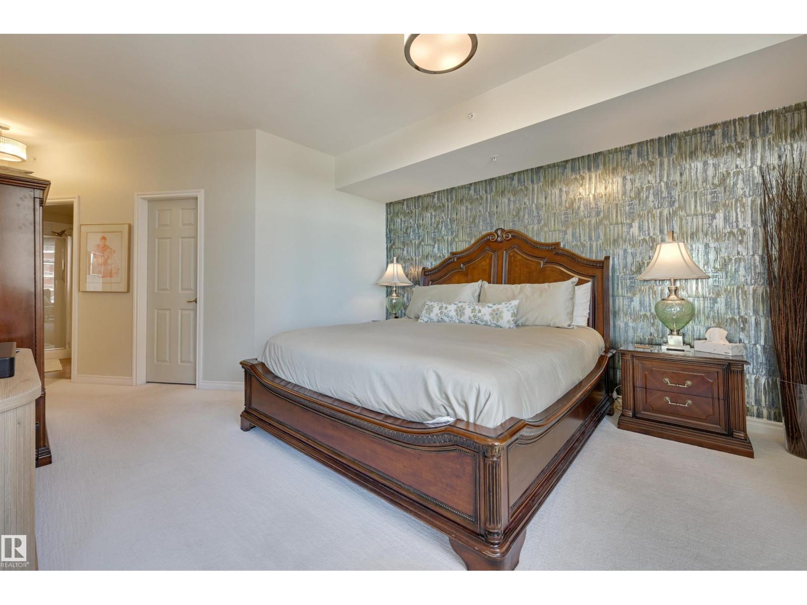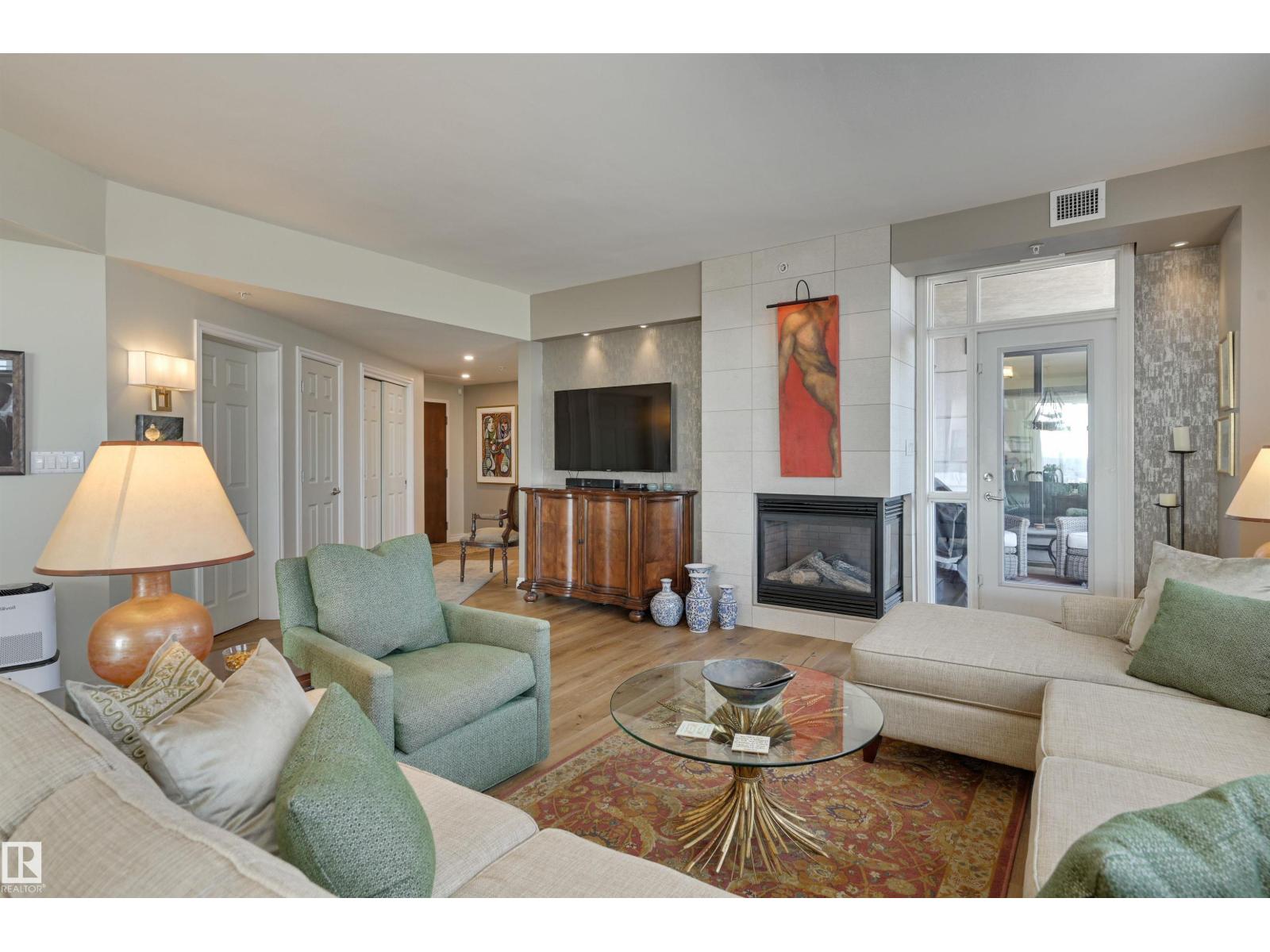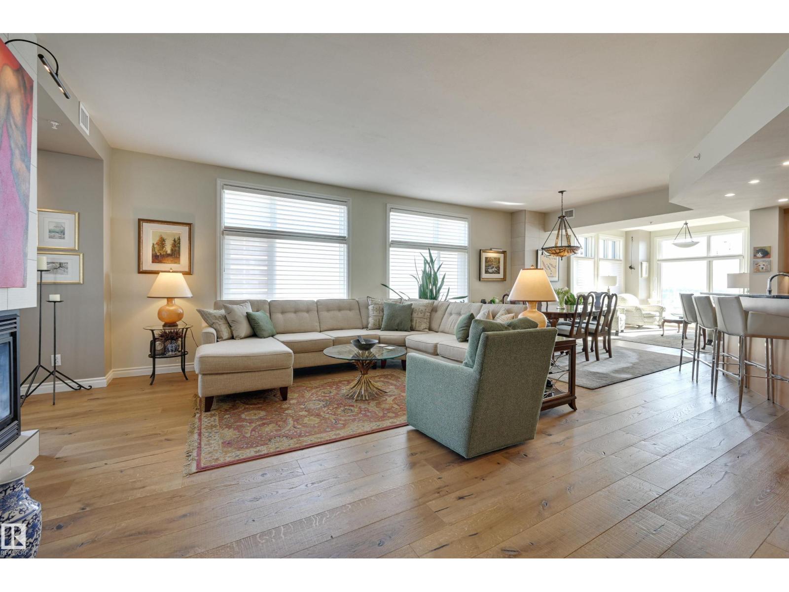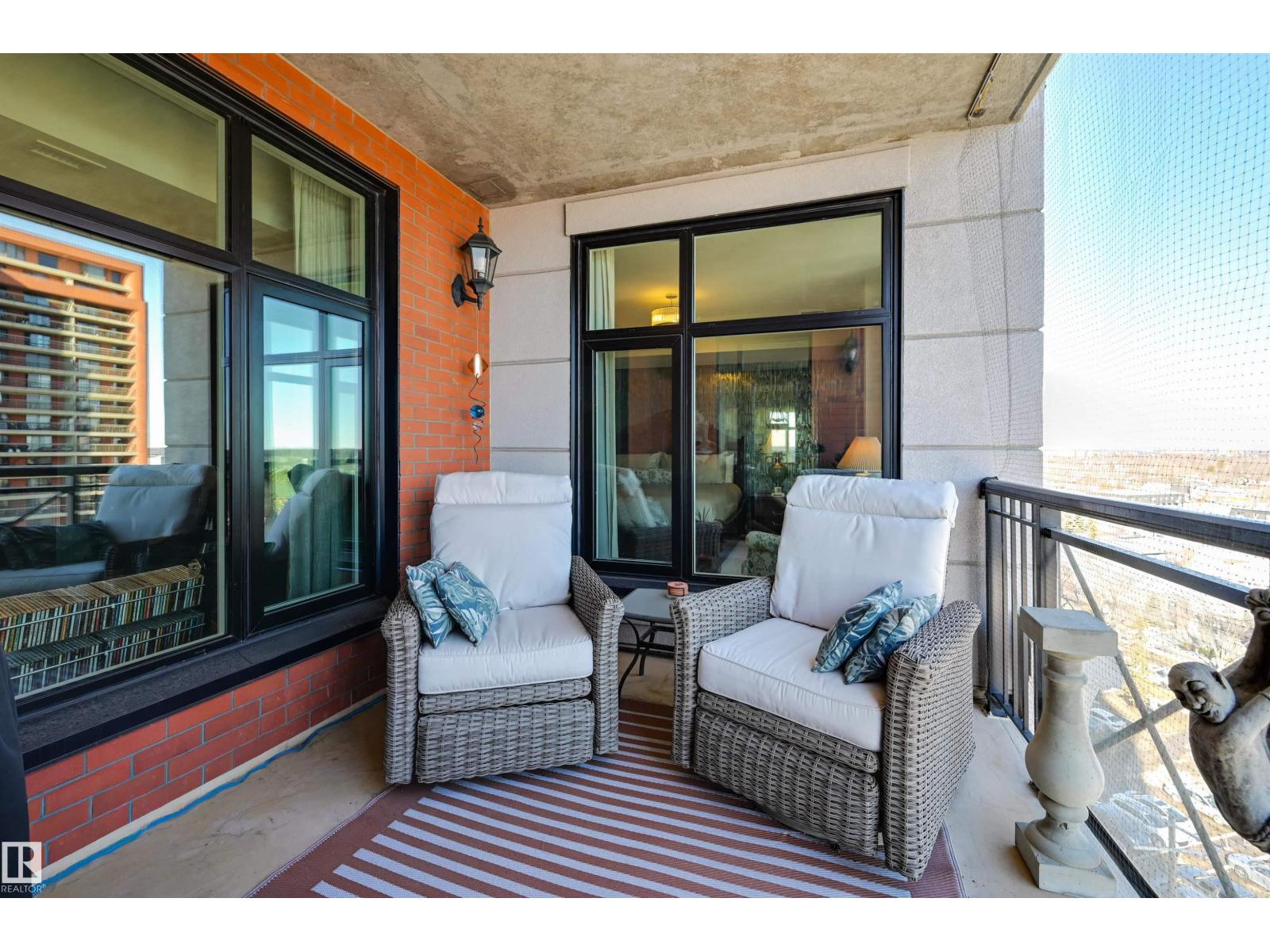 SPECTACULAR RIVER VALLEY VIEW from this UPGRADED 1520 sq.ft. 2 bedroom 2 bathroom condo in a SECURE GATED COMMUNITY conveniently located on Jasper Ave with the bus at your door, the river valley trails & quick access to the Ice District & U of A. Features OPEN FLOOR PLAN with 9' ceilings & floor to ceiling windows, scraped ceilings, distressed white oak hardwood flooring, luxurious carpeting in the primary bedroom & tile in the bathrooms, kitchen & laundry room. Chef's kitchen with ample cabinetry, granite countertops, pantry, raised eating bar, S/S appliances, subway tile backsplash & recessed lighting. Murphy bed in the 2nd bedroom. The primary suite has a walk-in closet & 4 piece ensuite. Heat pump & humidifier (2019). A/C, 2 U/G PARKING. Condo fees INCLUDE ALL UTILITIES! EXTENSIVE UPGRADES IN THE BUILDING: triple pane windows (2024), roof (2019), cooling tower (2023), exterior membrane (2025/2026), security upgrades, landscaping (2026). On-site manager, exercise room. Pet friendly. GORGEOUS! (id:63190)