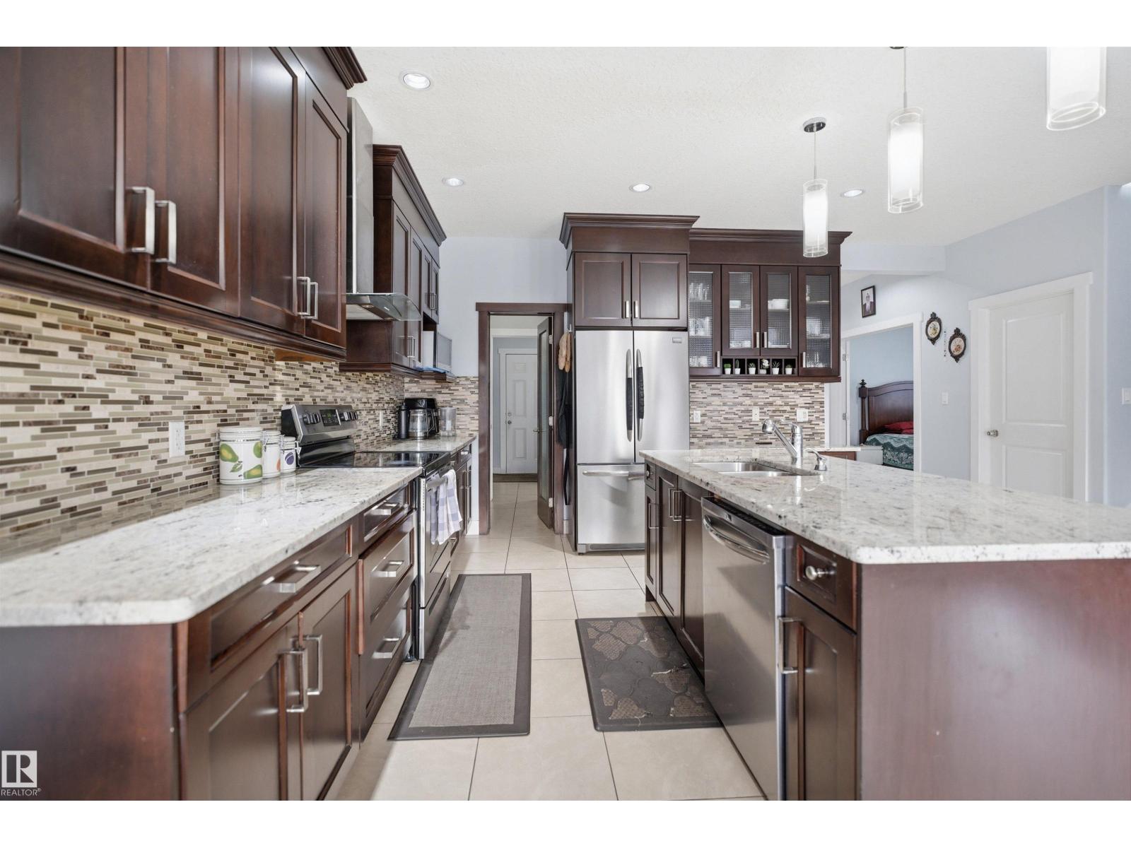 Discover this beautifully crafted two-storey home in the sought-after community of Beaumont, offering over 2,600 sq. ft. of stylish and functional living space. Featuring 5 bedrooms, 2.5 bathrooms, an oversized heated double attached garage, and a separate side entrance, this home is designed for modern family living. The bright open-concept main floor showcases a spacious living area, a chef-inspired kitchen with stainless steel appliances, large island, and walk-in pantry, along with a dining area that opens to a generous deck and a bedroom on the main floor. Upstairs offers a bonus room, a luxurious primary suite with ensuite, three additional bedrooms, a full bath, and convenient upper-level laundry. Additional highlights includes the installed security cameras and new smart bulbs for enhanced comfort and peace of mind. Ideally located close to schools, parks, and all amenities, this home is a perfect blend of comfort, style, and convenience. (id:63190)