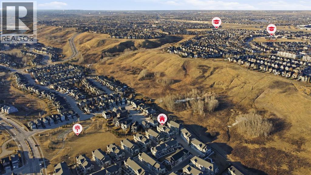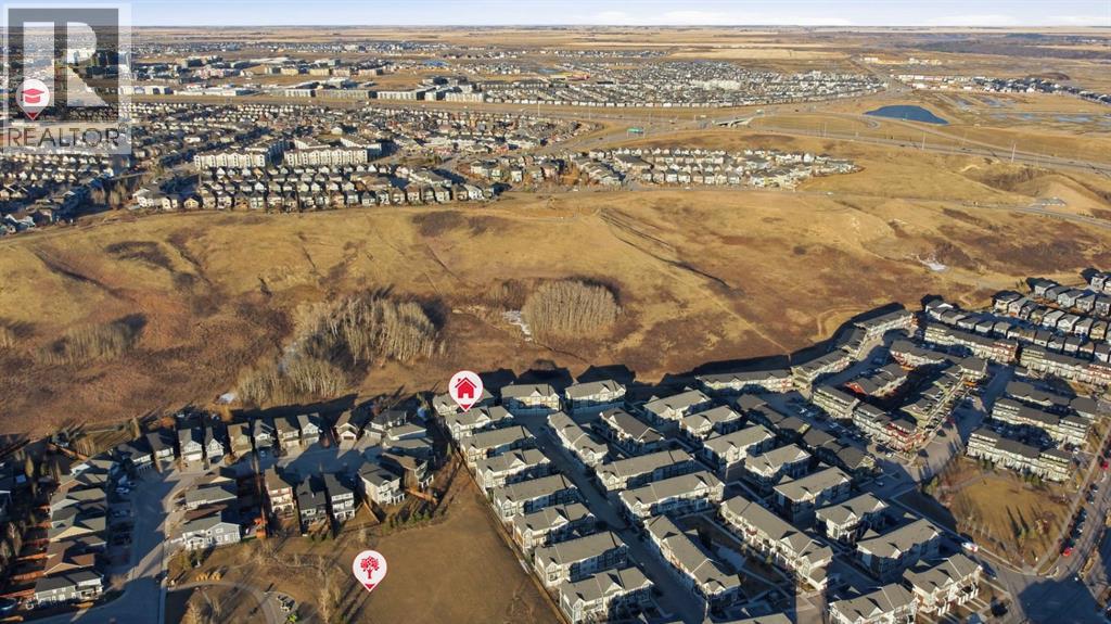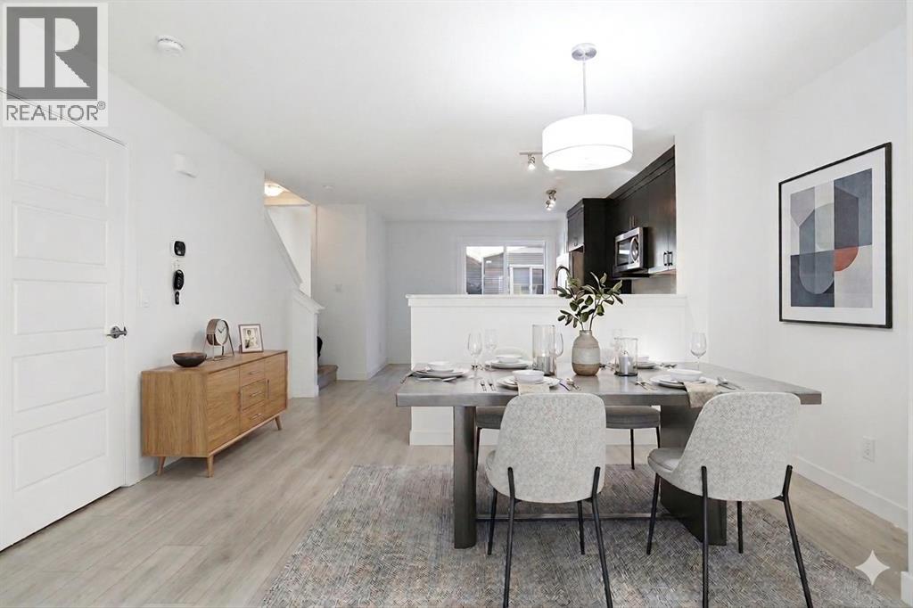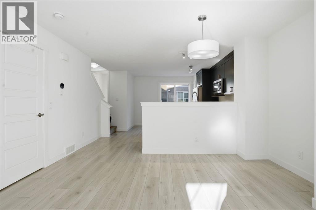 Welcome to Riverstone in Cranston, where nature, community, and style come together beautifully. This two storey, three-bedroom, 2.5-bathroom townhouse offers the perfect blend of modern living and an unbeatable location close to the Bow River. Step inside to a bright, west-facing open-concept main floor, where the living room flows effortlessly into the dining area and a stunning kitchen featuring rich deep forest cabinetry, sleek finishes, stainless steel appliances, a pantry, storage and plenty of space to gather and entertain. Just off the kitchen, step out onto your private balcony, perfect for your morning coffee or evening unwind. A convenient two-piece bathroom completes the main level. Upstairs, you’ll find three well-appointed bedrooms, including a spacious primary retreat complete with a walk-in closet, along with a full bathroom for added convenience. Enjoy your own front gated yard, complete with a convenient BBQ gas line on the patio, ideal for effortless outdoor entertaining. Additional features include air conditioning and a double attached garage for year-round comfort and practicality. But what truly sets this home apart is the lifestyle. Located in Cranston’s sought-after Riverstone, you’re steps from the Bow River, scenic pathways, and natural green space. Through the HOA, residents enjoy access to the Century Hall clubhouse, featuring a gymnasium, splash park, and year-round community events, your summer plans, handled. This is more than a home; it’s a lifestyle you’ll love coming home to. (id:63190)