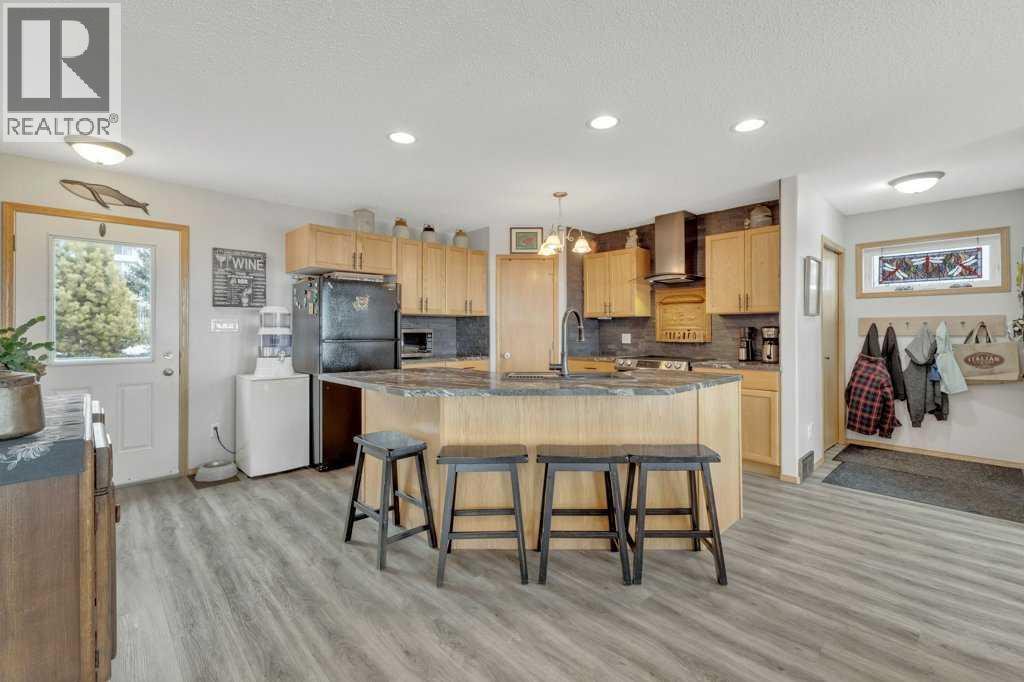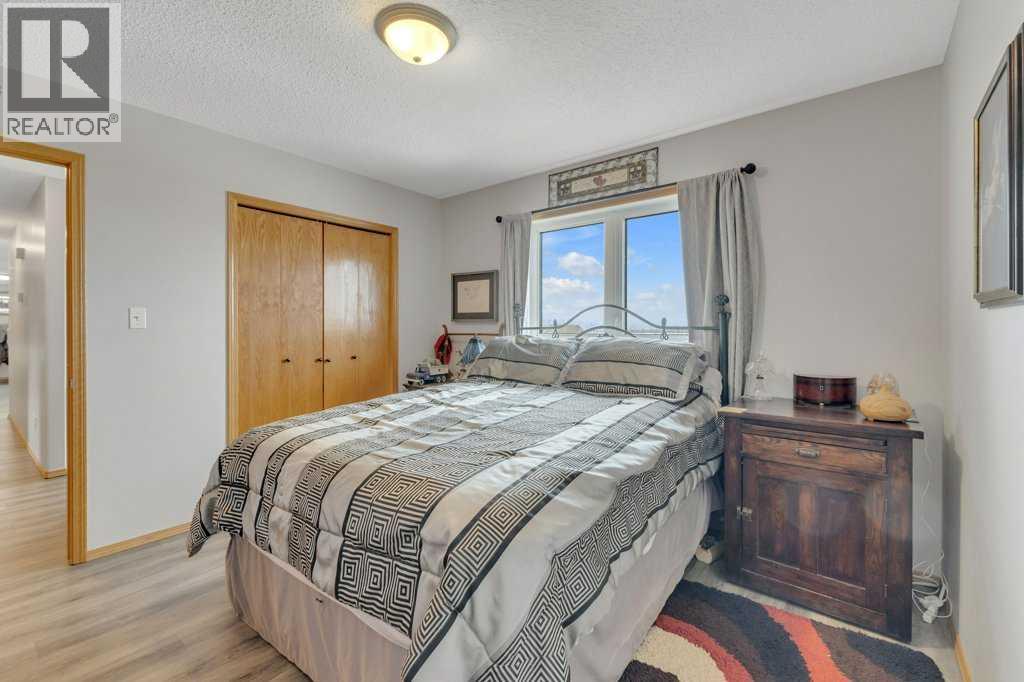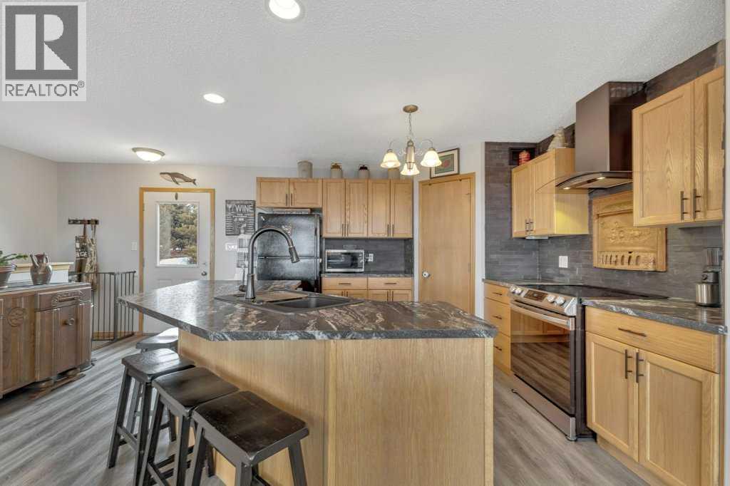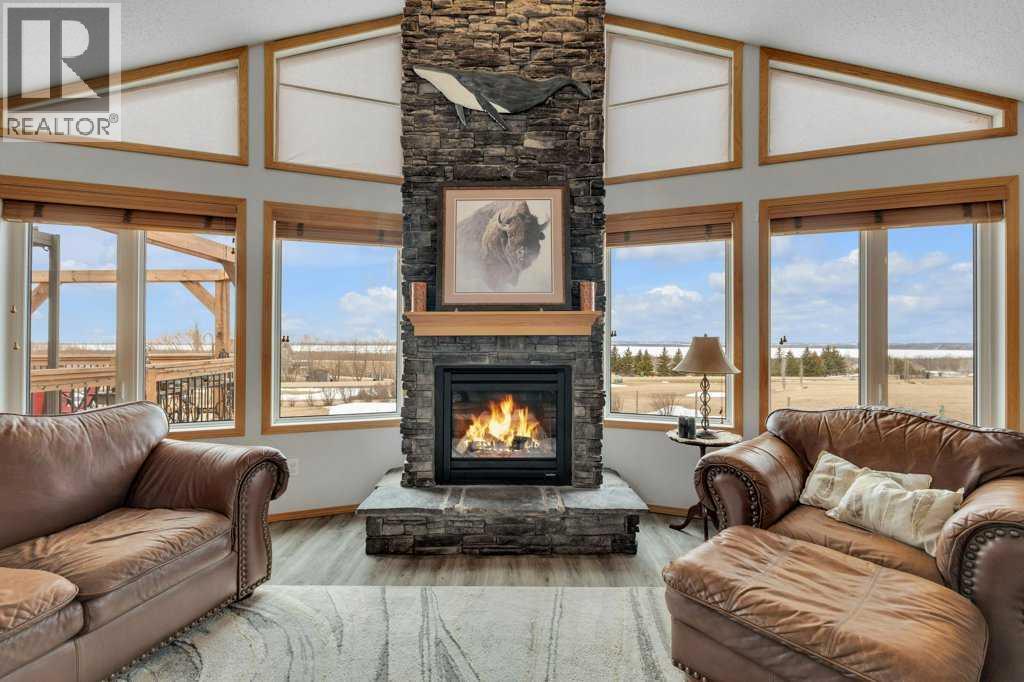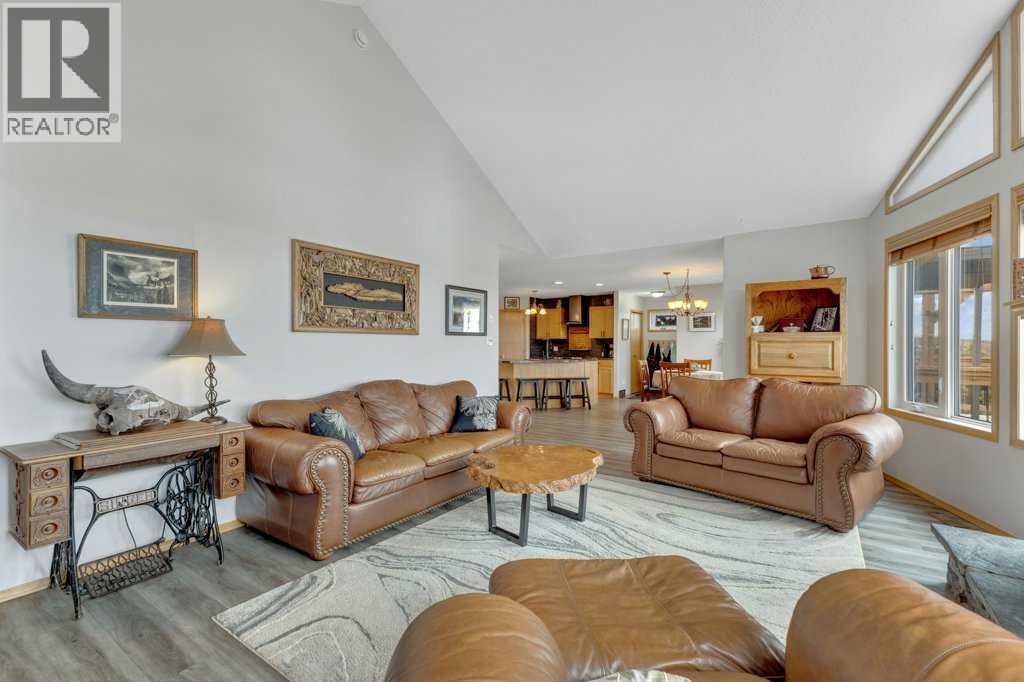 Overlooking Gull Lake, enjoy breathtaking lake views, stunning sunsets, and even a glimpse of the mountains on a clear day. This beautiful 1300 sq ft home features 4 bedrooms and 3 bathrooms, with an open-concept kitchen and dining area complete with a large island and walk-in pantry. The living room showcases a vaulted ceiling and a striking stone fireplace, perfectly framing the floor-to-ceiling windows that capture the lake view. The fully finished basement offers a spacious family room, an oversized bedroom with ensuite, a cold room, and a massive storage area with potential to be converted into an additional bedroom or living space. Upgrades include 4 front room windows with 25 yr warranty, flooring, paint, countertops throughout kitchen and bathrooms. septic pump (2 yrs), dishwasher & stove.The property has been thoughtfully and meticulously landscaped with a massive deck off the front of the home, lilacs lining the perimeter fence, and birch and poplar trees providing added shelter and privacy. You’ll also find apple and cherry trees, along with a beautifully designed garden area with 6 ft fence, featuring raised asparagus and strawberry beds, gooseberries, saskatoons, and plenty of room for vegetables. Garden area includes a garden shed/chicken coop, along with underground water lines servicing the garden and trees. Double car garage with added green house is conveniently situated close to the garden. This home must been seen to be appreciated. Most of the photos are summer pictures to capture the real essence of this property. This property offers your own personal retreat!. Don't wait to view this one! (id:63190)