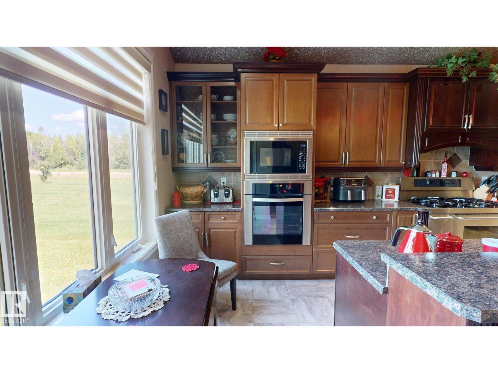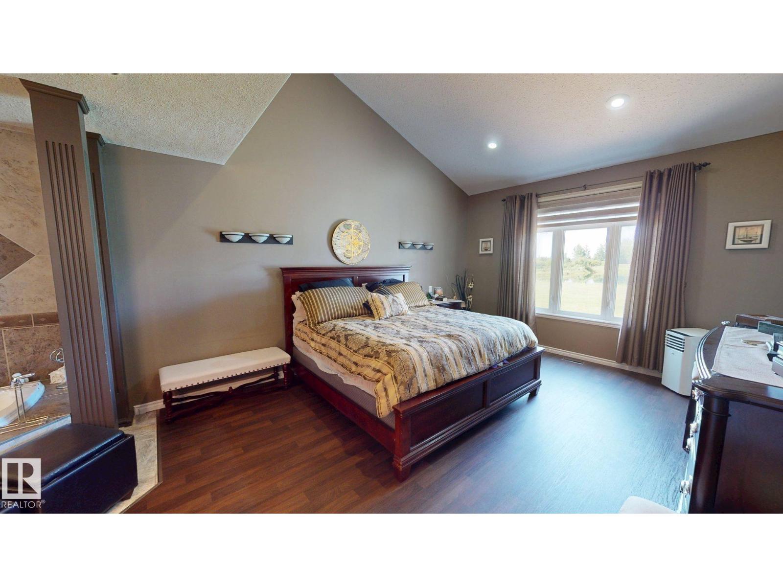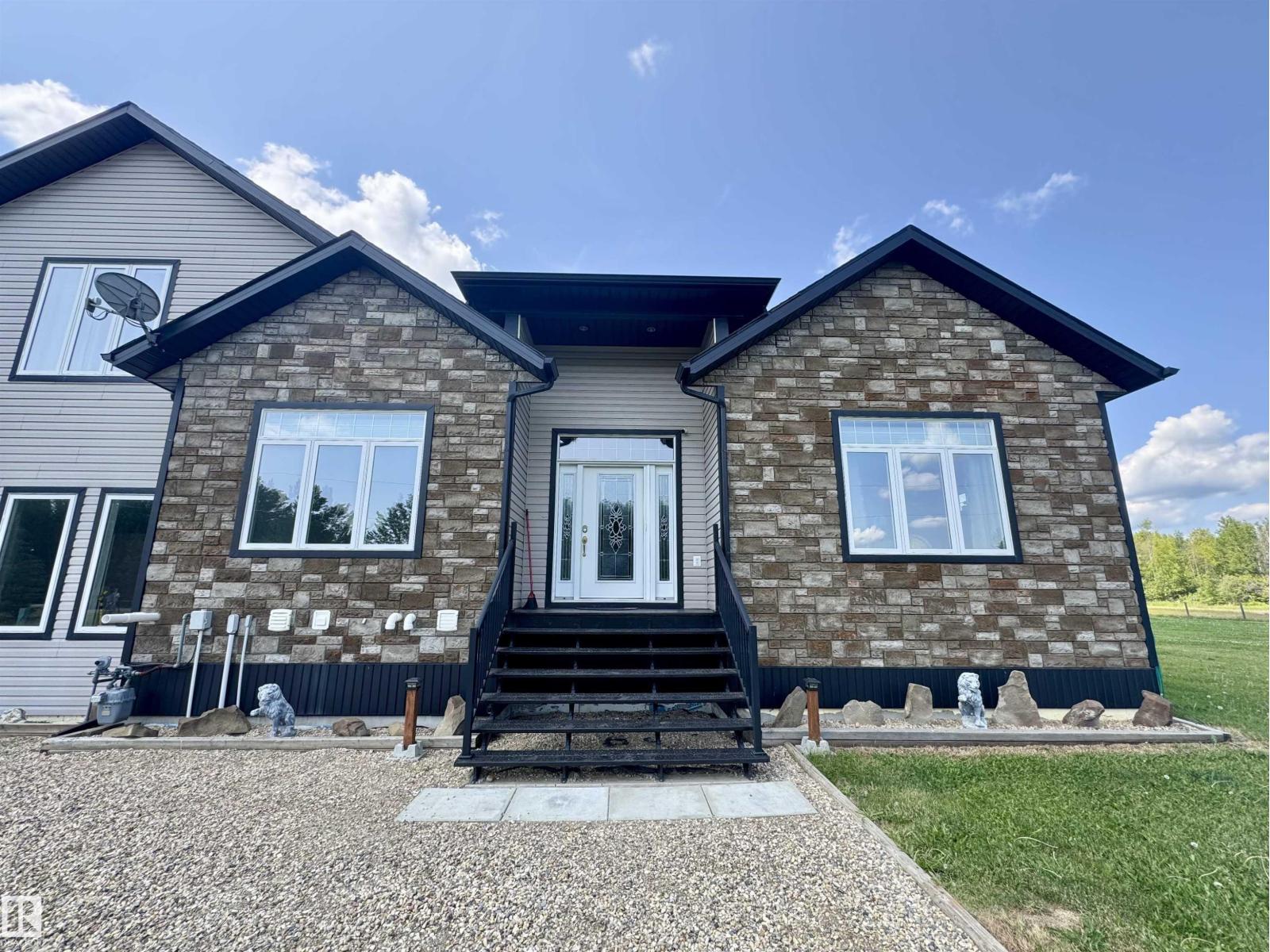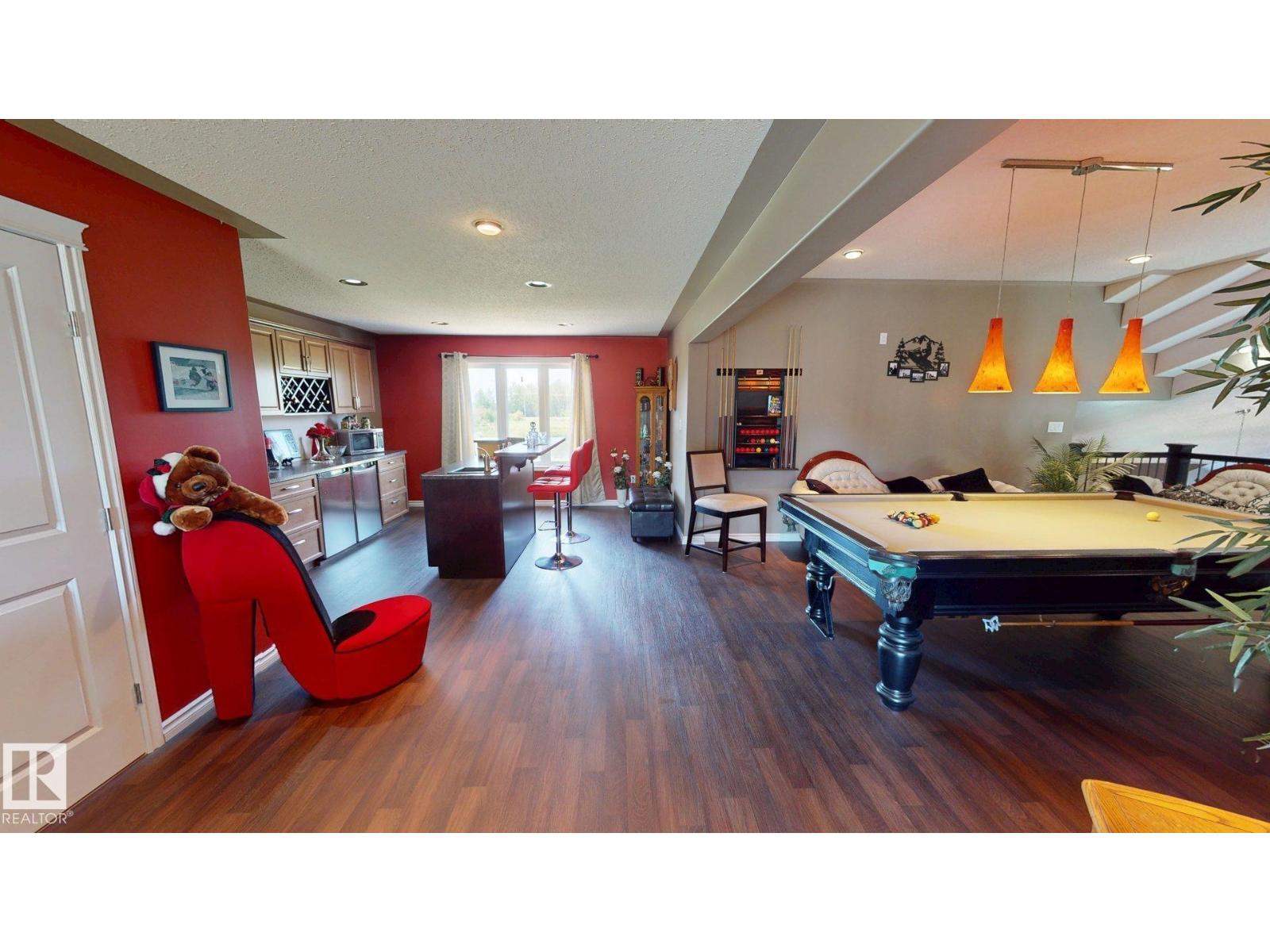 Experience refined country living on this breathtaking 4.7-acre estate, just minutes from Drayton Valley. Anchored by a stunning custom pond, this elegant 1.5-storey home blends timeless design with modern comfort. The main level showcases a beautifully appointed chef’s kitchen, formal dining space, inviting sitting room, private office, and a luxurious primary retreat complete with spa-inspired ensuite and in-closet laundry. Upstairs, an open-concept lounge with wet bar creates the perfect setting for upscale entertaining. A fully self-contained guest suite with private entrance, kitchen, ensuite, and laundry offers exceptional flexibility for extended family or income potential. Enjoy serene views from the sunroom and expansive deck, surrounded by manicured grounds. Complete with a triple attached garage and ample space for all your lifestyle needs, this is acreage living at its finest. (id:63190)