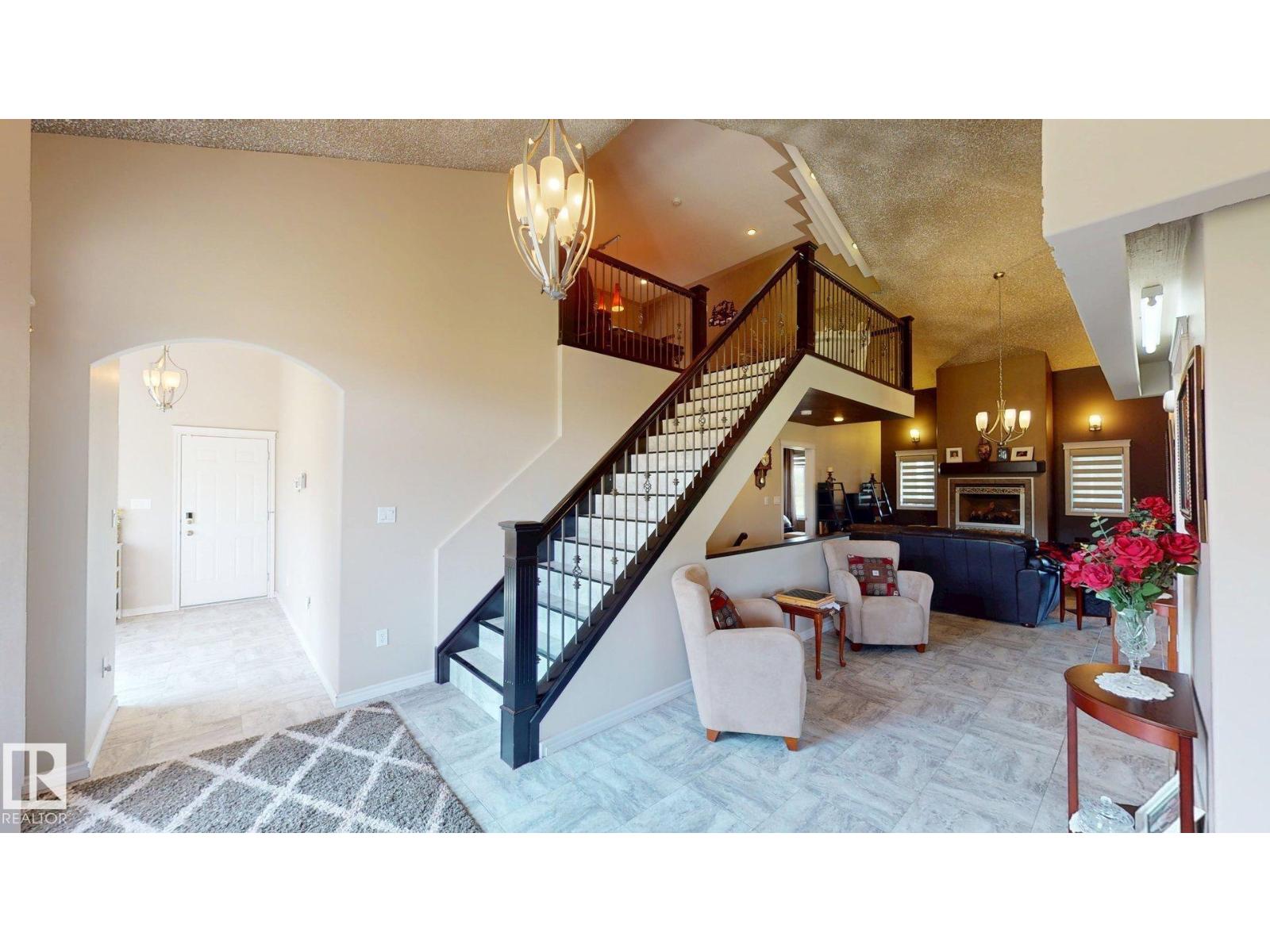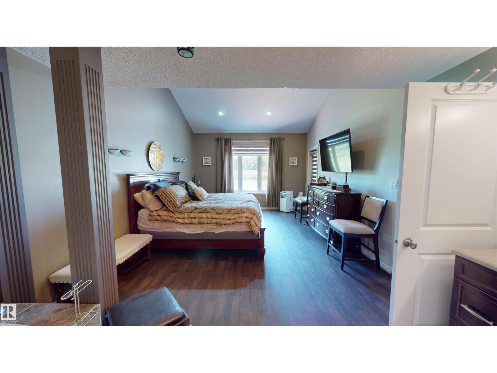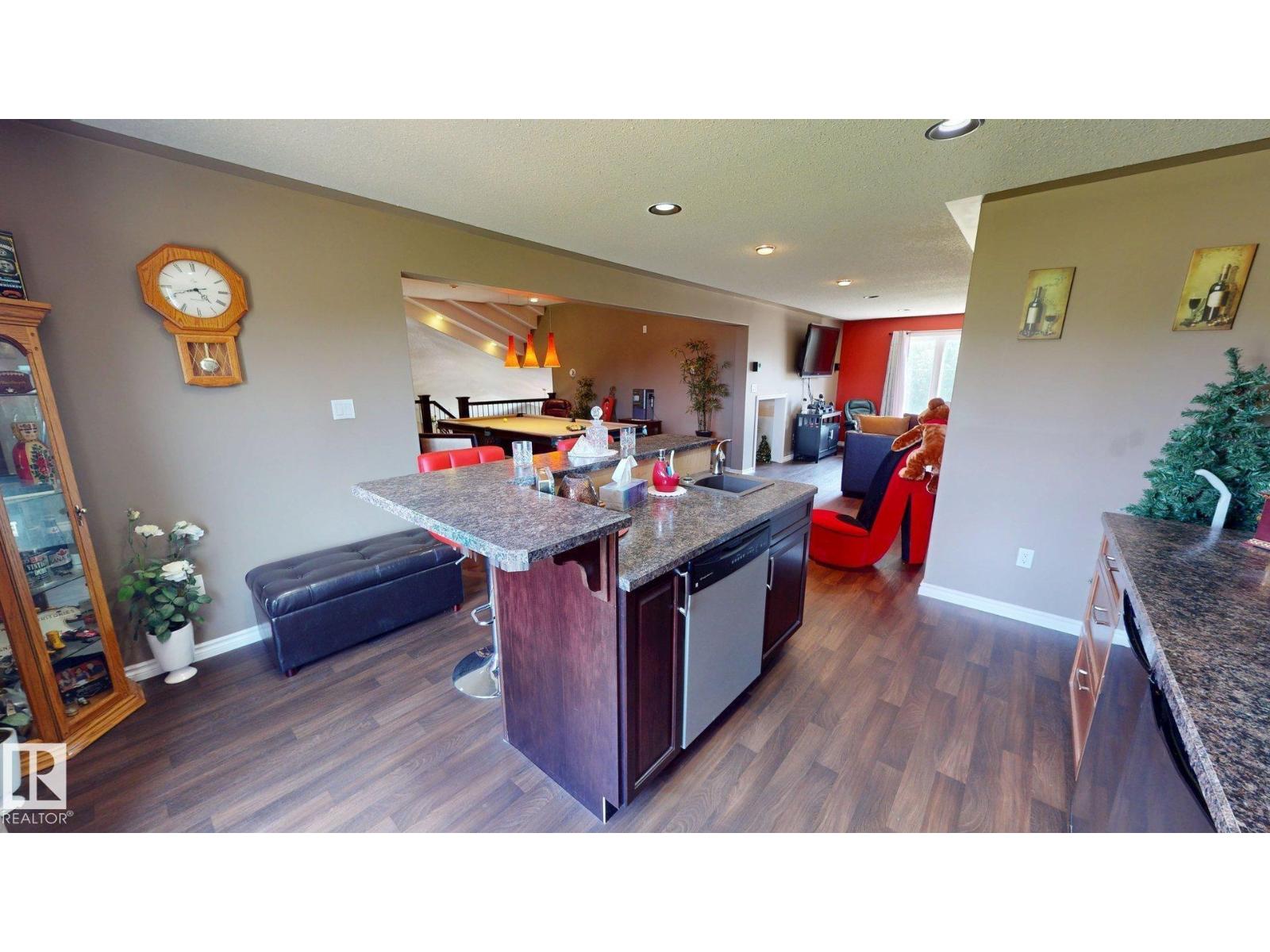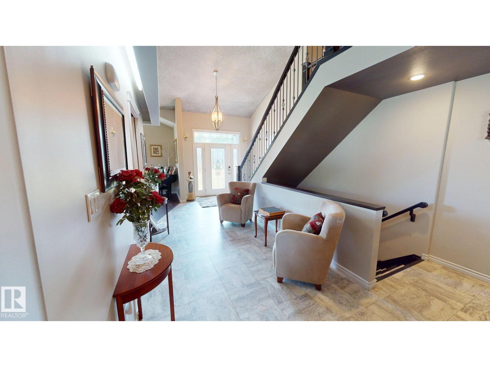 Experience refined country living on this breathtaking 4.7-acre estate, just minutes from Drayton Valley. Anchored by a stunning custom pond, this elegant 1.5-storey home blends timeless design with modern comfort. The main level showcases a beautifully appointed chef’s kitchen, formal dining space, inviting sitting room, private office, and a luxurious primary retreat complete with spa-inspired ensuite and in-closet laundry. Upstairs, an open-concept lounge with wet bar creates the perfect setting for upscale entertaining. A fully self-contained guest suite with private entrance, kitchen, ensuite, and laundry offers exceptional flexibility for extended family or income potential. Enjoy serene views from the sunroom and expansive deck, surrounded by manicured grounds. Complete with a triple attached garage and ample space for all your lifestyle needs, this is acreage living at its finest. (id:63190)