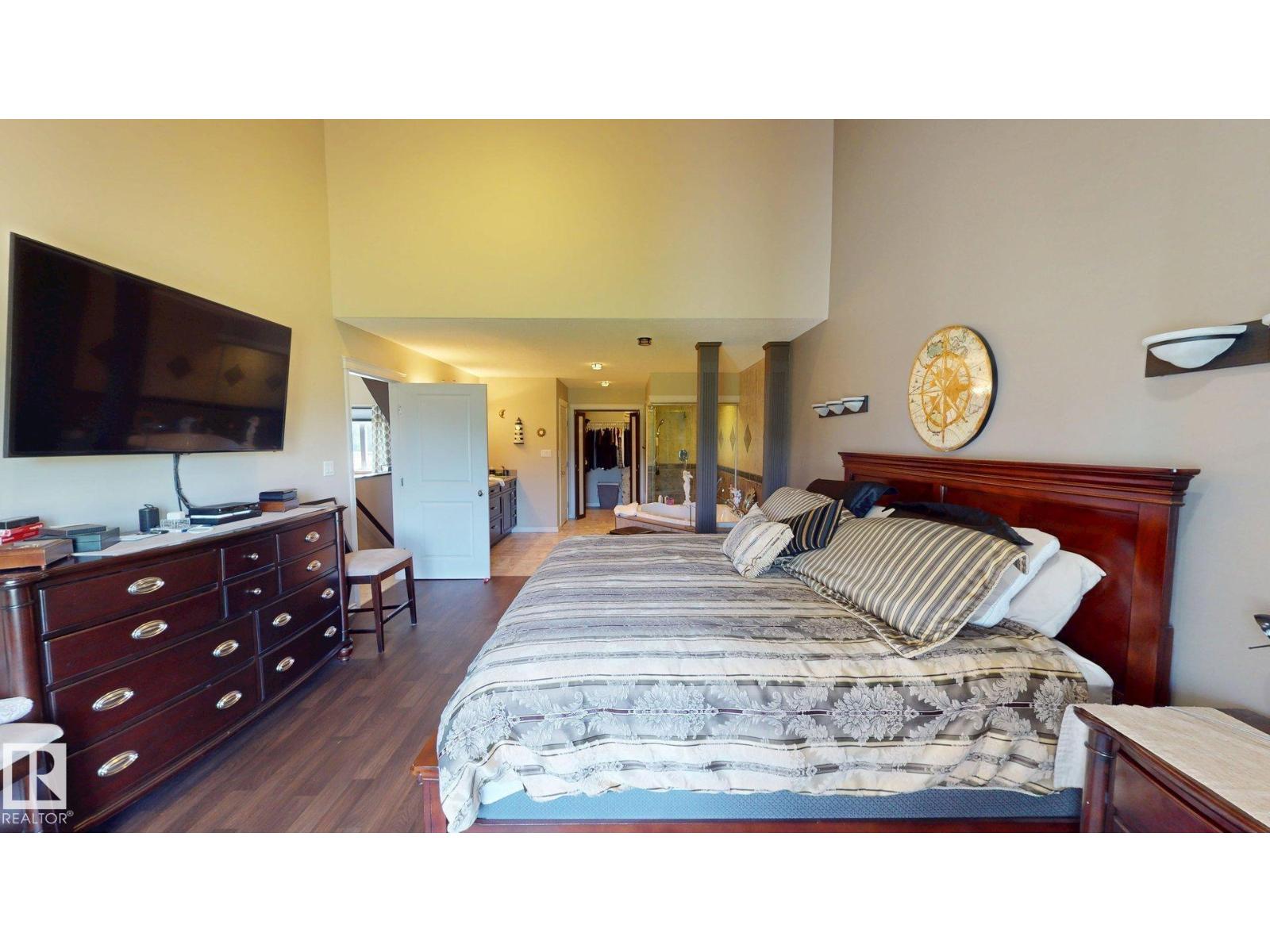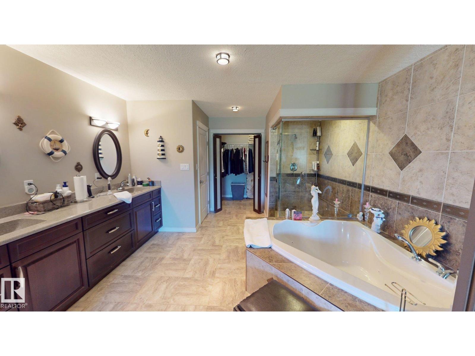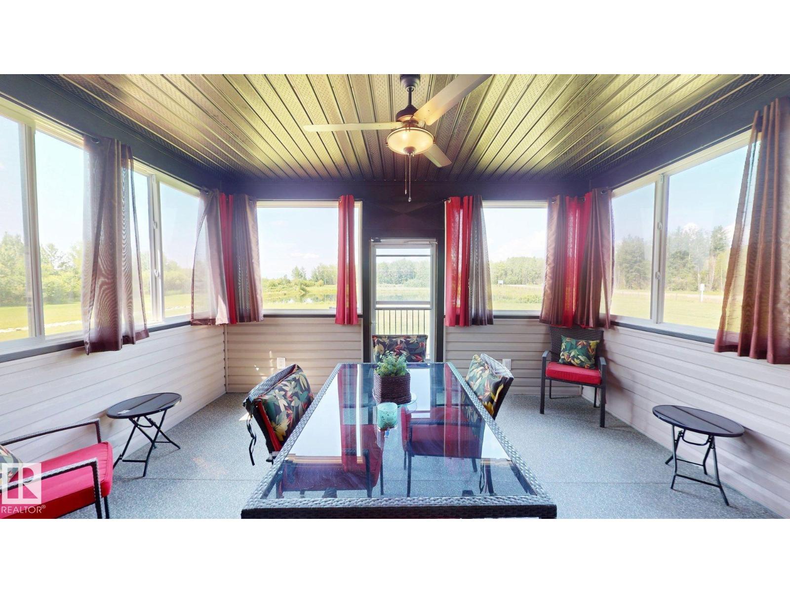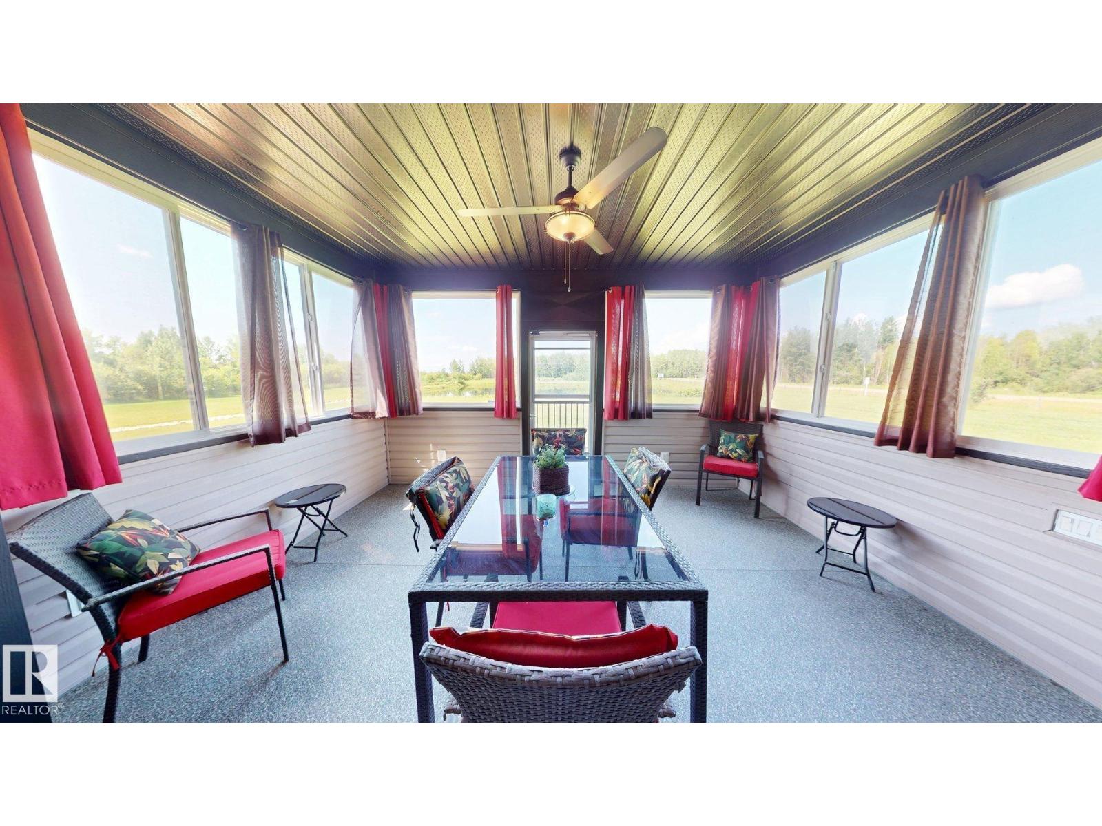 Experience refined country living on this breathtaking 4.7-acre estate, just minutes from Drayton Valley. Anchored by a stunning custom pond, this elegant 1.5-storey home blends timeless design with modern comfort. The main level showcases a beautifully appointed chef’s kitchen, formal dining space, inviting sitting room, private office, and a luxurious primary retreat complete with spa-inspired ensuite and in-closet laundry. Upstairs, an open-concept lounge with wet bar creates the perfect setting for upscale entertaining. A fully self-contained guest suite with private entrance, kitchen, ensuite, and laundry offers exceptional flexibility for extended family or income potential. Enjoy serene views from the sunroom and expansive deck, surrounded by manicured grounds. Complete with a triple attached garage and ample space for all your lifestyle needs, this is acreage living at its finest. (id:63190)