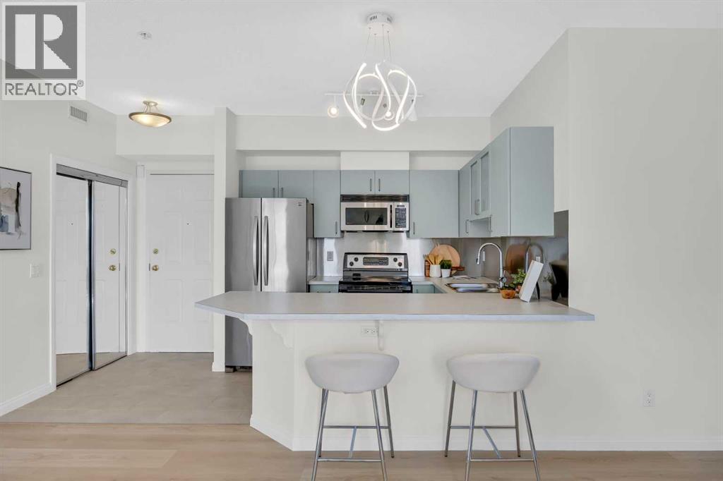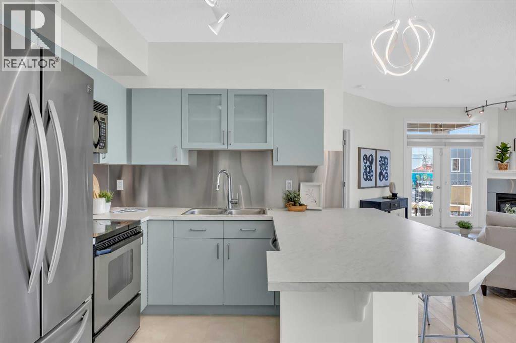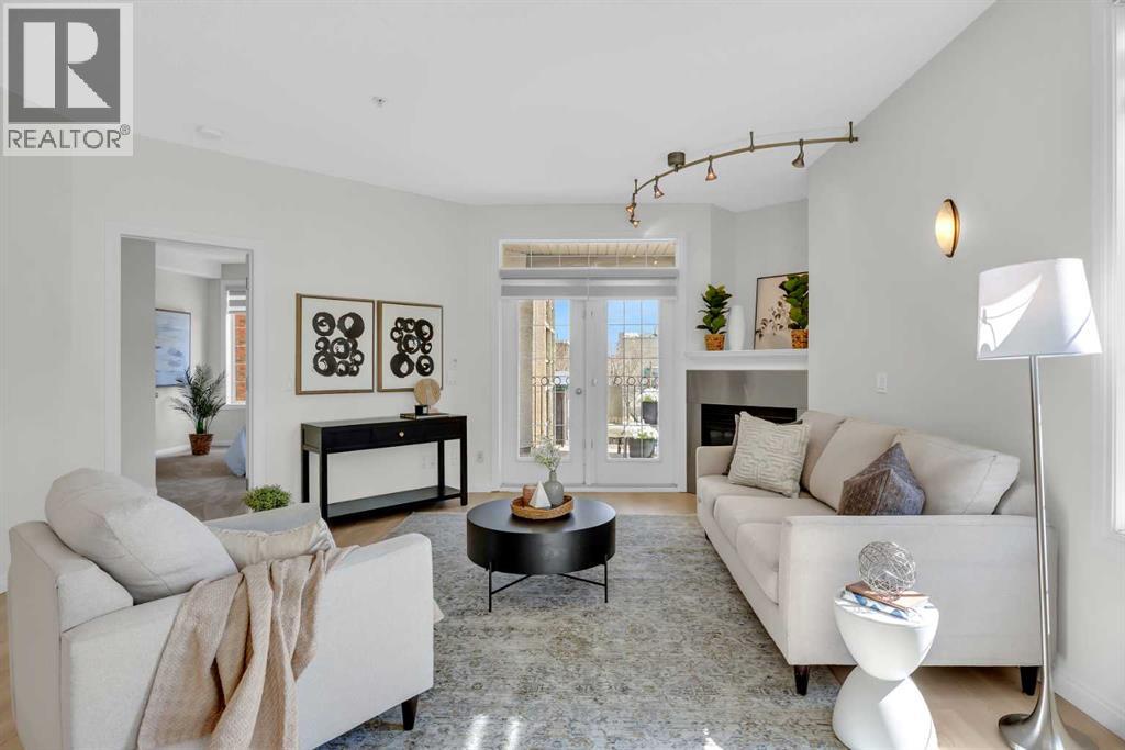 WELCOME to THE CONSERVATORY!! LOCATION ! LOCATION ! CORNER UNIT! Sunny south facing, 2 bedroom, open concept condo. NEWLY RENOVATED. Gourmet kitchen and eating island. Large Master bedroom with 4 Piece ensuite, walk-in Closet. Open Living and Dining Room with corner Gas Fireplace. 2nd Bedroom, Additional 4 piece main bath, In suite Laundry! Large Balcony with 2 French doors( one off the master bedroom) 9' ceilings. One indoor secured parking and storage. Center Courtyard that is open to all units. Walking distance to all amenities....shopping, public transportation, 17th avenue, 4th street........and much more (id:63190)