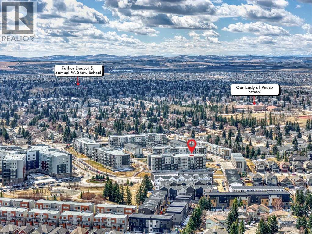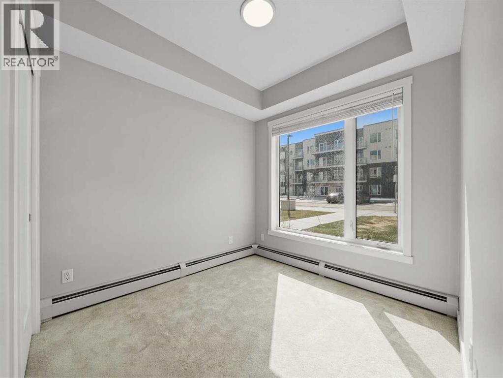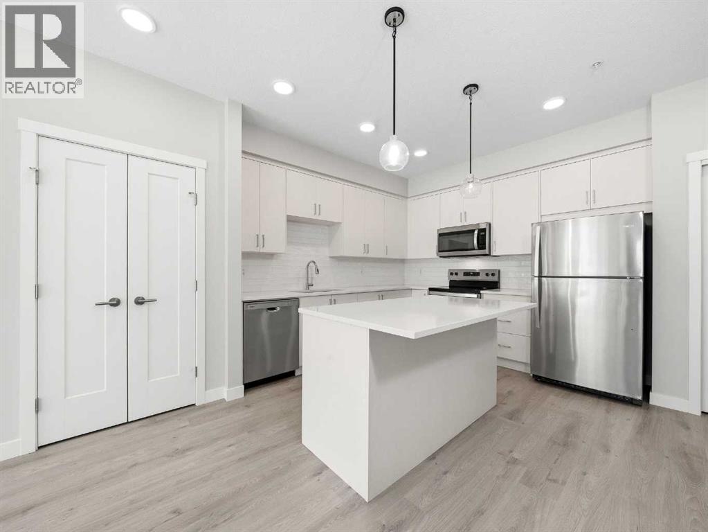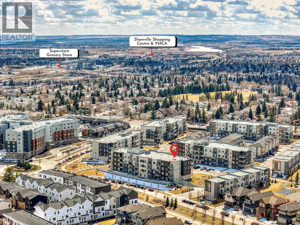 Almost new ground-floor corner unit, built in late 2024, in the highly desirable community of Shawnee Slopes, just steps from the LRT station, Fish Creek Park, walking paths, shopping, and everyday amenities—offering the perfect blend of convenience and lifestyle.This bright and spacious 3-bedroom, 2-bathroom condo offers 862 sq.ft. of thoughtfully designed living space with a modern open-concept layout. Large windows bring in an abundance of natural light, enhancing the clean, contemporary finishes throughout.The kitchen is beautifully appointed with quartz countertops, stainless steel appliances, a stylish tile backsplash, and a central island—perfect for both everyday living and entertaining.The primary bedroom features a walk-in closet and a private 4-piece ensuite. Two additional bedrooms provide excellent flexibility for family, guests, or a home office setup.Enjoy the rare advantage of a ground-level corner unit with a private patio, offering easy outdoor access and added convenience. Additional highlights include in-suite laundry, durable vinyl plank flooring, and titled underground parking with assigned storage. An excellent opportunity to own in one of Calgary’s most desirable SW communities. (id:63190)