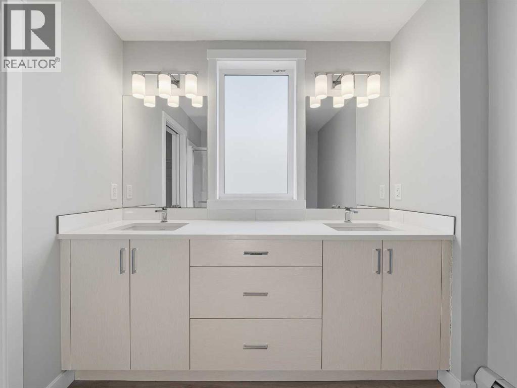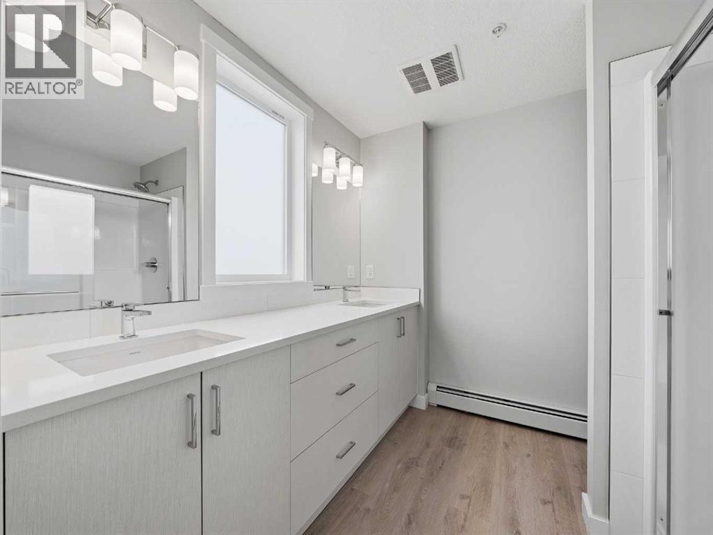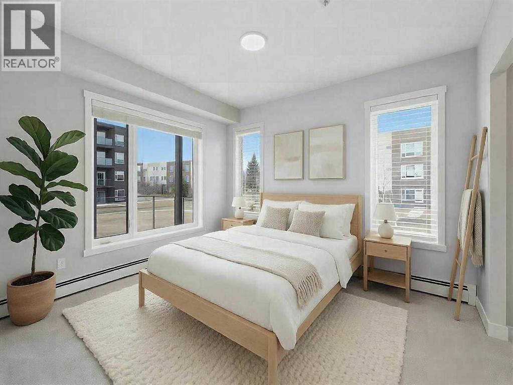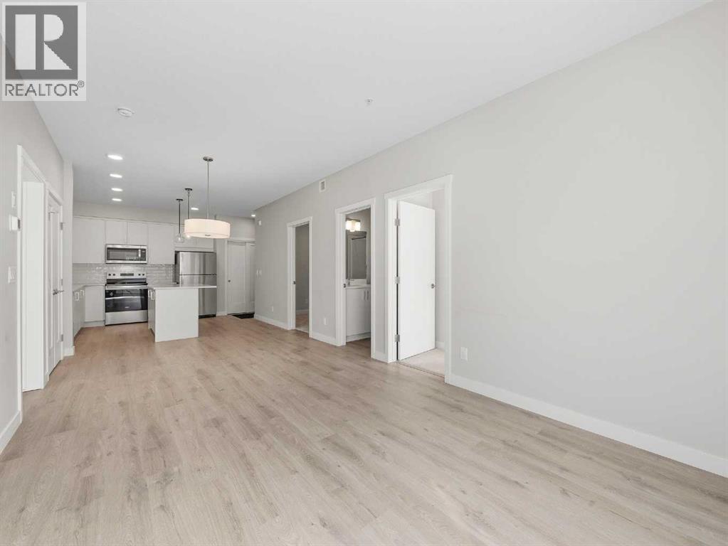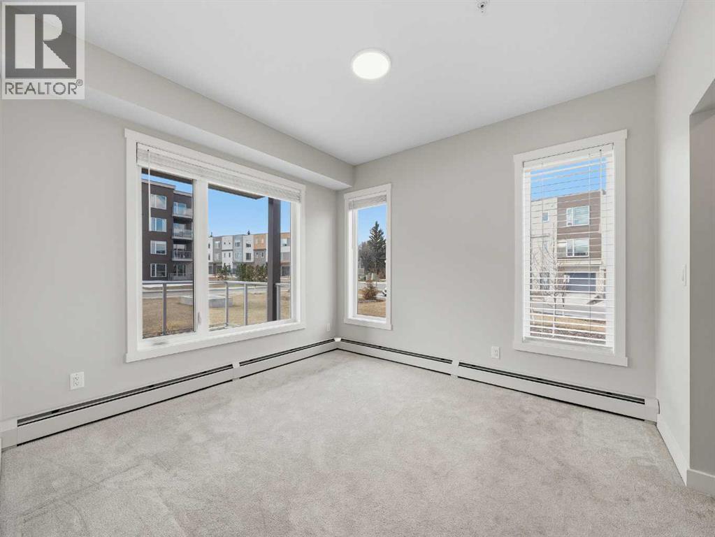 Almost new ground-floor corner unit, built in late 2024, in the highly desirable community of Shawnee Slopes, just steps from the LRT station, Fish Creek Park, walking paths, shopping, and everyday amenities—offering the perfect blend of convenience and lifestyle.This bright and spacious 3-bedroom, 2-bathroom condo offers 862 sq.ft. of thoughtfully designed living space with a modern open-concept layout. Large windows bring in an abundance of natural light, enhancing the clean, contemporary finishes throughout.The kitchen is beautifully appointed with quartz countertops, stainless steel appliances, a stylish tile backsplash, and a central island—perfect for both everyday living and entertaining.The primary bedroom features a walk-in closet and a private 4-piece ensuite. Two additional bedrooms provide excellent flexibility for family, guests, or a home office setup.Enjoy the rare advantage of a ground-level corner unit with a private patio, offering easy outdoor access and added convenience. Additional highlights include in-suite laundry, durable vinyl plank flooring, and titled underground parking with assigned storage. An excellent opportunity to own in one of Calgary’s most desirable SW communities. (id:63190)