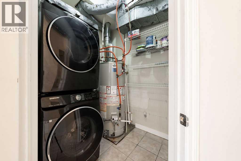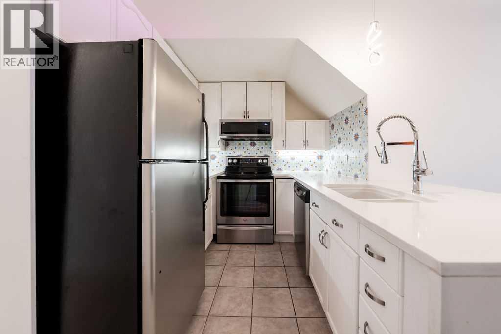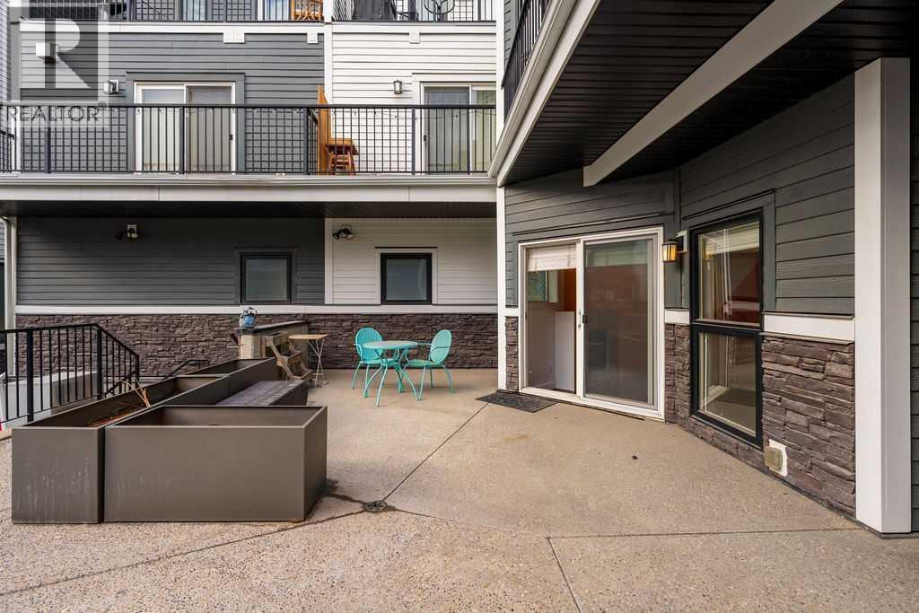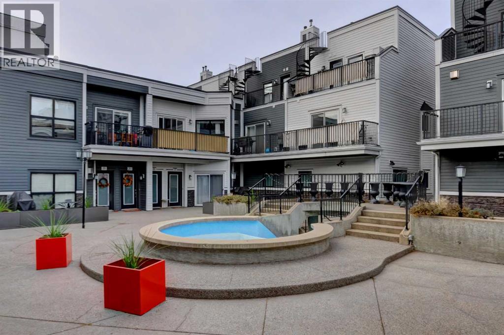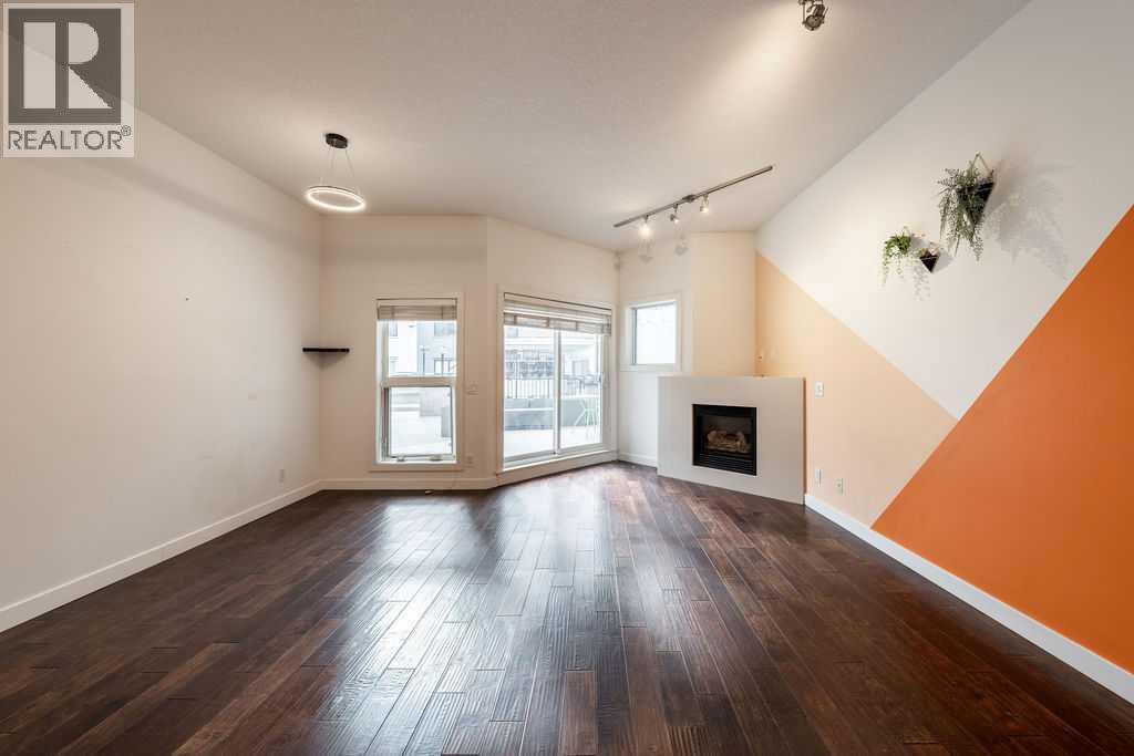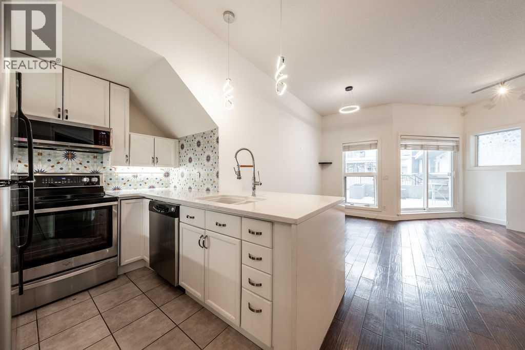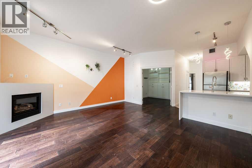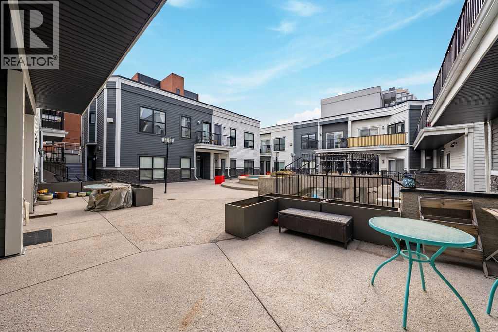 Welcome to this beautifully maintained townhouse condo with street access in an unbeatable location, just steps from the vibrant lifestyle of 17th Avenue. This spacious home features an open concept layout highlighted by a versatile DEN/OFFICE with double french doors and a full wall of built-in shelving and cabinetry. The kitchen has quartz countertops, stainless steel appliances and ample cabinetry. The inviting living room is filled with natural light and showcases hardwood flooring, a cozy gas fireplace, and patio doors leading to a spectacular WEST FACING 14’ X 16’ PATIO. This outdoor space opens directly onto a beautiful shared courtyard that must be seen to be appreciated. Additional features include underground parking with storage, in-floor heating combined with forced air, and numerous recent upgrades over the past 3 - 4 years including new washer, dryer, stove, microwave hood fan, hardwood flooring in the bedroom, and COMPLETE REPLACEMENT OF POLY-B PLUMBING. Located in Chateau Falls, a well managed, PRIVATE GATED COMPLEX that underwent extensive renovations in 2015, including newer windows, doors, roof and exterior paint. A great opportunity in a highly sought after location – viewing is highly recommended. (id:63190)