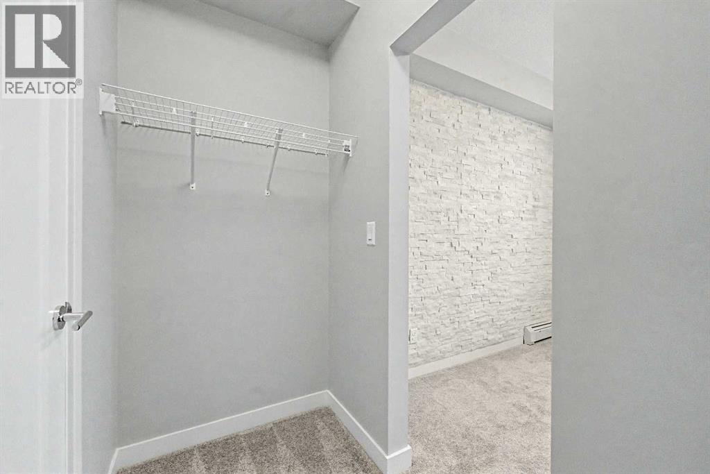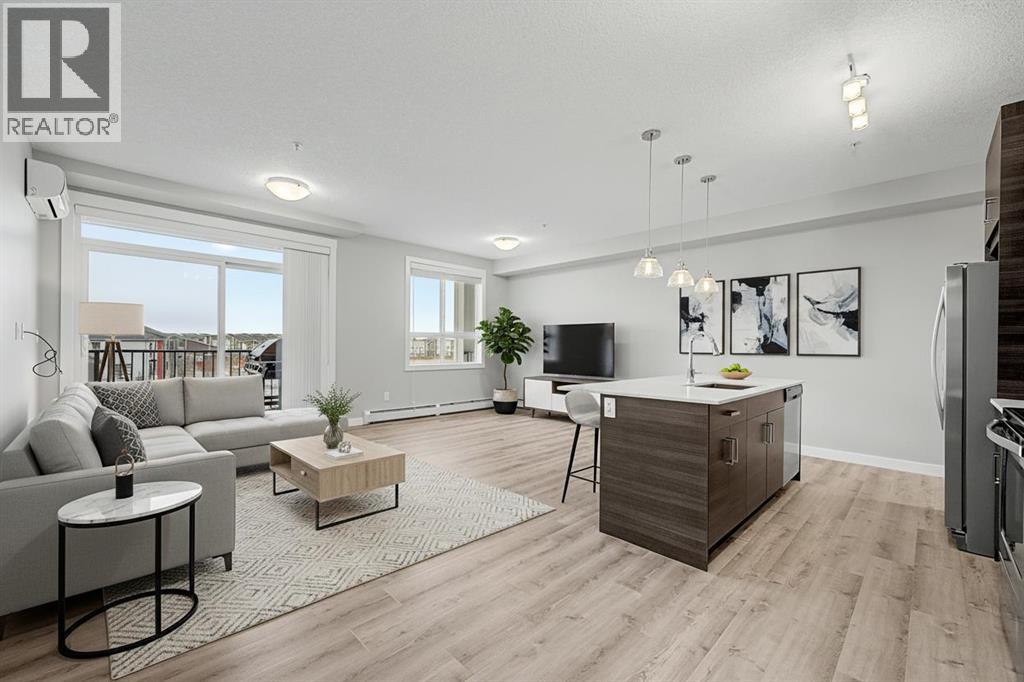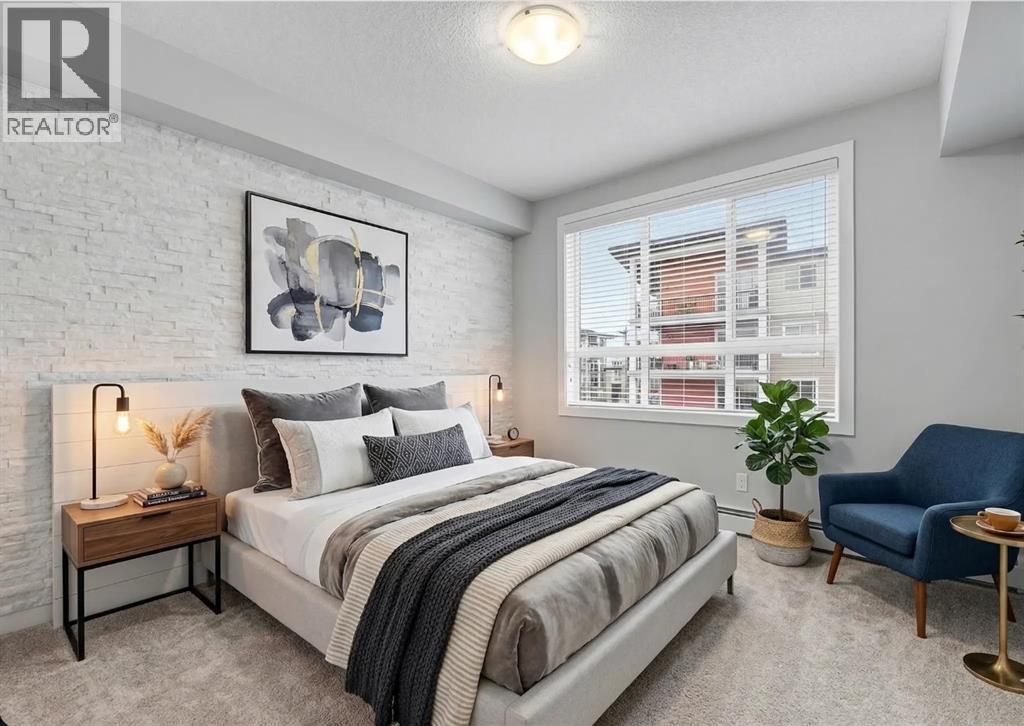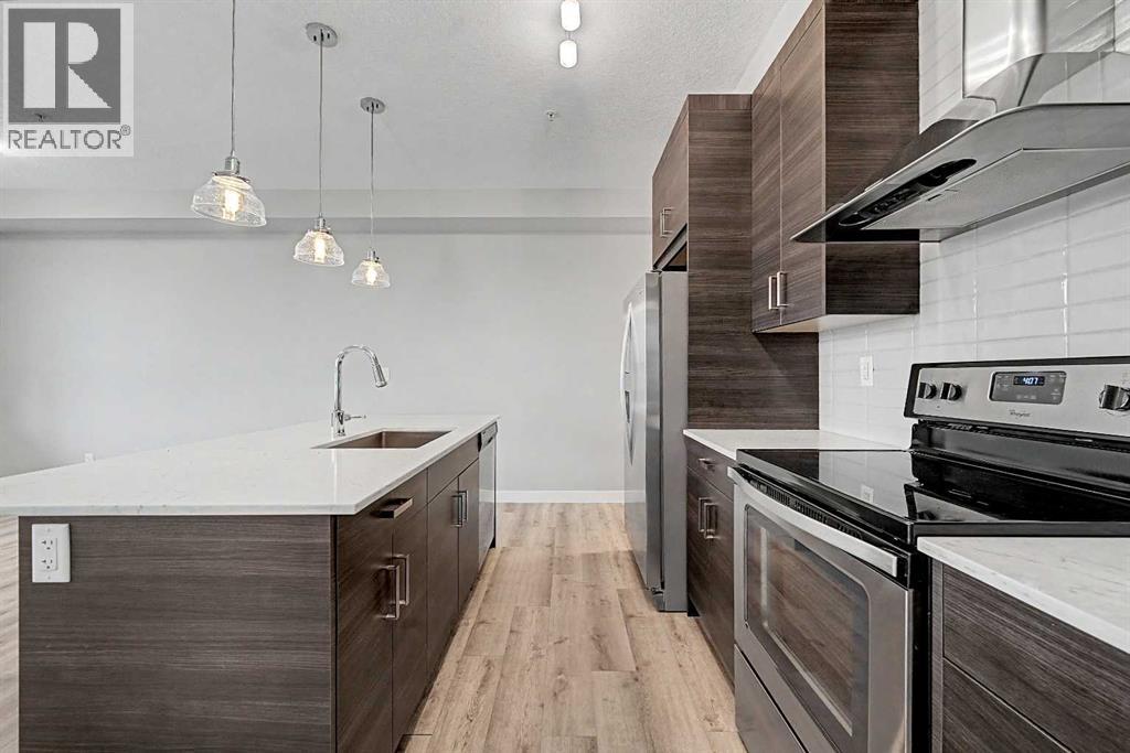 Trust us, this is one you need to see in person. A corner unit with an expansive balcony spanning the northwest and southwest sides. The light, the openness, the views. It hits different. With nearly 900 sq ft of well used space, this 2 bedroom, 2 full bathroom home with wall unit AC does more than check boxes. It delivers on the details that actually matter once you’re living in it. Step inside and it just feels right, you'll notice the 9 foot ceilings, large windows, and a bright open layout with no wasted space. Luxury vinyl plank flooring runs through the main living areas, while NEW CARPETS (2026) and NEW PAINT (2026) give it that clean, move in ready feel. The kitchen is a standout: White quartz counters, a good sized kitchen island, and rich espresso cabinetry create a bold, modern contrast. Glass bell pendant lighting adds a refined touch, while the chimney style hood fan and subway tile backsplash complete a space that feels elevated. It flows seamlessly into the living and dining area, making it as practical as it is impressive. And then there’s the balcony: This is where this unit separates itself. Catch views of the Open Field, Environmental Reserve. It offers a setting that simply does not exist in most units in the building. The slight elevation hides the Walden ponds beyond. Whether it is morning coffee in the sun or an evening unwind, step outside and you are surrounded by space, greenery, and openness that will not change over time.What looks like open land is actually part of a connected system of over 15 km of walking and cycling paths leading through ponds, wetlands, and toward the Bow River valley. Scenic walks, running routes, dog walks, playgrounds, birdwatching, and even photography spots are all right outside your door.The separate bedrooms are thoughtfully positioned for privacy, each with its own full bathroom. The primary suite features a CUSTOM STONE ACCENT WALL, a walk through closet, and a well designed ensuite with d ual sinks that makes everyday living more comfortable.Built by Cardel Lifestyles, a name known for quality, and it shows throughout. You also get titled underground parking and storage conveniently located right in front.The location ties it all together. Walden was designed around lifestyle, with parks, wetlands, and pathways woven into the community. You are also within walking distance to Legacy Township, giving you quick access to groceries, restaurants, and everyday essentials. This is one of those homes that looks great online, but makes even more sense the moment you step inside. Some photos have been virtually staged to illustrate potential room layout and furniture placement. Actual property condition and features may differ. Contact your favourite Realtor and don't forget to check out the 3D tour. Email us for a copy of the Walden Community Guide and Walden Development Overview. (id:63190)