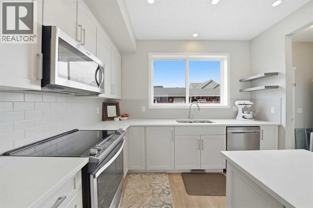 LOCATION, LOCATION, LOCATION! and Airconditioning.....and 22 x 24 GARAGE! This incredibly charming home is centrally positioned within walking distance to the beach club, wetlands, parks, playgrounds, schools, future farmers market, and all of the amenities that Mahogany has to offer. The cozy living room welcomes you from the front entryway and offers large bright windows that flood natural light throughout the open floor plan. The extensively upgraded kitchen includes modern cabinetry, quartz countertops, subway tile backsplash, and an upgraded chef appliance package. The impressive upper level offers two generous master's quarters each with their own upgraded ensuite and ample closet space. The developed lower level is the perfect space for entertaining with a generous size rec room, bar area, office space, and 2pc bathroom that has been roughed in for a future shower! Complete with a professionally landscaped backyard highlighted by an amazing stone patio where you can enjoy your summer nights! This home shows like new and won’t last long!! **CHECK OUT THE 3D VIRTUAL OPEN HOUSE TOUR FOR A BETTER LOOK* (id:63190)