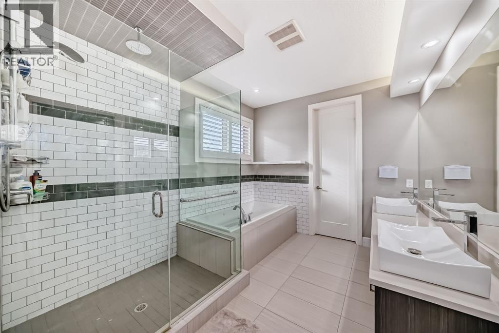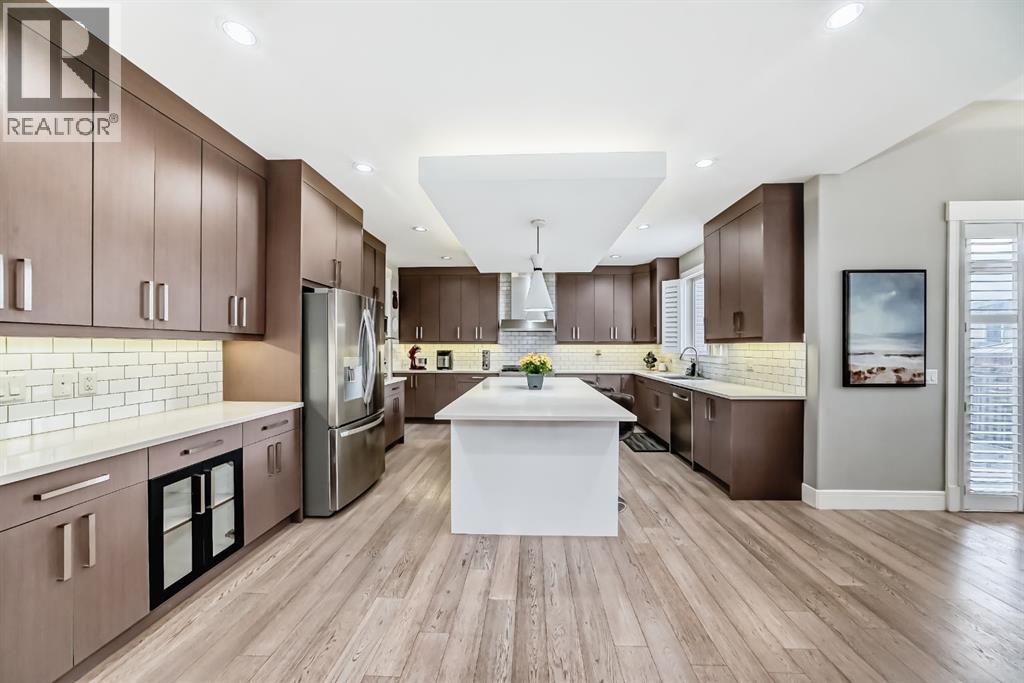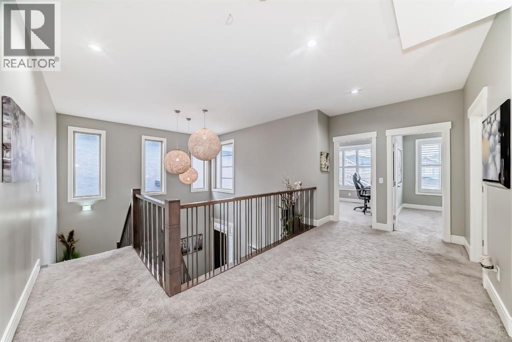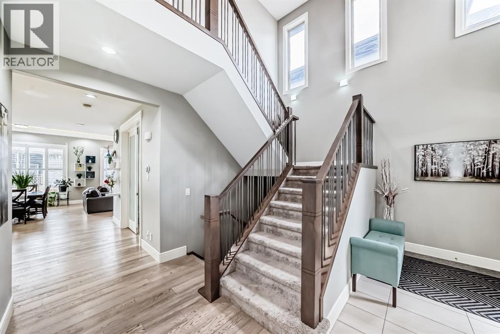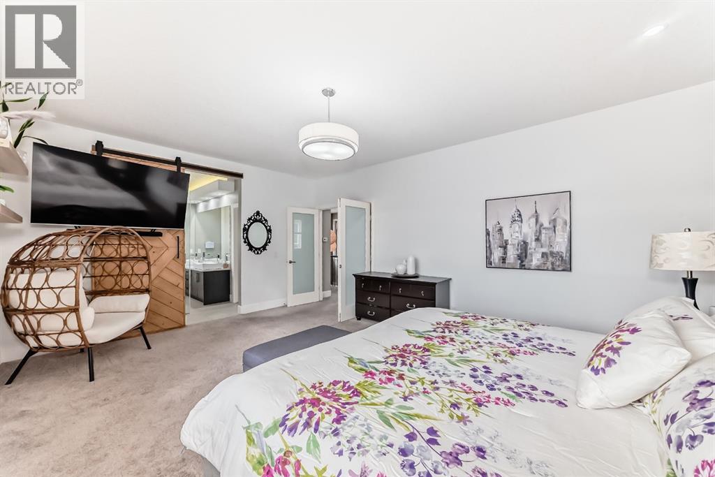 You're going to fall in love with this executive custom home, where pride of ownership shines in every detail. Perfectly situated just a half-block from Chestermere Lake and a short five-minute stroll to East Lake School (K-6), this residence offers a lifestyle of convenience and luxury. Upon entry, you are greeted by a magnificent 18’ vaulted foyer featuring engineered white oak flooring that flows seamlessly throughout the open-concept main level. The Magazine-Worthy Chef’s Kitchen is anchored by a massive quartz island, custom cabinetry, a walk-through pantry, and a high-end 36” commercial gas range. 11 foot vaulted ceilings in the living and dining areas are bathed in natural light, accented by elegant California Shutters and a cozy gas fireplace. A dedicated main-floor office provides the ideal quiet workspace for professionals. Retreat to the Master Quarters, a one-of-a-kind sanctuary highlighted by a paneled feature wall and a rustic-chic sliding barn door. The 5-piece spa ensuite features a rainfall shower, jacuzzi tub, and dual vessel sink vanities. Two additional generously sized bedrooms, a second full bath with double vanities, and a spacious bonus room—perfect for movie nights—complete this level. A separate entrance leads to the Self-contained illegal suite featuring 2 spacious bedrooms, each bedroom boasts its own walk-in closet, over-sized windows, complemented by a full kitchen, comfortable living area, and a full bathroom. Stay perfectly cool with dual A/C units just in time for the warm spring and summer evenings. . The rear deck overlooks a sunny, west-facing backyard, featuring a large gazebo that your guests are going to love. An oversized triple-car garage leads into a highly functional mudroom with custom built-ins. Move in & enjoy the lifestyle you deserve! (id:63190)
