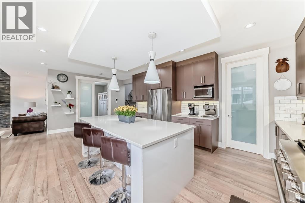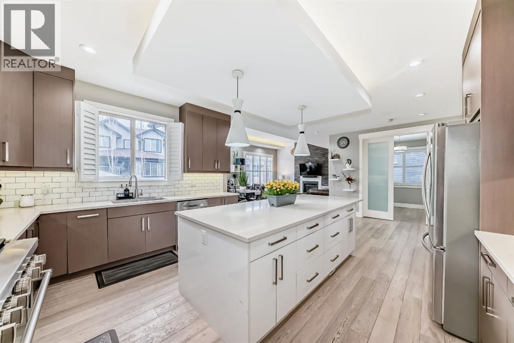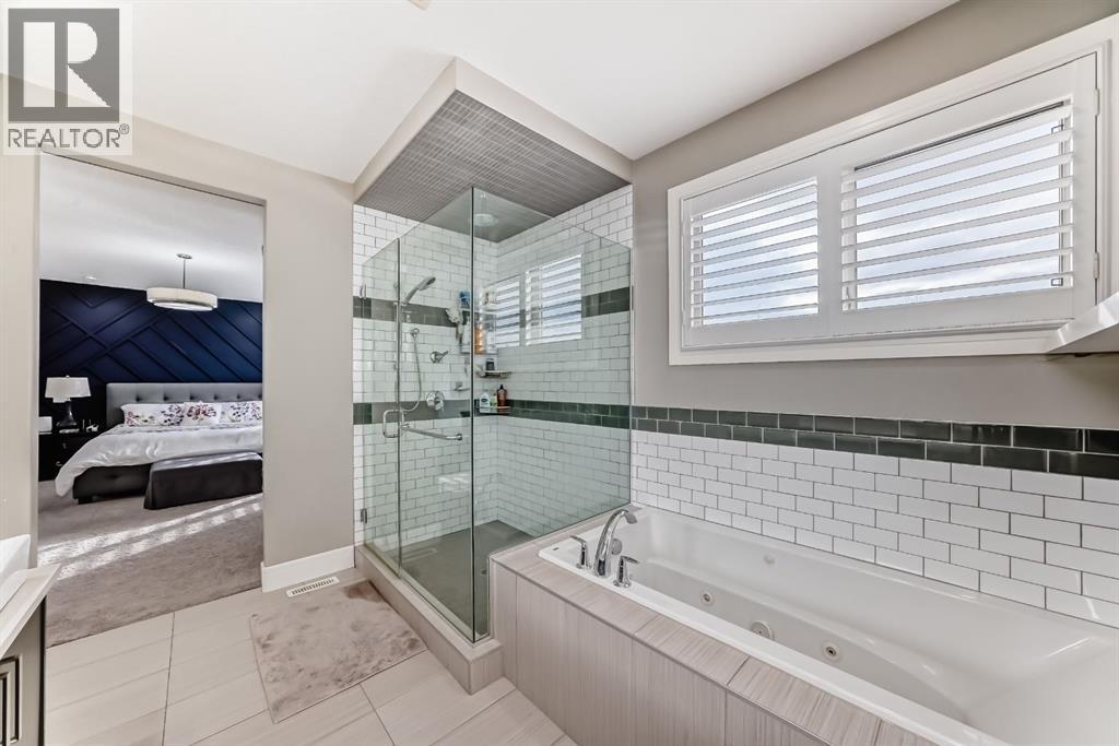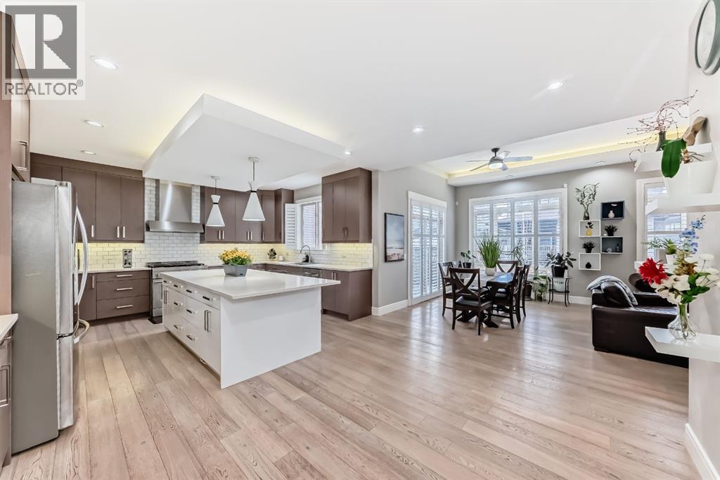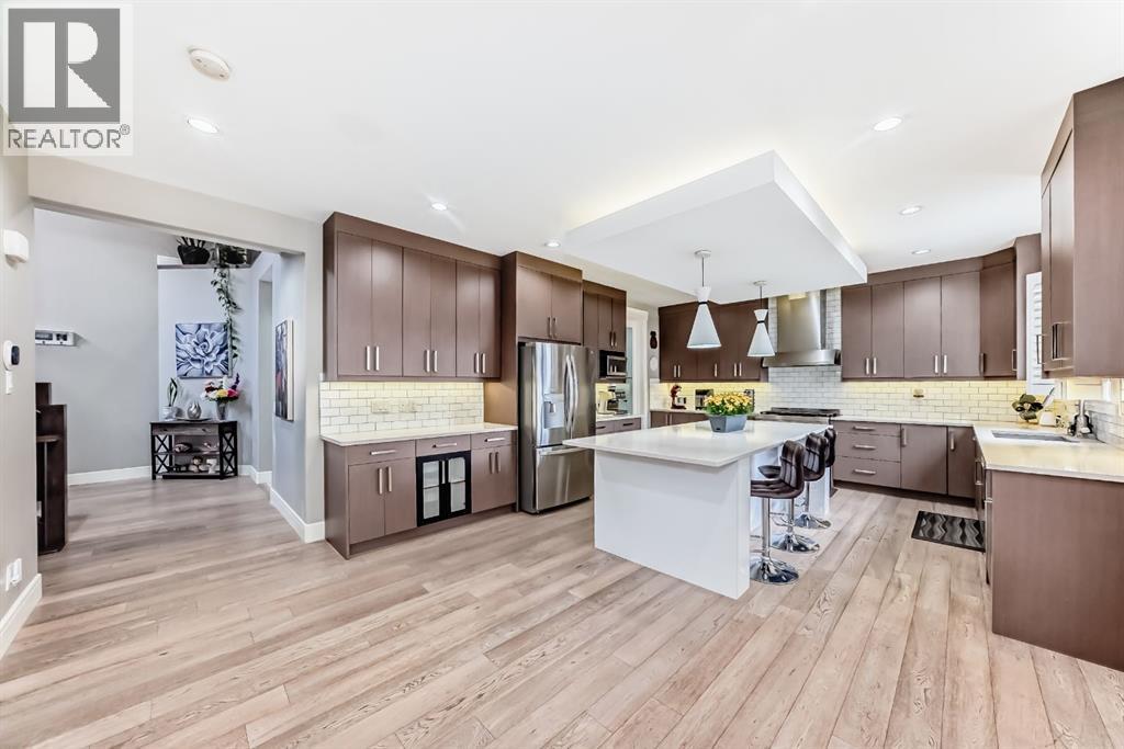You're going to fall in love with this executive custom home, where pride of ownership shines in every detail. Perfectly situated just a half-block from Chestermere Lake and a short five-minute stroll to East Lake School (K-6), this residence offers a lifestyle of convenience and luxury. Upon entry, you are greeted by a magnificent 18’ vaulted foyer featuring engineered white oak flooring that flows seamlessly throughout the open-concept main level. The Magazine-Worthy Chef’s Kitchen is anchored by a massive quartz island, custom cabinetry, a walk-through pantry, and a high-end 36” commercial gas range. 11 foot vaulted ceilings in the living and dining areas are bathed in natural light, accented by elegant California Shutters and a cozy gas fireplace. A dedicated main-floor office provides the ideal quiet workspace for professionals. Retreat to the Master Quarters, a one-of-a-kind sanctuary highlighted by a paneled feature wall and a rustic-chic sliding barn door. The 5-piece spa ensuite features a rainfall shower, jacuzzi tub, and dual vessel sink vanities. Two additional generously sized bedrooms, a second full bath with double vanities, and a spacious bonus room—perfect for movie nights—complete this level. A separate entrance leads to the Self-contained illegal suite featuring 2 spacious bedrooms, each bedroom boasts its own walk-in closet, over-sized windows, complemented by a full kitchen, comfortable living area, and a full bathroom. Stay perfectly cool with dual A/C units just in time for the warm spring and summer evenings. . The rear deck overlooks a sunny, west-facing backyard, featuring a large gazebo that your guests are going to love. An oversized triple-car garage leads into a highly functional mudroom with custom built-ins. Move in & enjoy the lifestyle you deserve! (id:63190)