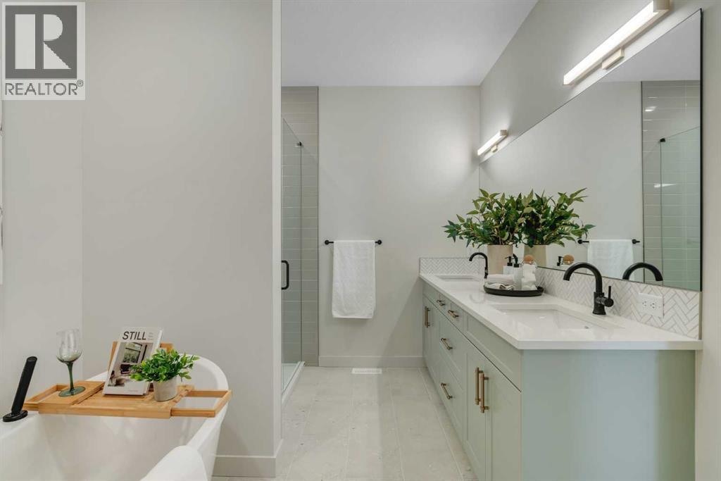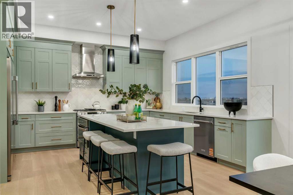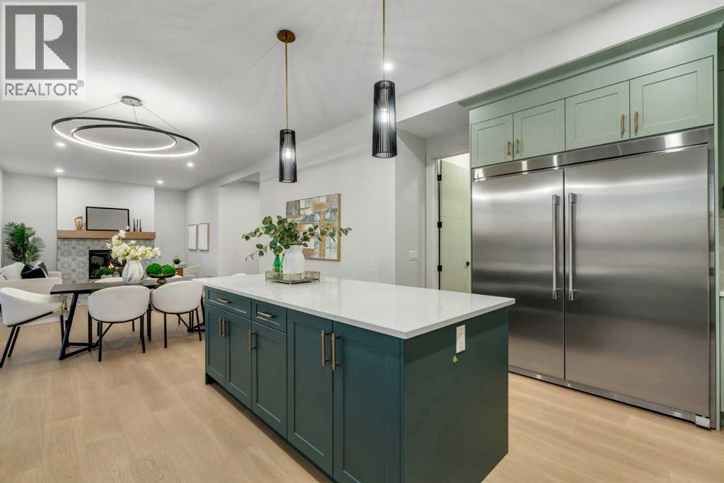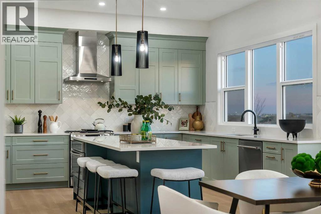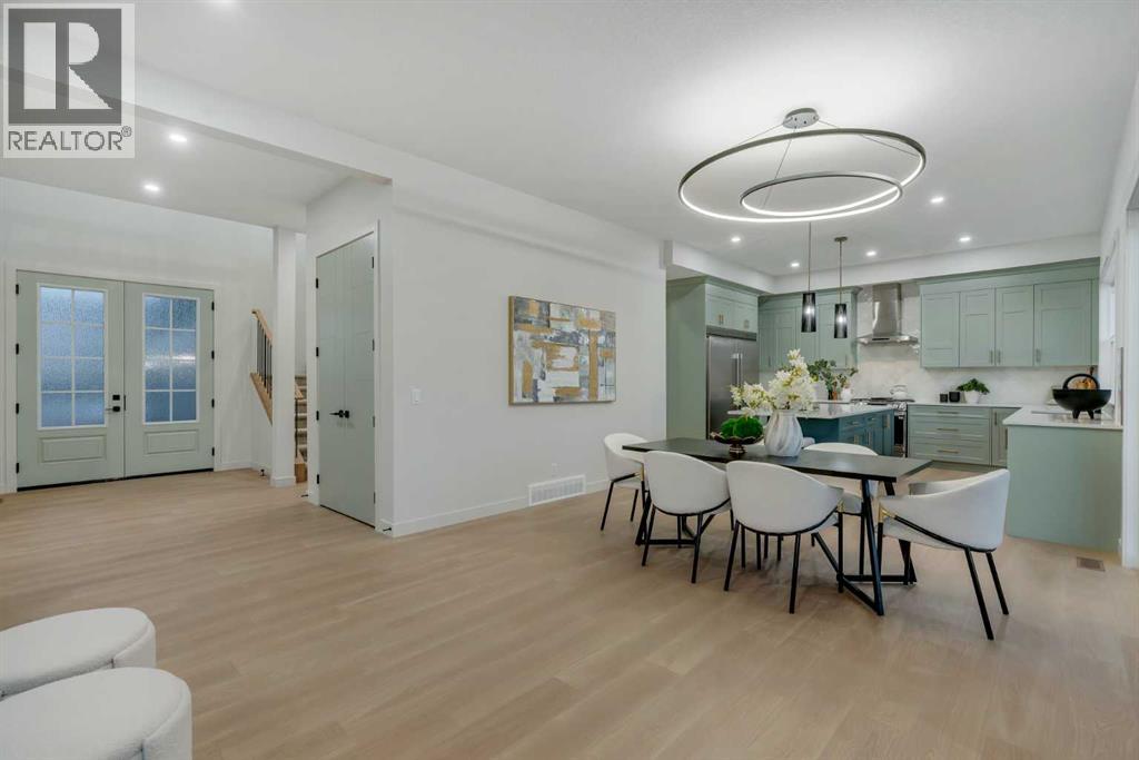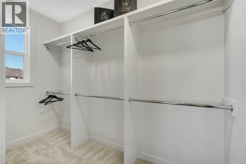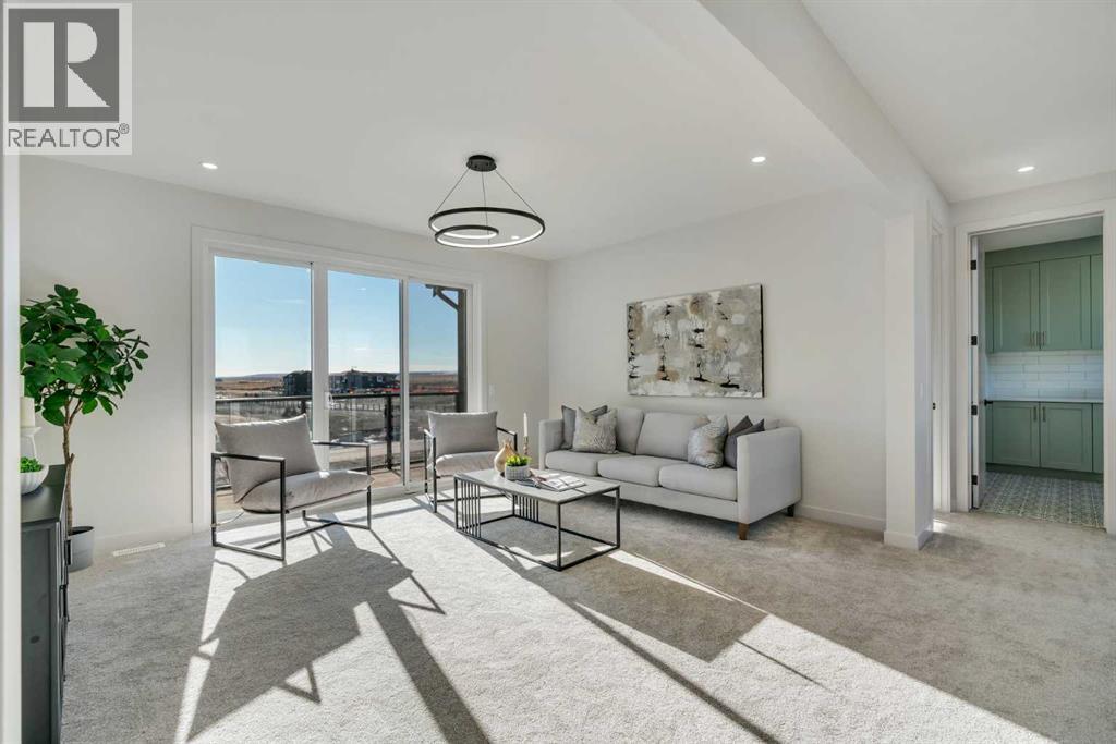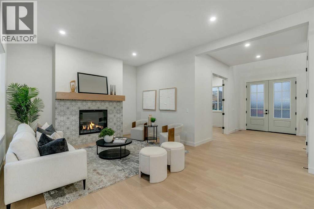 Public Open House April 26th (Sunday) 2:00-4:00PM * Dreams come true! *Watch the Video*A fully finished designer estate home offering over 4,200 SQFT of functional living space, this residence is designed to impress at every turn. A luxury estate home that truly checks every box. This stunning showpiece by Aspen Creek Designer Homes, Alberta's one of Alberta's premier luxury builder showcases exceptional craftsmanship & stellar elevated finishings. Located in the growing estate community of Goldwyn, this home offers the charm of prairie estate living with breathtaking pond, downtown, & mountain views - Perfectly situated on a quiet cul-de-sac & no neighbours behind. OVERSIZED TRIPLE GARAGE | L-SHAPED LOT | 5 BEDROOMS + MAIN FLOOR DEN | 5 FULL BATHROOMS | SOUTH BACKYARD | POND VIEWS | EXCELLENT FINISHINGS | STUNNING CHEF'S KITCHEN | SPICE KITCHEN | SPACIOUS BACKYARD | 3 SPACIOUS BEDROOMS UP WITH ENSUITES | BONUS ROOM WITH PRIVATE BALCONY | FINISHED WALKUP 2 BEDROOMS BASEMENT | HARDIE BOARD SIDINGThe expansive triple garage along with aggregate driveway create a striking first impression. Step through the grand double-door entrance into a soaring open-to-below foyer filled with natural light. The main floor features 10-foot ceilings, 9 Ft doors, oversized windows, & a spacious living room with an elegant tiled fireplace detailing. A magazine-worthy, state-of-the-art chef’s kitchen offering that aura your guests are going to love - timeless cabinetry with gold hardware, glossy backsplash, top-of-the-line appliances including an oversized refrigerator, gas cooktop, chimney hood fan, & built-in microwave. A massive centre island with blue cabinetry provides the perfect gathering space, while the fully equipped spice kitchen adds both style & function.A versatile main floor den with a French glass door sits beside an upgraded full bathroom— ideal for guests, multigenerational living, or a private home office. A generous mudroom offering ample space for a secondary home office. Walking upstairs along the grand wide staircase with designer railing, you'll notice the 9 FT ceilings & 8ft doors followed by a sun-filled central bonus room opens onto a private balcony overlooking the pond. Three spacious upstairs bedrooms each feature their own private ensuites - no compromises whatsoever. The primary suite is a true retreat, enhanced by extra windows, a huge walk-in closet, & a luxurious spa-like ensuite complete with a soaker tub, glass shower with upgraded tile surround, dual sinks, & a private toilet.The two additional south-facing bedrooms enjoy stunning pond views & upgraded attached bathrooms, offering comfort & privacy for family or guests. A massive laundry room with cabinets and tiles Step outside to a huge south-facing backyard that feels like a private summer retreat - ideal for entertaining & relaxing with your family. Dual Furnace Zoning & 72 Gal HWT adding to the efficiency. A fully upgraded over 4200 SQFT luxury home in an estate location. (id:63190)