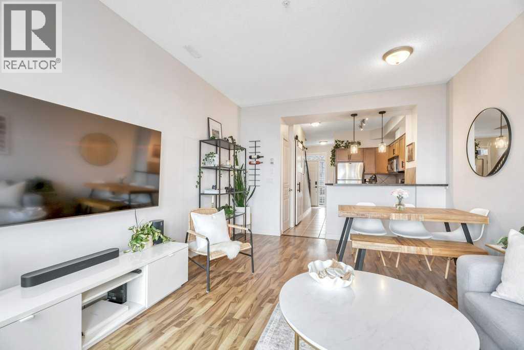 Enjoy incredible mountain views from both levels in this well-maintained 2-bedroom, 2.5-bathroom home offering over 1000sqft of functional living space. Built in 2005, this unit includes two titled, side-by-side underground parking stalls and a titled storage unit.The main floor features 9’ ceilings, laminate and tile flooring, stainless steel appliances, and spindle railings. The kitchen offers a pantry and breakfast bar, opening into a bright dining and living area with direct access to a sunny, south-facing patio with mountain views and a gas line for BBQ.Upstairs, you’ll find a spacious primary bedroom with a 3-piece ensuite, a second generously sized bedroom, and a renovated 4-piece bathroom. Convenient upper-level laundry completes the space.Ideally located near the new YMCA, with quick access to the C-Train, transit, walking paths, green space, shopping, and all amenities. Enjoy easy access west to the mountains for weekend getaways. Condo fees include a fitness room and access to Rocky Ridge Ranch HOA amenities, featuring tennis and basketball courts, a splash park, and a lake. (id:63190)