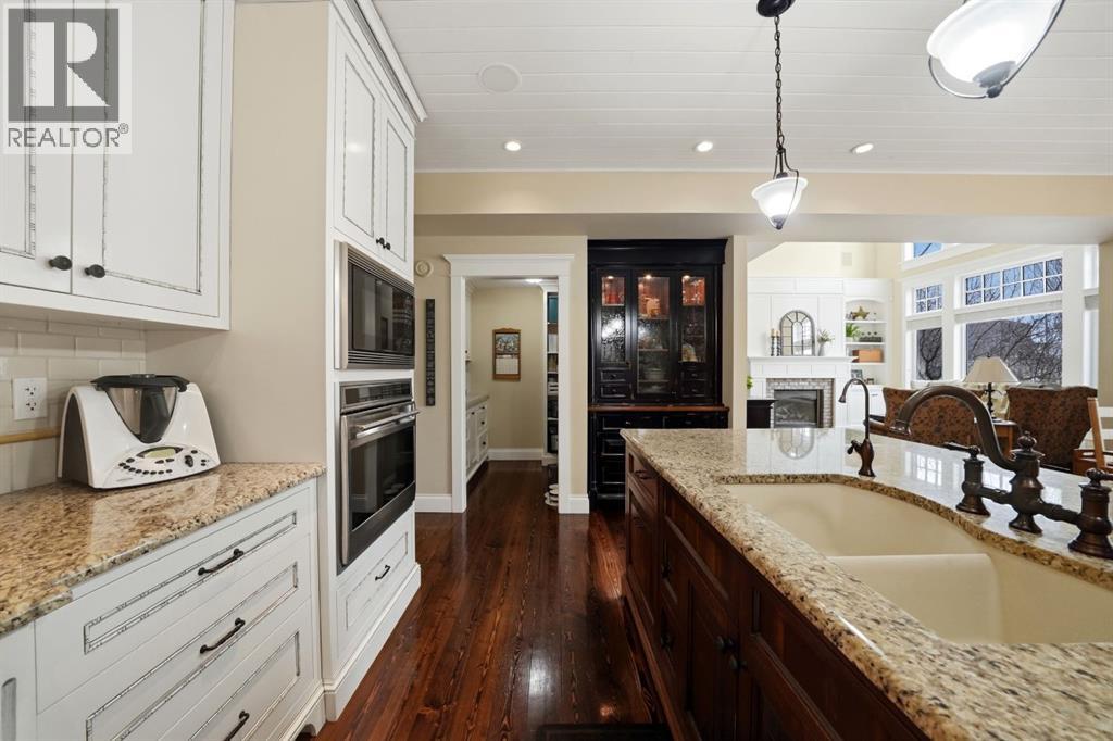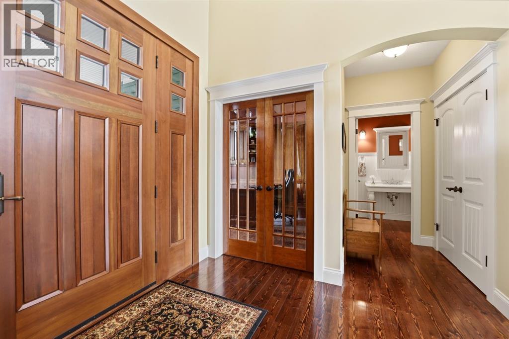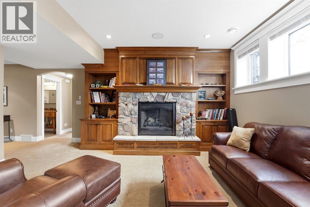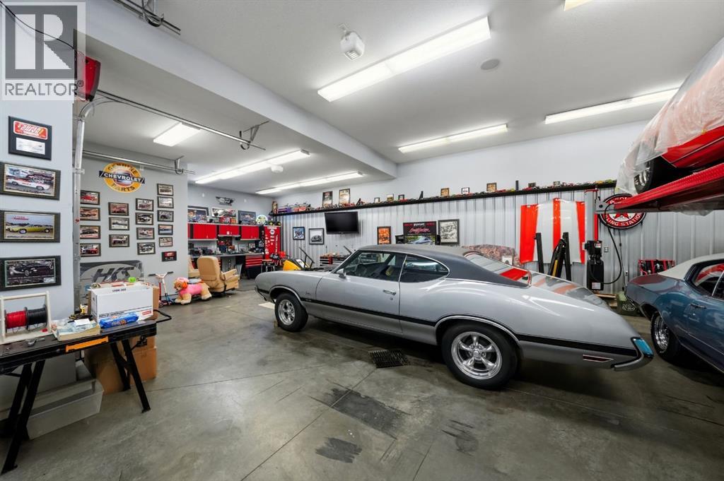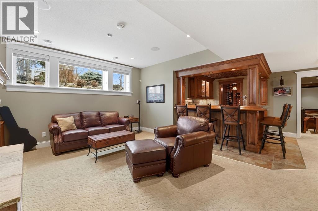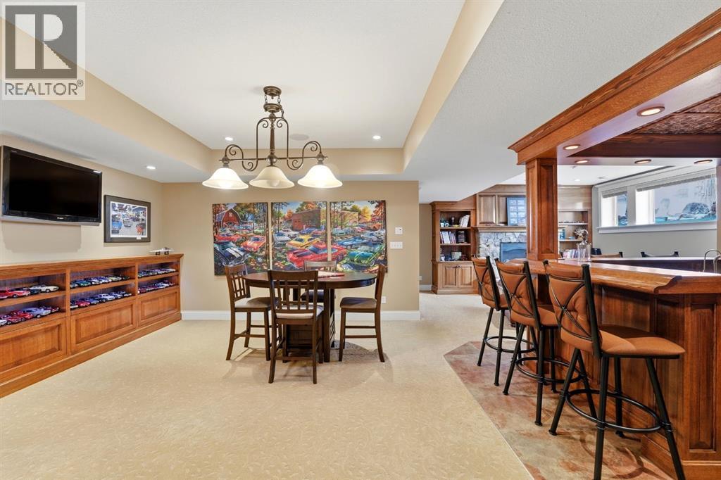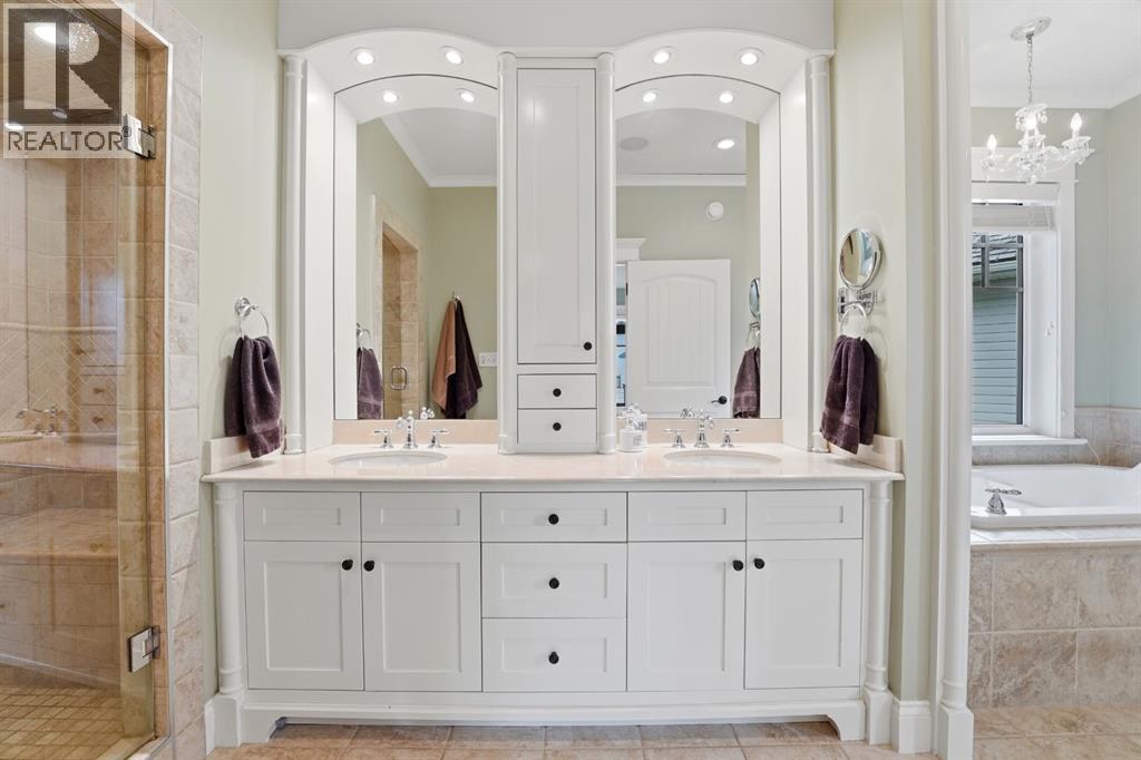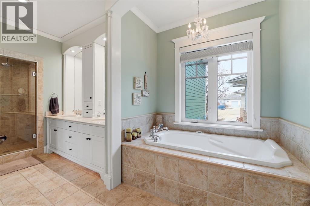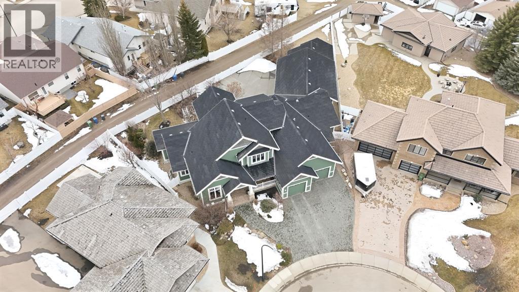 Acreage-style living in the city! This truly one-of-a-kind property offers exceptional space, luxury, and functionality, highlighted by two attached heated garages that are simply unmatched. The front garage measures 27' x 26' with impressive 11-foot ceilings, while the rear attached garage/shop/man cave spans over 1,800 sq ft and can accommodate six vehicles or more with the addition of lifts—perfect for car enthusiasts or hobbyists. There is ample room for boats, quads, sleds, or even a virtual golf setup, and it even includes its own bathroom.Situated on an oversized one-third acre lot at the end of a quiet close in desirable Anders, this home combines privacy with convenience. The location offers excellent walkability to parks, schools, shopping, and the Collicutt Centre. A large rear driveway provides additional parking, including space for RVs. The mature yard has been professionally designed and landscaped, creating a peaceful and private outdoor retreat.Built in a timeless Craftsman style by renowned builder Bowood Homes, this residence showcases exceptional attention to detail throughout. From the moment you arrive at the charming front veranda with custom brickwork, you’ll immediately appreciate the quality craftsmanship. Inside, the home offers a perfect balance of grandeur and warmth.The executive office at the front features stunning woodwork and a coffered ceiling, while the formal dining room with large windows and elegant wainscoting is ideal for hosting gatherings. The main floor boasts an open-concept layout designed for everyday living and entertaining, with expansive floor-to-ceiling windows that flood the space with natural light.Custom cabinetry by Sadona Cabinets is featured throughout, including beautifully integrated built-ins around the fireplace with a hidden, retractable TV. The chef-inspired kitchen offers abundant cabinetry, generous counter space, high-end appliances, and a convenient butler’s pantry. Premium finishes include grani te and marble countertops and timeless fir hardwood flooring.Designed for flexibility, the main floor includes the primary bedroom and laundry. The primary suite overlooks the serene backyard and features a luxurious ensuite with an air tub and steam shower. Upstairs, you’ll find two spacious bedrooms with walk-in closets and a stunning open view to the main floor and beyond.The fully developed lower level is built for entertaining, complete with a theatre room (including screen, projector, and equipment), a custom bar with exquisite woodwork, dishwasher, bar fridge, and wine room, plus a large games area and cozy lounge with a rock-faced fireplace. Two additional bedrooms complete this level.Mechanical features are equally impressive, including a boiler system with ventilation, in-floor heating, and central air conditioning for year-round comfort. This home is ideal for buyers seeking exceptional craftsmanship, thoughtful design, and a property that truly supports every aspect of modern living. (id:63190)