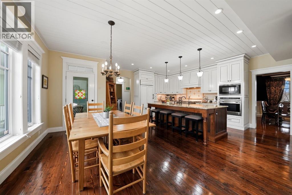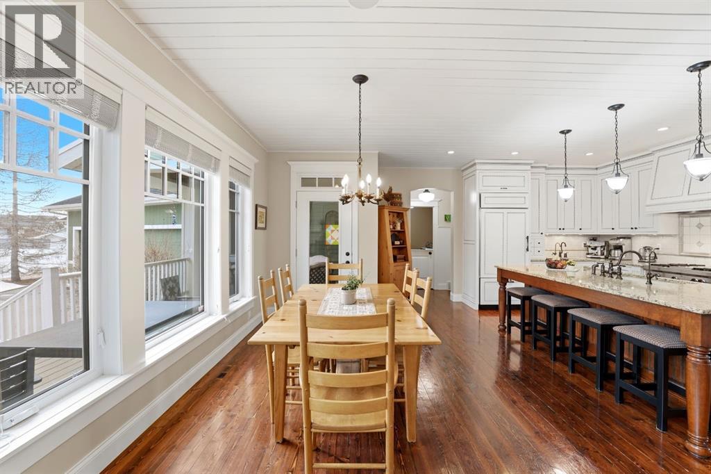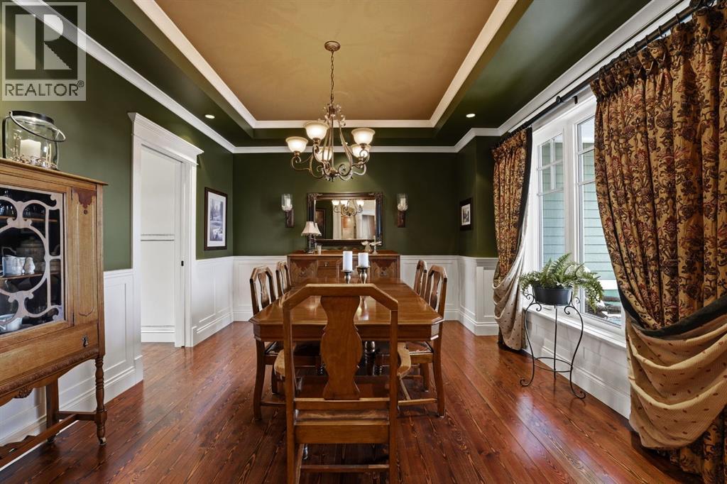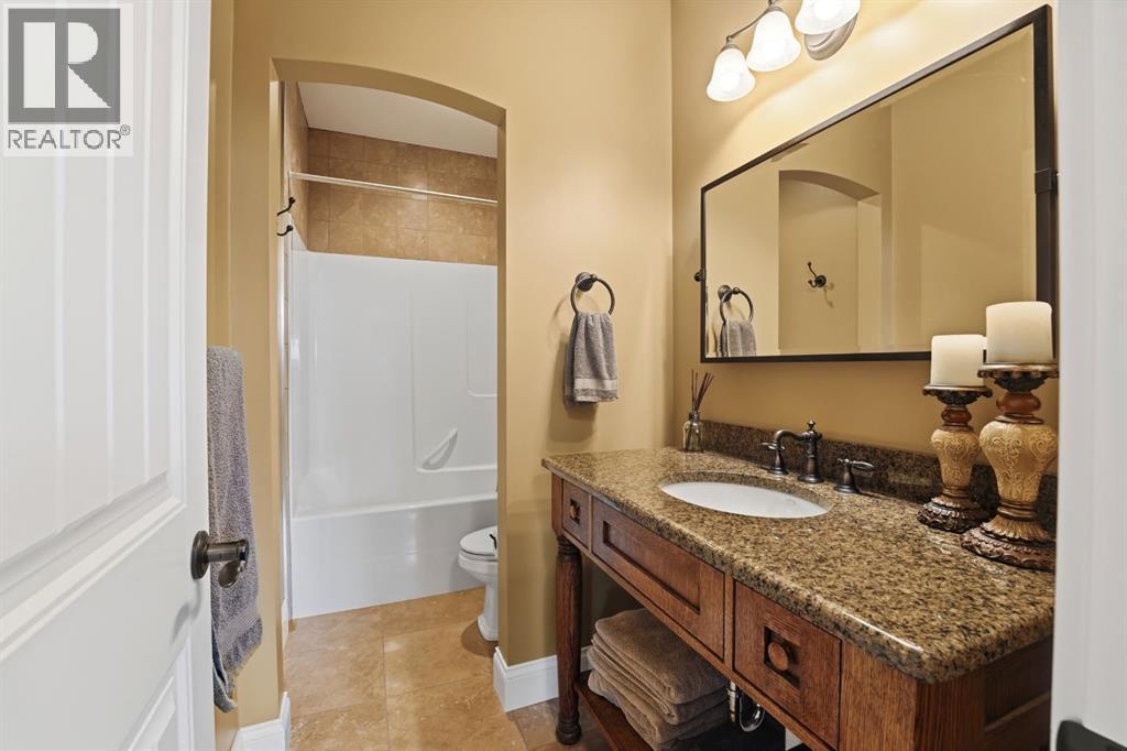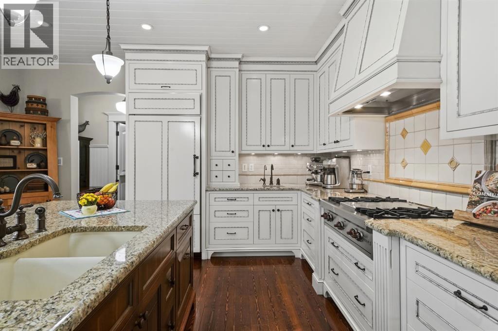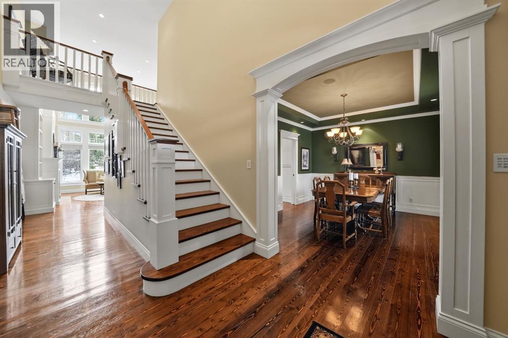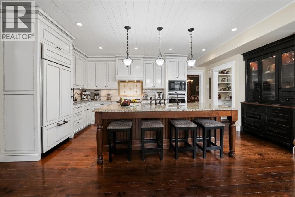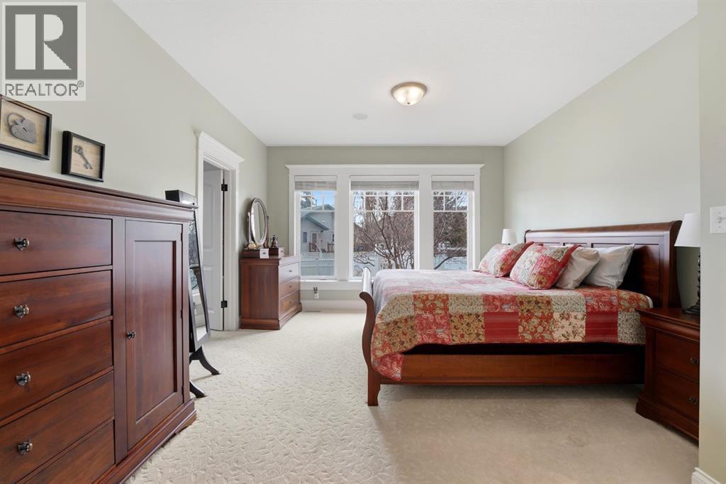 Acreage-style living in the city! This truly one-of-a-kind property offers exceptional space, luxury, and functionality, highlighted by two attached heated garages that are simply unmatched. The front garage measures 27' x 26' with impressive 11-foot ceilings, while the rear attached garage/shop/man cave spans over 1,800 sq ft and can accommodate six vehicles or more with the addition of lifts—perfect for car enthusiasts or hobbyists. There is ample room for boats, quads, sleds, or even a virtual golf setup, and it even includes its own bathroom.Situated on an oversized one-third acre lot at the end of a quiet close in desirable Anders, this home combines privacy with convenience. The location offers excellent walkability to parks, schools, shopping, and the Collicutt Centre. A large rear driveway provides additional parking, including space for RVs. The mature yard has been professionally designed and landscaped, creating a peaceful and private outdoor retreat.Built in a timeless Craftsman style by renowned builder Bowood Homes, this residence showcases exceptional attention to detail throughout. From the moment you arrive at the charming front veranda with custom brickwork, you’ll immediately appreciate the quality craftsmanship. Inside, the home offers a perfect balance of grandeur and warmth.The executive office at the front features stunning woodwork and a coffered ceiling, while the formal dining room with large windows and elegant wainscoting is ideal for hosting gatherings. The main floor boasts an open-concept layout designed for everyday living and entertaining, with expansive floor-to-ceiling windows that flood the space with natural light.Custom cabinetry by Sadona Cabinets is featured throughout, including beautifully integrated built-ins around the fireplace with a hidden, retractable TV. The chef-inspired kitchen offers abundant cabinetry, generous counter space, high-end appliances, and a convenient butler’s pantry. Premium finishes include grani te and marble countertops and timeless fir hardwood flooring.Designed for flexibility, the main floor includes the primary bedroom and laundry. The primary suite overlooks the serene backyard and features a luxurious ensuite with an air tub and steam shower. Upstairs, you’ll find two spacious bedrooms with walk-in closets and a stunning open view to the main floor and beyond.The fully developed lower level is built for entertaining, complete with a theatre room (including screen, projector, and equipment), a custom bar with exquisite woodwork, dishwasher, bar fridge, and wine room, plus a large games area and cozy lounge with a rock-faced fireplace. Two additional bedrooms complete this level.Mechanical features are equally impressive, including a boiler system with ventilation, in-floor heating, and central air conditioning for year-round comfort. This home is ideal for buyers seeking exceptional craftsmanship, thoughtful design, and a property that truly supports every aspect of modern living. (id:63190)
