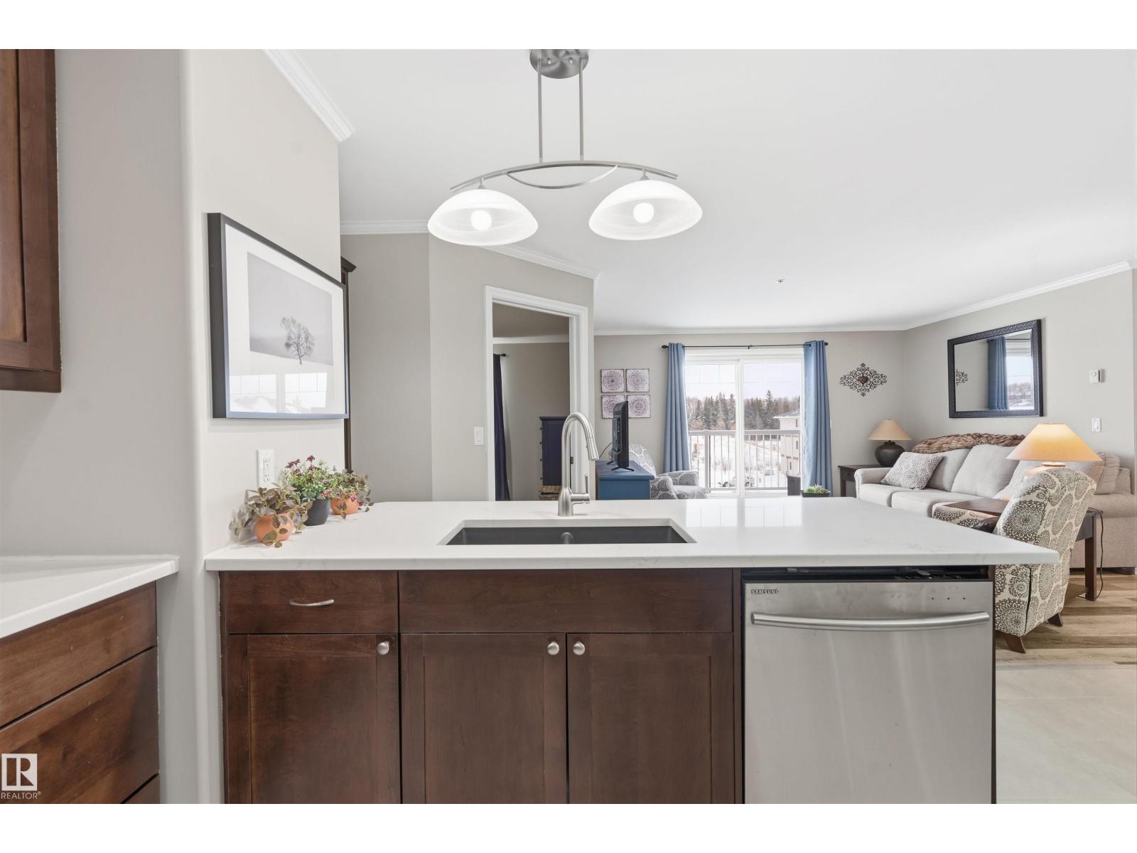 Brand new granite countertops and vinyl tile flooring enhance the kitchen in this third-level, two-bedroom, two-bathroom condo. Highlights include an open-concept living space, air conditioning, in floor heat, a natural gas BBQ hookup, and in-suite laundry. The primary bedroom features a large walk-in closet and a three-piece ensuite. This unit comes with one titled underground parking stall, an additional outdoor parking stall, and assigned storage. The building offers an on-site fitness facility and is professionally managed, making it a turnkey investment. Ideally located within walking distance to the beautiful marina, the new Lakeshore Drive walking path, as well as numerous restaurants, a drugstore, and a liquor store. (id:63190)