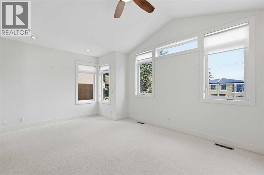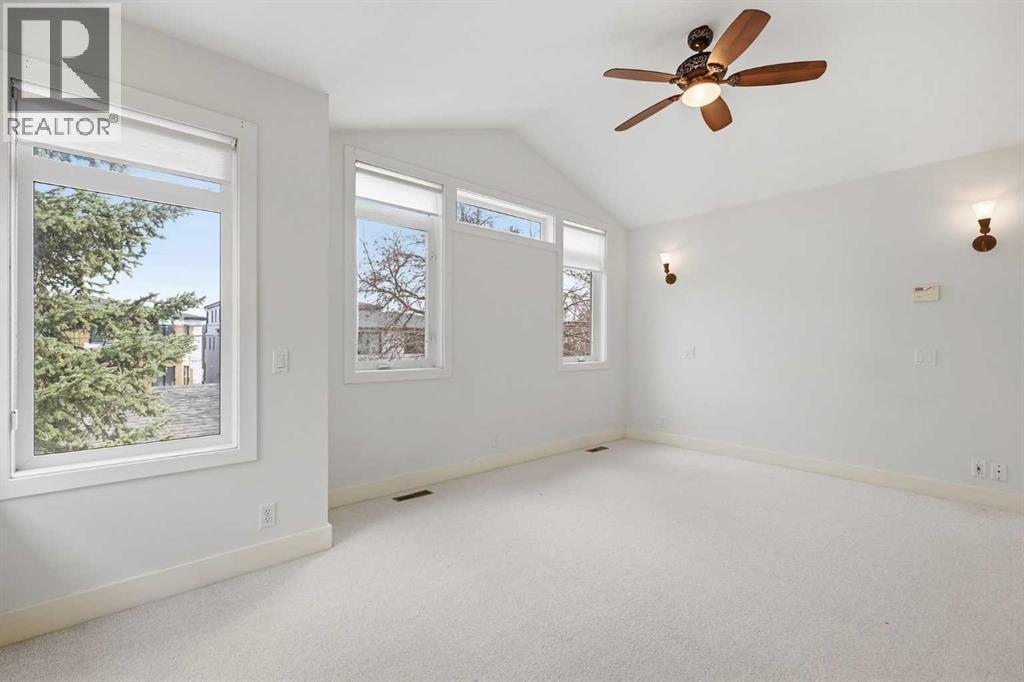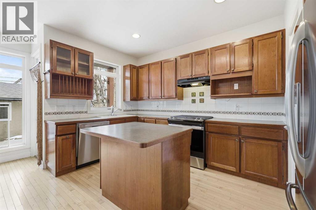 Located in the heart of Richmond, this 2+1 bedroom home offers over 2,500 sq ft of comfortable inner-city living. The main level features hardwood floors and lofty ceilings, beginning with a welcoming living room where garden doors open to the front porch. This space shares a double-sided fireplace with a dramatic flex area—complete with soaring ceiling and wet bar—ideal as a formal dining room or an additional family room. The kitchen is warm and inviting, appointed with a cozy island/eating bar, ample cabinetry including a pantry, stainless steel appliances, and a casual dining area. A 2-piece powder room completes the main floor. Upstairs, a bright loft area provides an excellent home office or reading nook. A catwalk separates two spacious bedrooms and a 4-piece bath. The primary suite includes a walk-in closet and a private 4-piece ensuite with a relaxing jetted tub and separate shower. The basement is partially developed with a bedroom and awaits your future plans for additional living space. Outside, enjoy a private backyard with a deck and patio, along with access to the oversized double detached garage. This prime inner-city location is close to schools, shopping, public transit, and offers effortless access to 26th Avenue and Crowchild Trail—making daily commuting and weekend outings equally convenient. (id:63190)