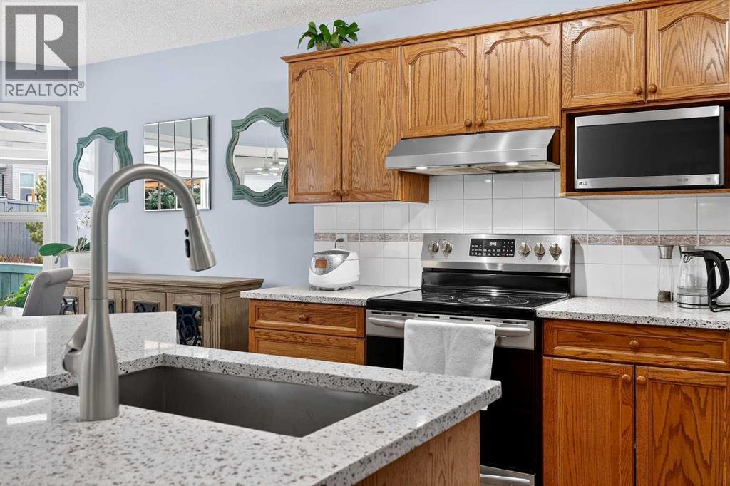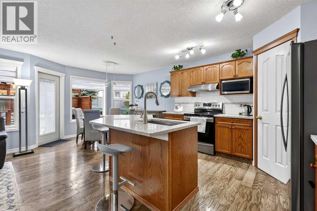 Welcome to the heart of Bridlewood—where community, comfort, and connection come together. Nestled in a neighbourhood where families plant roots and grow for years to come, this beautifully maintained and thoughtfully updated 2-storey home offers the perfect blend of warmth, function, and everyday living. Ideally located within walking distance to schools, parks, and scenic pathways, this is a home designed for both convenience and lasting memories. Step inside to a bright and inviting main floor, where a well-designed open concept layout brings the whole family together. Rich engineered hardwood flooring flows seamlessly throughout, complemented by fresh interior paint and timeless finishes. The kitchen has been tastefully refreshed with stunning quartz countertops, a flush eating bar, undermount sink, updated faucet, and sleek stainless steel appliances. Warm oak cabinetry adds character and depth, while a corner pantry ensures practical storage. The dining area is anchored by a charming bay window that fills the space with natural light and overlooks the beautifully designed backyard. It transitions effortlessly into the spacious living room, where a large feature window frames views of your outdoor retreat. A convenient 2-piece bath and a separate laundry room tucked off the mudroom complete the main level. Upstairs, a generous bonus room awaits—featuring an impressive ~11-foot vaulted ceiling, a second bay window, and a cozy gas fireplace with wood mantle and tile surround. This is the ultimate setting for movie nights, game days, or simply unwinding at the end of the day. The upper level also hosts three well-sized bedrooms, including a spacious primary retreat designed to accommodate a king-sized bed, complete with a walk-in closet and a private 4-piece ensuite featuring a deep soaker tub and separate shower. An additional full bathroom serves the secondary bedrooms. The partially finished basement expands your living space even further, offering a fourth bed room and a large family/recreation area—ideal for a growing teen, guests, or extended family stays. Step outside and discover a backyard built for enjoyment. A large deck, stunning pergola, and thoughtfully designed two-tiered yard create the perfect setting for entertaining, relaxing, and gardening. This outdoor space truly elevates the home and invites you to enjoy Calgary’s seasons to the fullest. Living in Bridlewood means being surrounded by amenities—shopping, restaurants, theatres, and quick access to Stoney Trail and Macleod Trail. You’re also just minutes from the YMCA, public library, and the world-renowned Spruce Meadows, offering year-round events, concerts, and the magical Christmas Market. This is more than a home—it’s a place to grow, gather, and create lasting family memories. (id:63190)